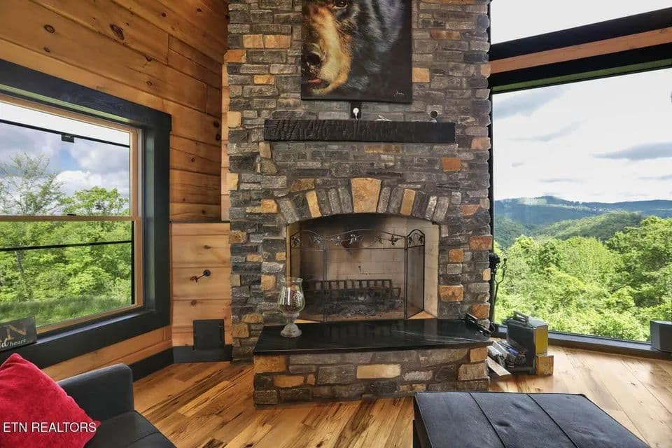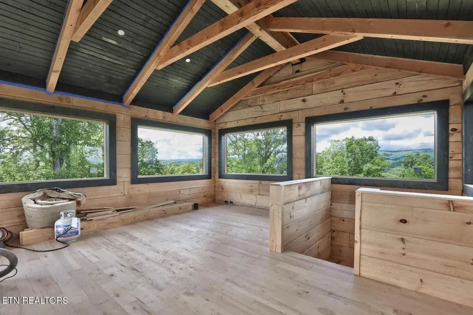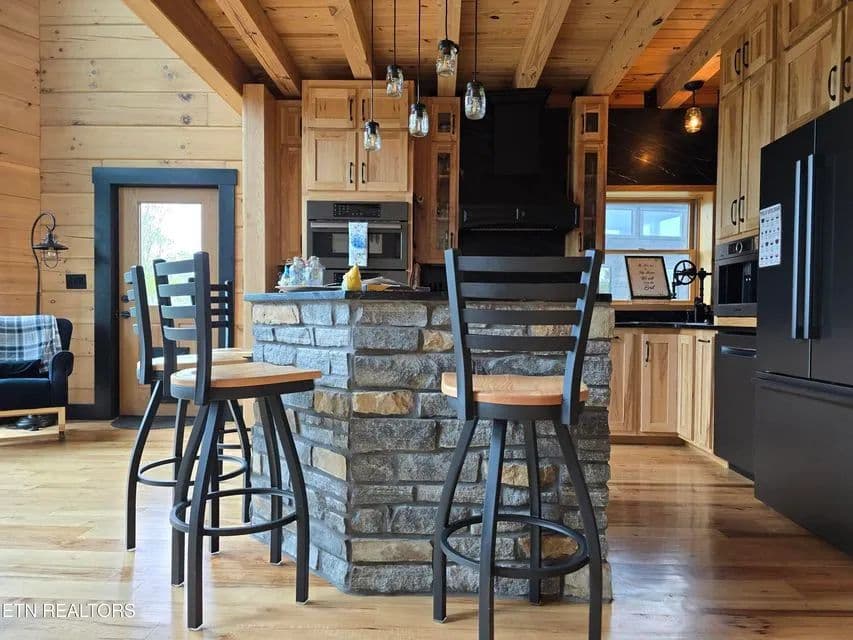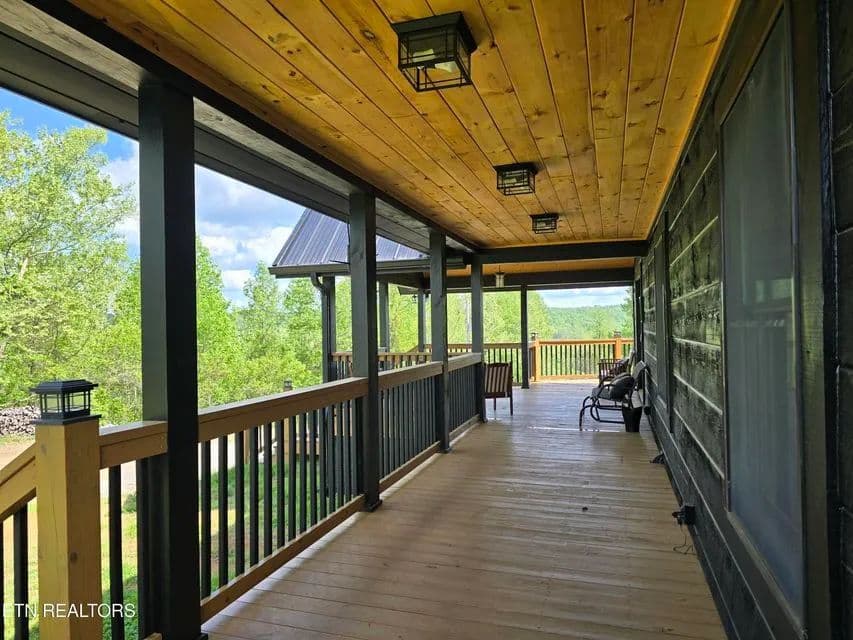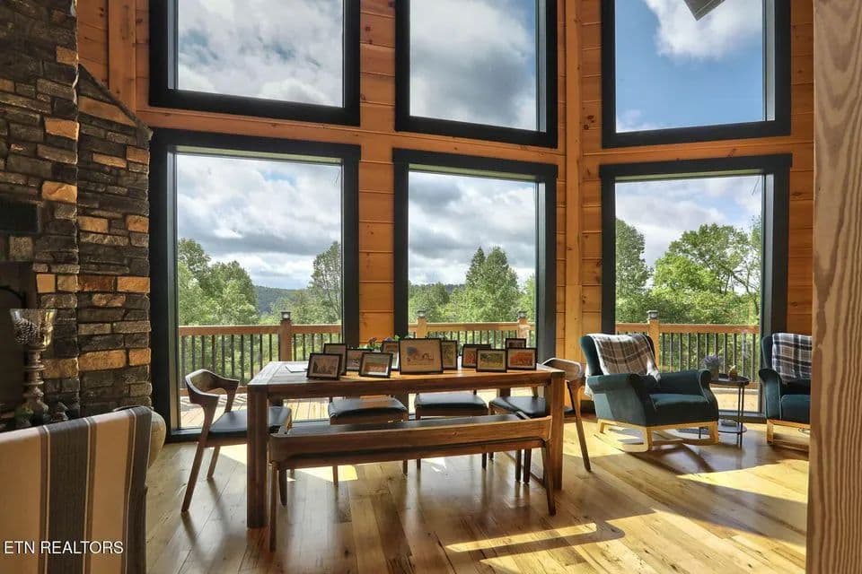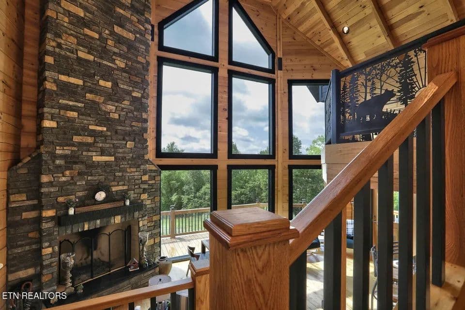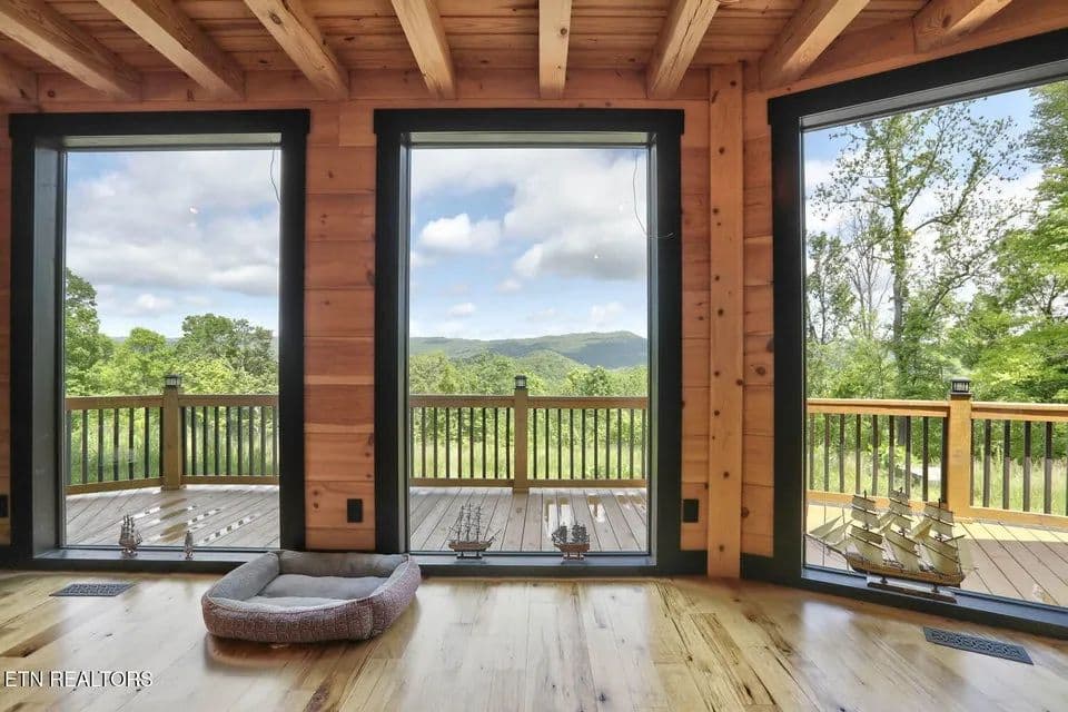 If you love the mountains of Northeast Tennessee, which is known for being among the most beautiful places in the country, and, if you're looking to find the very best in exquisite home design and finish qualities on ample private land, you'll want to see this property. The home sits on top and in the middle of 153.9 beautiful acres. With this property you have it all... pastures and hills, the creek and the pond, its woods, the river, and room to ride and hunt. Freedom is yours to use your land as you see fit. THE CABIN is one-of-a kind, and gorgeous! It is still like new. You will be amazed at the superior level of attention given to each and every choice and decision. The care that was taken to assure the best in quality workmanship is strikingly evident. This unique cabin is two levels, with tremendous ceiling heights and windows that are triple volume in the living room & back. The living area features a fabulous, true rock fireplace that rises up through the entire tri-level ceiling. The first floor is all about the living area, the owner's suite, and its amazing kitchen, which has all the best of Bosch equipment with custom cabinetry that has all of the extra features one could desire. An elegant half bath is nearby, and beyond, a full laundry and folding room. Further down the hall is the owner's suite, which occupies nearly half of the main floor. It is in the back. It features a large closet & an exceptional tub & shower room behind glass doors that fully seal. It has extensive features & fixtures & beautiful tile effects inside. Gorgeous artistic sinks are set in soapstone counters. Most impressive is the bedroom with its very large windows that look out to the mountains to the north. It is set privately to the back. It is larger than the living area & features a matching fireplace. It is all quite amazing really. Doors open out from there to a deck that wraps the entire home to the entry porch in the front. Stairs rise up from near the entry inside, to the second story that is lofted to look over into the living area and to the view the mountains to the south. The 2nd floor is fully open, except for the bathroom, with clear views from front to back, double volume ceilings & perfect overhead lighting. This room could be divided into separated rooms. The sellers preferred an open area for family to share. Special couches, chairs, and loungers are provided which convert to bedding. Actually 95% of all the existing furniture, including these items, are included in the sale. The bathroom shower in the loft area is special. It represents the mountains & the waterfall. Circular stairs lead to a mini loft that's above it all. The walls throughout the home are beautiful. The logs are solid square pine. The floors are hickory plank. A huge additional bonus feature is ''The TOWER'' which is a separate 3-story building adding another 935+SqFt. Stairs lead up to a room on each level to the top. It is plumbed in for a kitchen use and a bathroom. It is it is also roughly wired for electricity. A proposal is on file for a complete HVAC system. Most of the drywall is in. Otherwise, the interior remains for a buyer to finish in accordance with their intended use. The 3-CAR GARAGE on concrete slab sits at the end of the driveway. RIVER frontage: The property owns all the way down to the river on the other side of the road where there is a strip of river land to be enjoyed. It is over ½ mi long, & 53'-26' wide with some variance. It ends near the public boat launch. NOTE: The pictures tell the many thousands of words I would need to say to express all that is here. But, I am providing a full written description in 2 documents attached in the listing, which will also provide additional details about the land. Videos and a drone presentation will also provided. Ask your signed agent to provide these to you. Or, if you do not have an agent, then please contact our office and we will be happy to assist you in every way.
