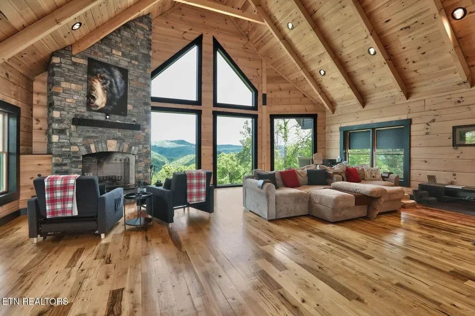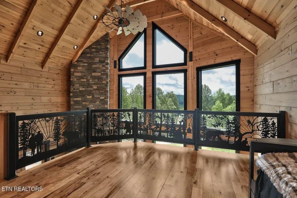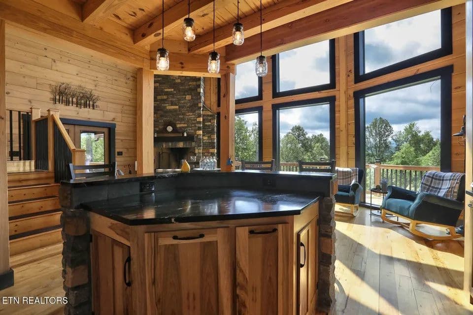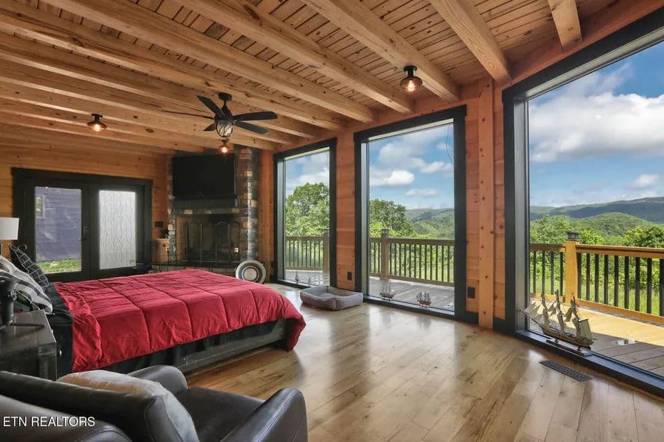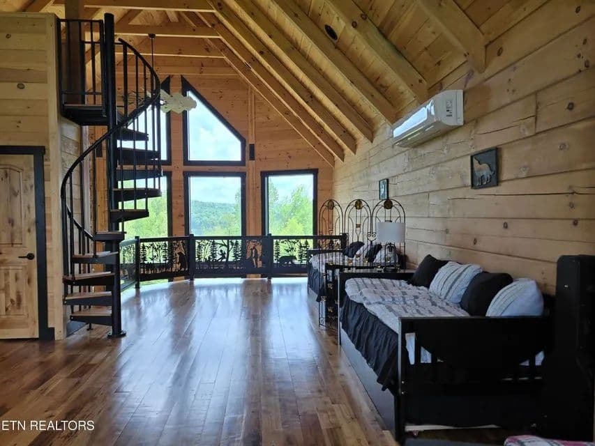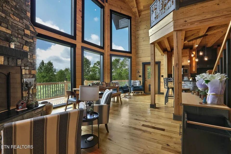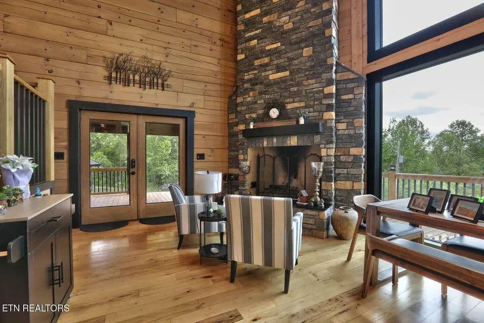 If you love the mountains of Northeast Tennessee, which is known for being among the most beautiful places in the country, and, if you're looking to find the very best in exquisite home design and finish qualities on ample private land, you'll want to see this property. The home sits on top and in the middle of 153.9 beautiful acres. With this property you have it all... pastures and hills, the creek and the pond, its woods, the river, and room to ride and hunt. Freedom is yours to use your land as you see fit. THE CABIN is one-of-a kind, and gorgeous! It is still like new. You will be amazed at the superior level of attention given to each and every choice and decision. The care that was taken to assure the best in quality workmanship is strikingly evident. This unique cabin is two levels, with tremendous ceiling heights and windows that are triple volume in the living room & back. The living area features a fabulous, true rock fireplace that rises up through the entire tri-level ceiling. The first floor is all about the living area, the owner's suite, and its amazing kitchen, which has all the best of Bosch equipment with custom cabinetry that has all of the extra features one could desire. An elegant half bath is nearby, and beyond, a full laundry and folding room. Further down the hall is the owner's suite, which occupies nearly half of the main floor. It is in the back. It features a large closet & an exceptional tub & shower room behind glass doors that fully seal. It has extensive features & fixtures & beautiful tile effects inside. Gorgeous artistic sinks are set in soapstone counters. Most impressive is the bedroom with its very large windows that look out to the mountains to the north. It is set privately to the back. It is larger than the living area & features a matching fireplace. It is all quite amazing really. Doors open out from there to a deck that wraps the entire home to the entry porch in the front. Stairs rise up from near the entry inside, to the second story that is lofted to look over into the living area and to the view the mountains to the south. The 2nd floor is fully open, except for the bathroom, with clear views from front to back, double volume ceilings & perfect overhead lighting. This room could be divided into separated rooms. The sellers preferred an open area for family to share. Special couches, chairs, and loungers are provided which convert to bedding. Actually 95% of all the existing furniture, including these items, are included in the sale. The bathroom shower in the loft area is special. It represents the mountains & the waterfall. Circular stairs lead to a mini loft that's above it all. The walls throughout the home are beautiful. The logs are solid square pine. The floors are hickory plank. A huge additional bonus feature is ''The TOWER'' which is a separate 3-story building adding another 935+SqFt. Stairs lead up to a room on each level to the top. It is plumbed in for a kitchen use and a bathroom. It is it is also roughly wired for electricity. A proposal is on file for a complete HVAC system. Most of the drywall is in. Otherwise, the interior remains for a buyer to finish in accordance with their intended use. The 3-CAR GARAGE on concrete slab sits at the end of the driveway. RIVER frontage: The property owns all the way down to the river on the other side of the road where there is a strip of river land to be enjoyed. It is over ½ mi long, & 53'-26' wide with some variance. It ends near the public boat launch. NOTE: The pictures tell the many thousands of words I would need to say to express all that is here. But, I am providing a full written description in 2 documents attached in the listing, which will also provide additional details about the land. Videos and a drone presentation will also provided. Ask your signed agent to provide these to you. Or, if you do not have an agent, then please contact our office and we will be happy to assist you in every way.