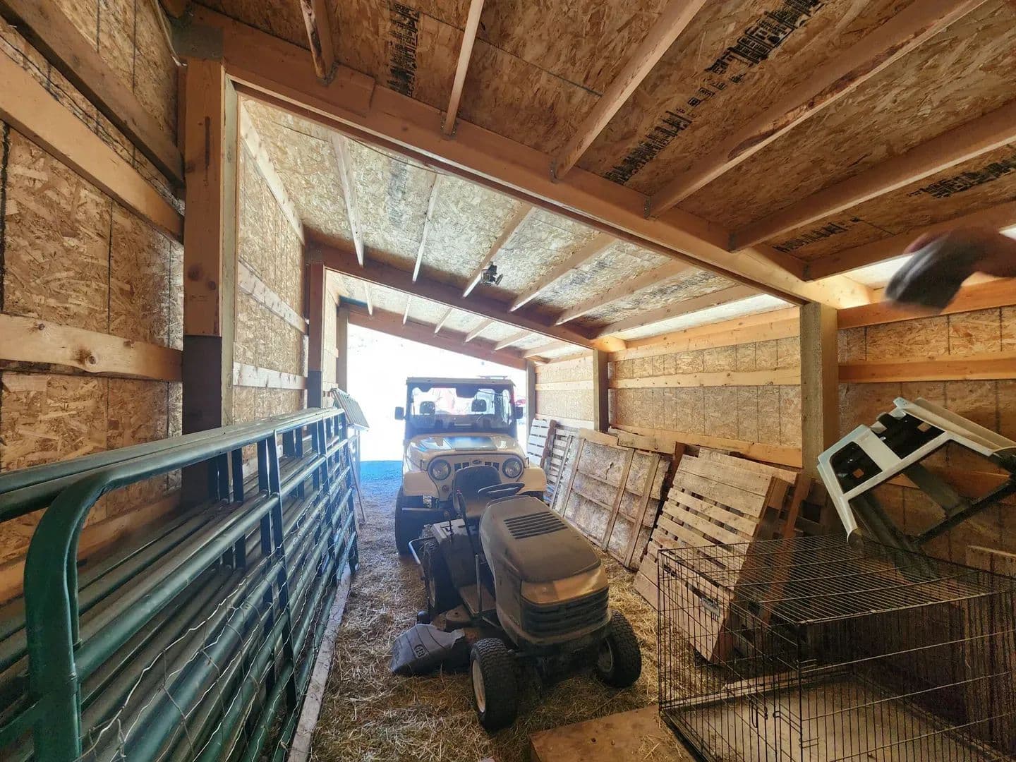 Above the two-bay pole barn is a studio-style living unit with its own bathroom—perfect for guests, rental income, or a caretaker. Additional amenities include an insulated workshop and several outbuildings for storage or hobby use.