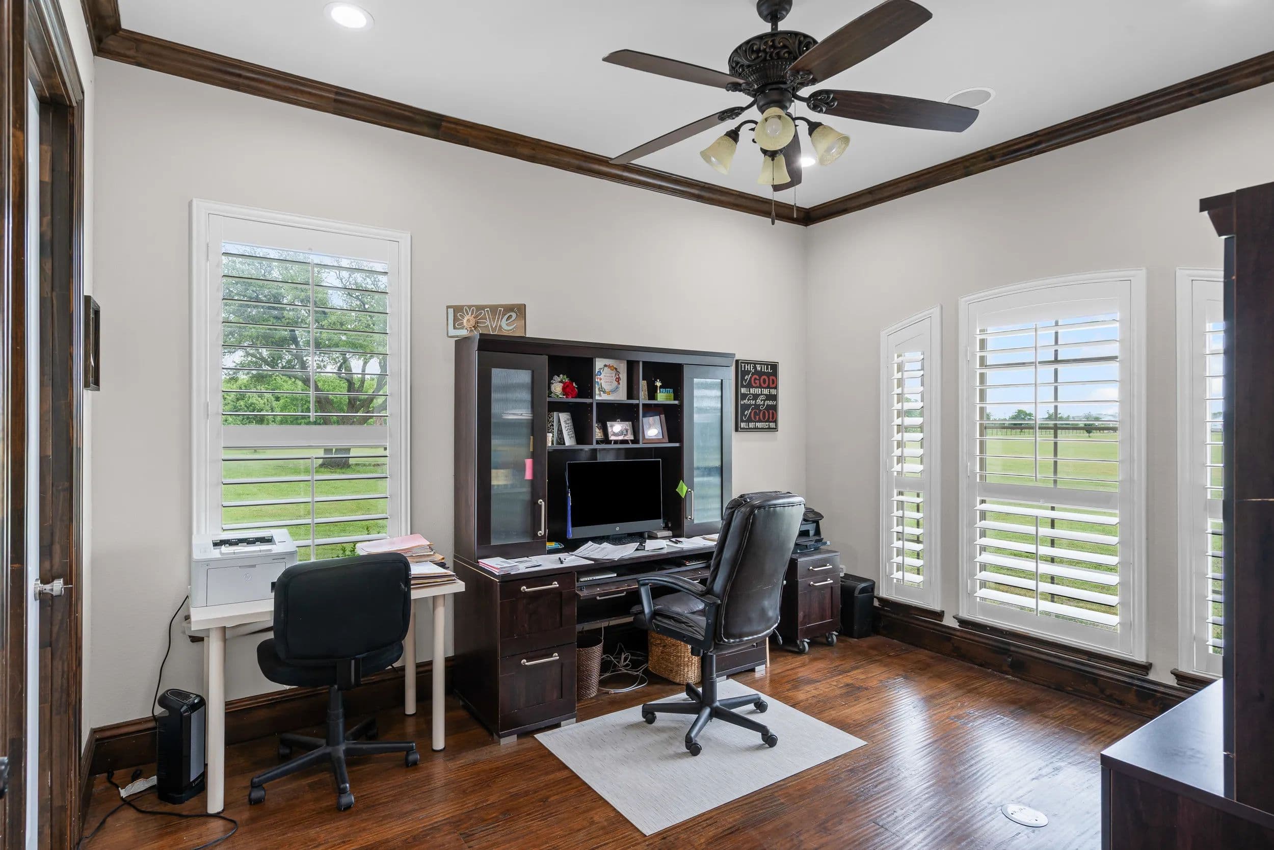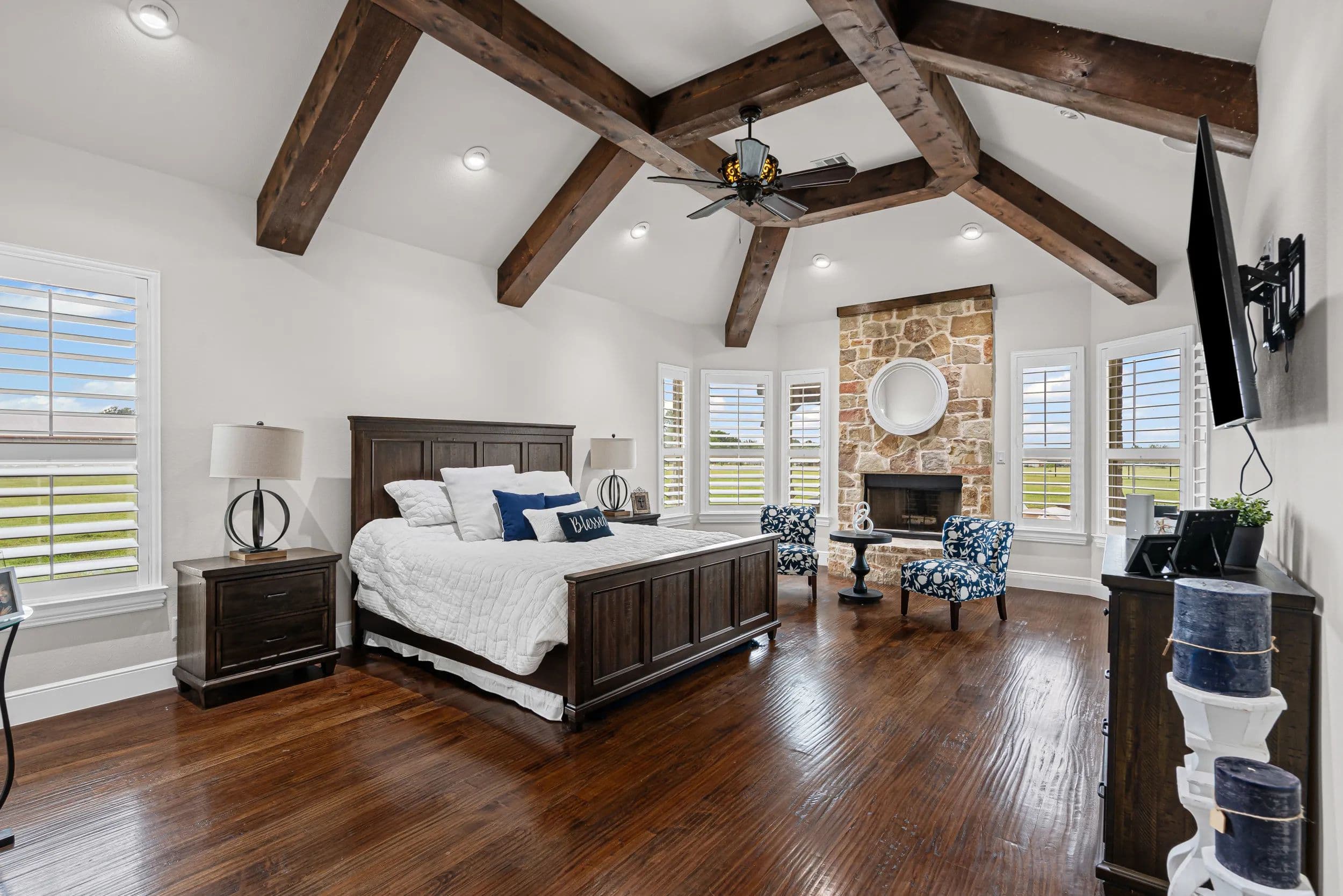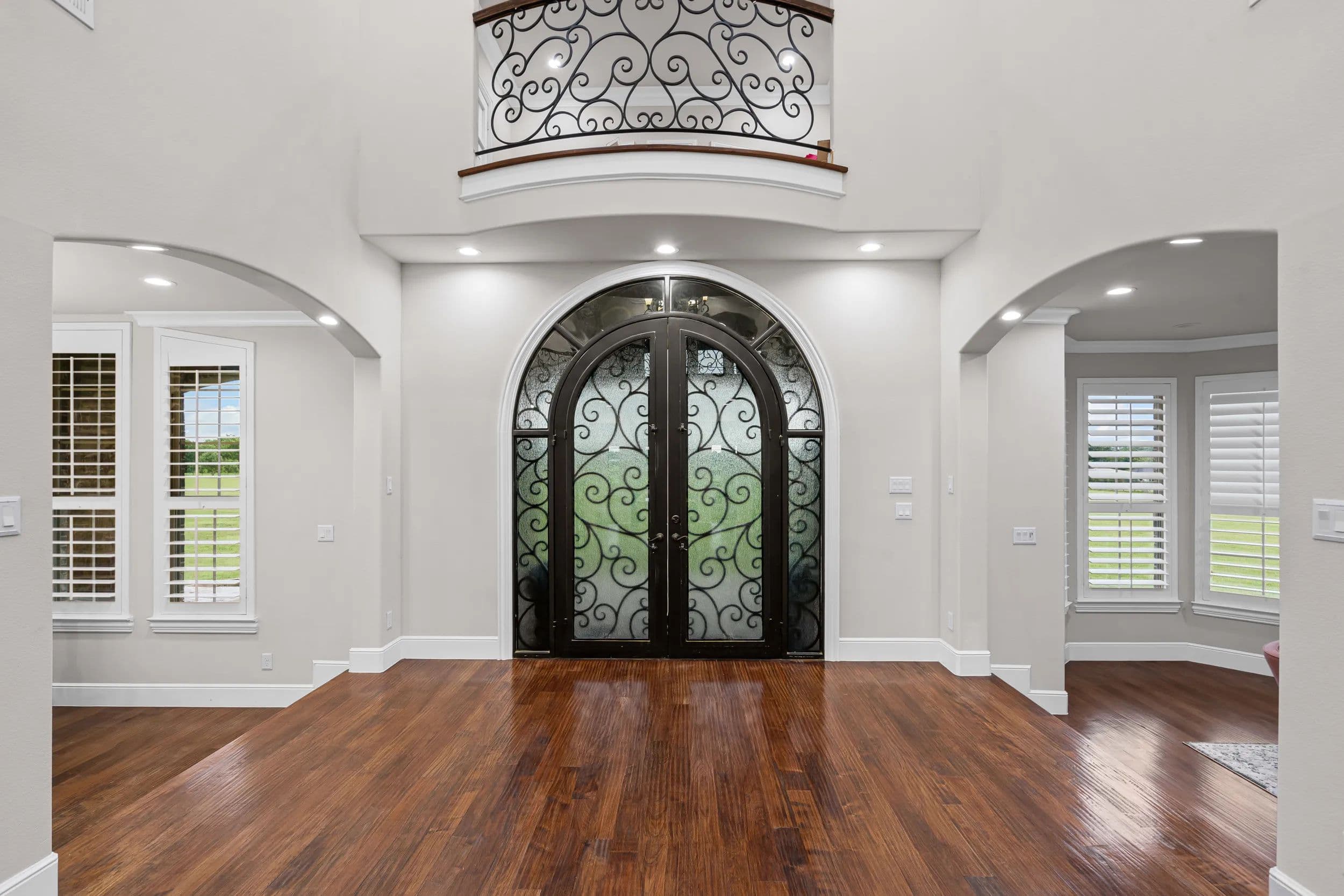 Discover a breathtaking 8,328 sqft custom-built estate, meticulously designed and crafted with exceptional attention to detail in 2018, nestled on 24.92 acres of serene land in Crowley, TX, just outside city limits and only 30 minutes from the vibrant pulse of Downtown Fort Worth. This luxurious home offers a tranquil escape in an exceptionally peaceful and quiet area, where the gentle rustle of leaves and the soft sounds of nature replace the clamor of urban life, creating an idyllic retreat for relaxation and rejuvenation. Every element of this home, from its elegant hardwood floors and iron front doors to the exposed wooden beams adorning the living room, reflects thoughtful craftsmanship and a commitment to timeless quality, fostering a warm and inviting ambiance. The professional-grade kitchen, outfitted with top-of-the-line appliances and a premium stove, is a chef’s dream, designed with precision to inspire culinary creations for gatherings of any size. The expansive property is cross-fenced with lush coastal Bermuda pasture, ideal for livestock or agricultural pursuits, enhancing its ag-exempt status for potential tax benefits. Outside, a heated pool invites year-round enjoyment, while a second-floor balcony showcases stunning, uninterrupted views of the sprawling, tranquil landscape that envelops the estate. A three-car garage and a separate fully equipped 40 x 30 workshop with electricity provide ample space for vehicles, hobbies, or projects, adding to the estate’s versatility. Designed with both sophistication and functionality in mind, this extraordinary estate seamlessly blends rural charm with modern elegance, offering a serene sanctuary where meticulous detail, luxurious living, and pastoral beauty converge, perfect for those who love to host and embrace country living.
