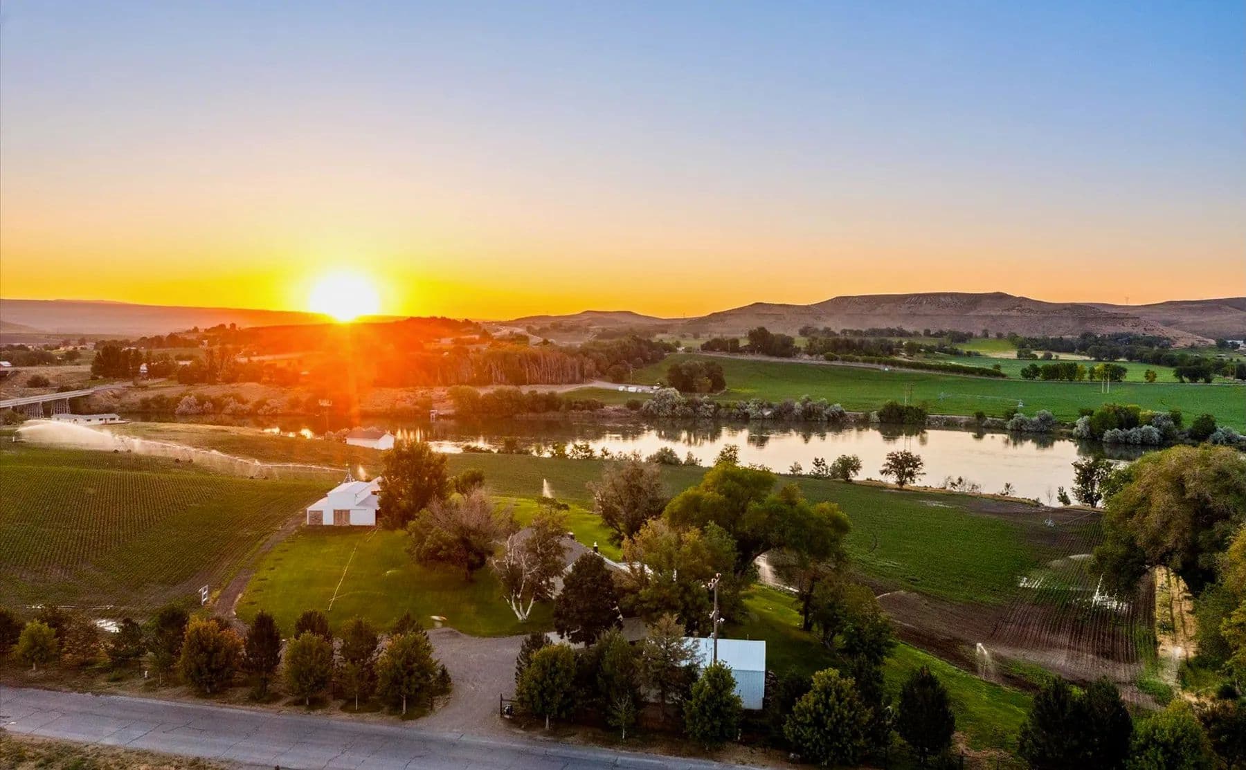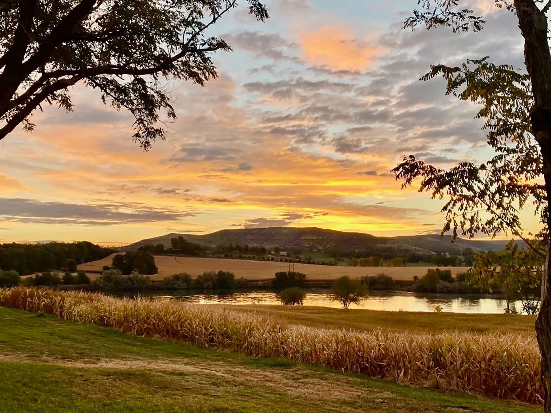 ~ Elevated setting offering views of the river, surrounding farms, and distant foothills