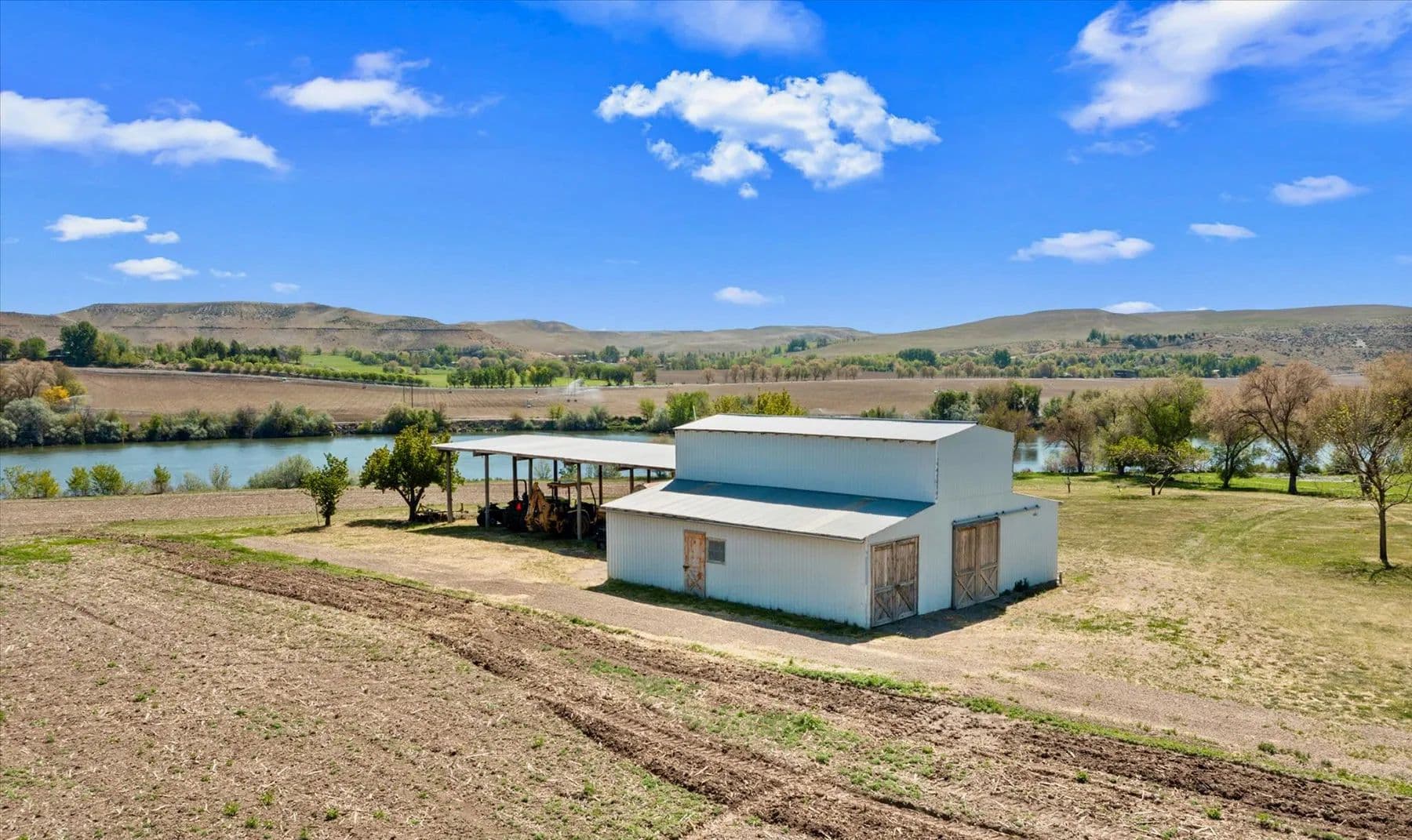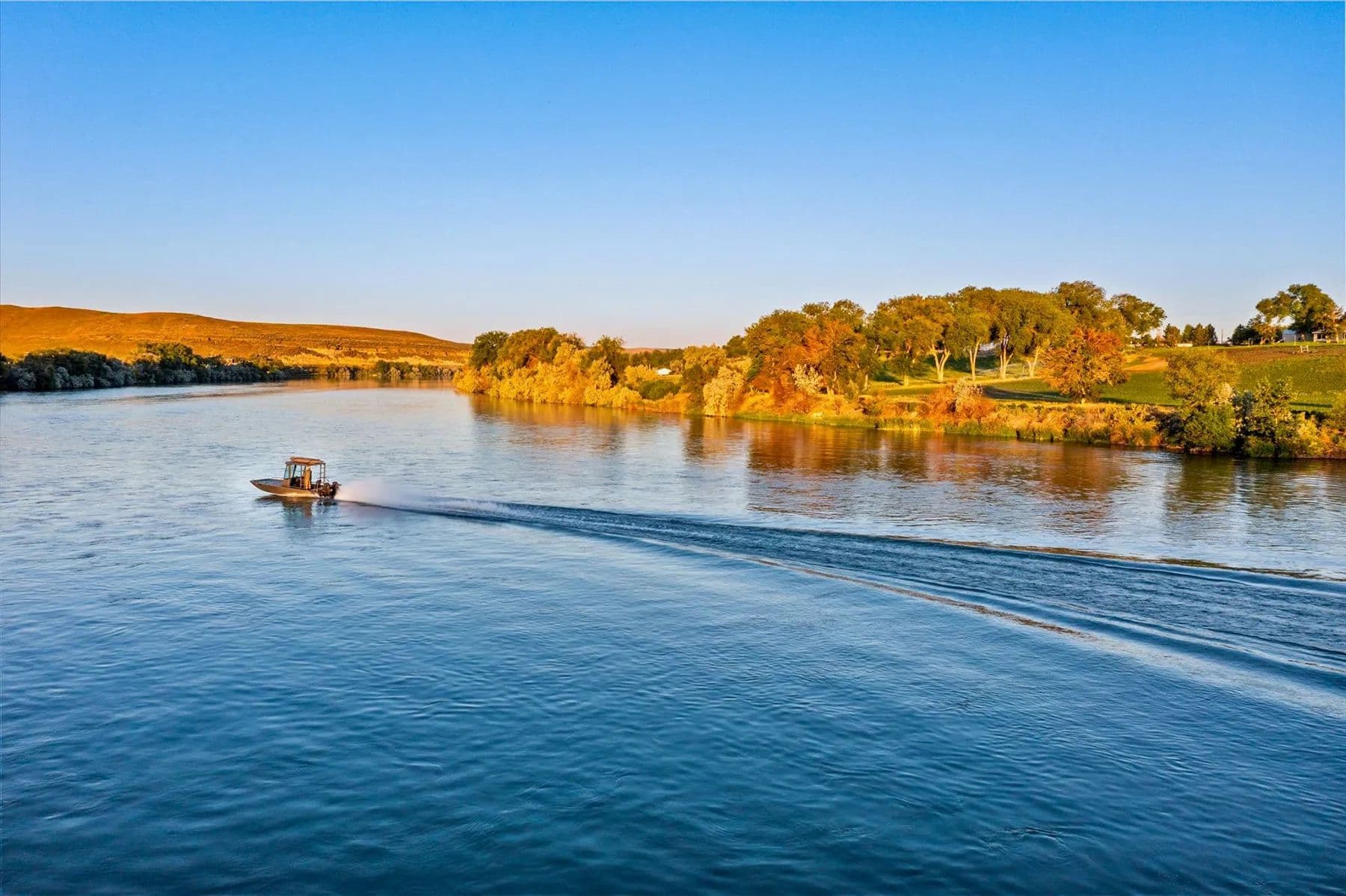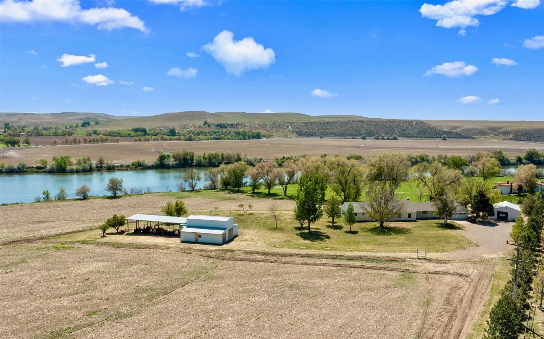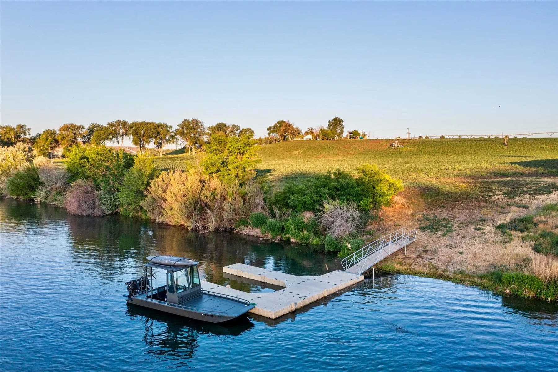Developed by an avid waterfowl hunter and outdoorsman, this turn-key property offers a rare opportunity to immediately enjoy all aspects of a riverfront retreat. Situated on 26+/- rolling acres just outside of the historic agricultural community of Glenns Ferry, the property features an impressive 1,700+/- feet of Snake River frontage and it includes all the equipment and accoutrements necessary to take advantage of miles of river for watersports, world-class waterfowl hunting, wildlife viewing, and fishing for bass, trout, and sturgeon. Well-suited as either a seasonal recreational retreat, full-time riverfront estate, or small-scale farming and equestrian operation, the property is highlighted by a complete set of residential and ranch improvements, including two tastefully renovated, fully furnished homes that overlook the river and boast high-quality finishes and top-end appliances. Additional structures include a drive-through boat and RV storage building with double overhead doors, several multi-purpose buildings, a three-stall barn, and two equipment/hay storage sheds. A state-permitted boat launch, complete with a floating dock, provides convenient access to the river for all types of water-related activities. Approximately 18 acres of the property are planted to corn and irrigated by a center pivot and multiple automatic big gun sprinklers. Under the owner's management, flights of ducks and geese, along with a resident herd of mule deer, are regular visitors to the property's well-tended fields. Rounding out the offering is an extensive list of personal property that makes Snake River Retreat a fully equipped homestead ready for the next owner's immediate enjoyment. Personal property items include home furnishings, vehicles, farm and ranch equipment, custom-made duck boats, UTVs, assorted trailers, and hunting and fishing gear. The property is conveniently located an hour from Boise and Twin Falls via Interstate 84 and an hour and a half from the all-season resort community of Sun Valley.