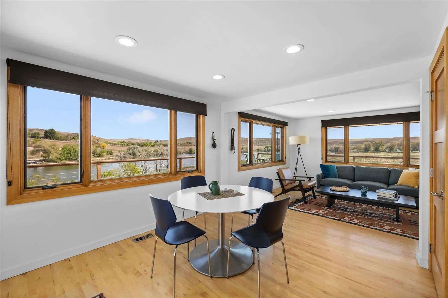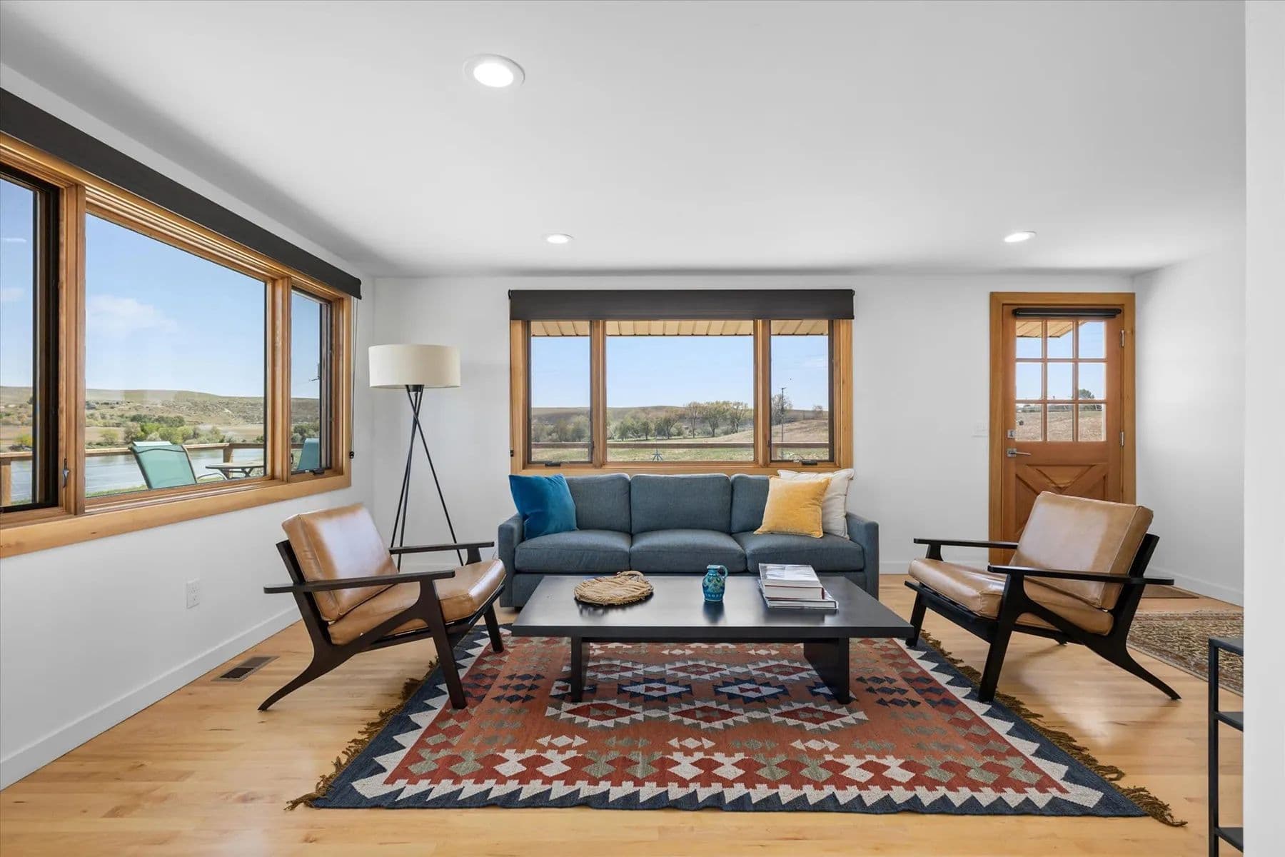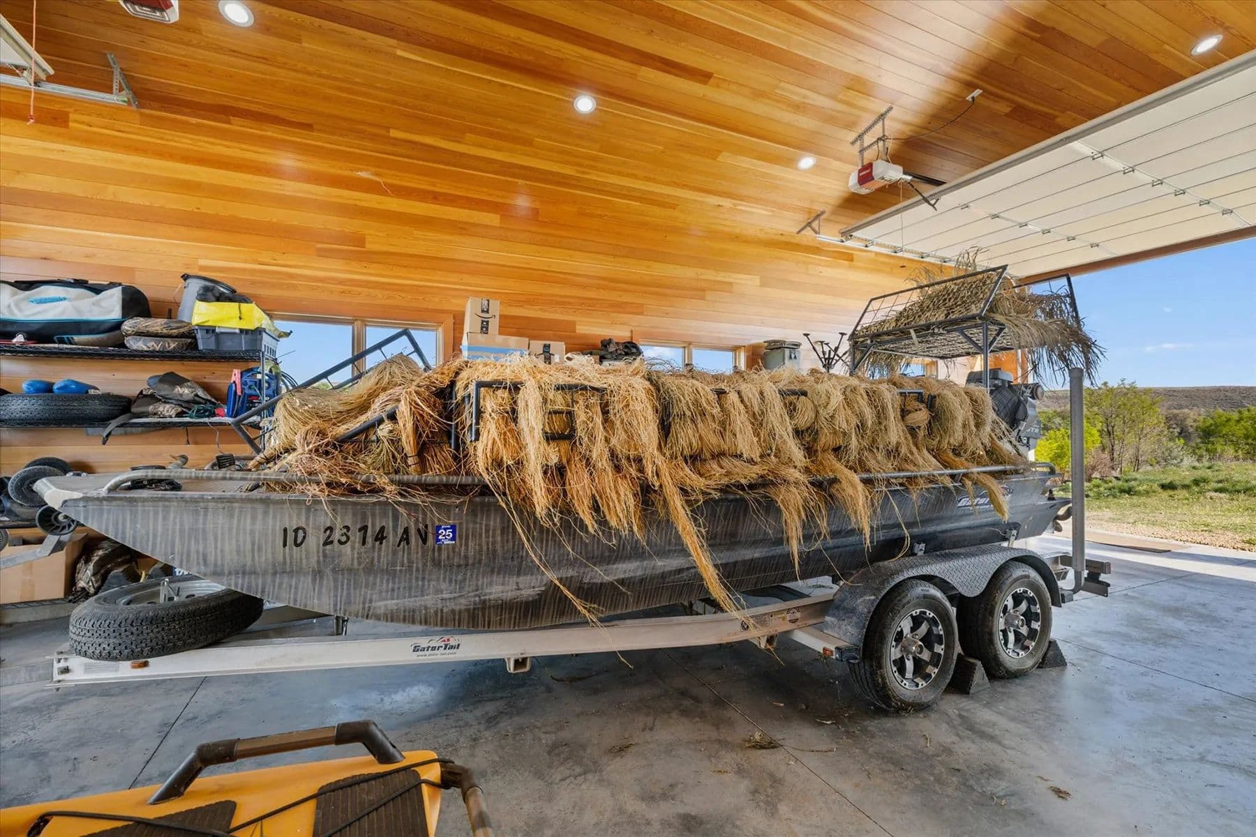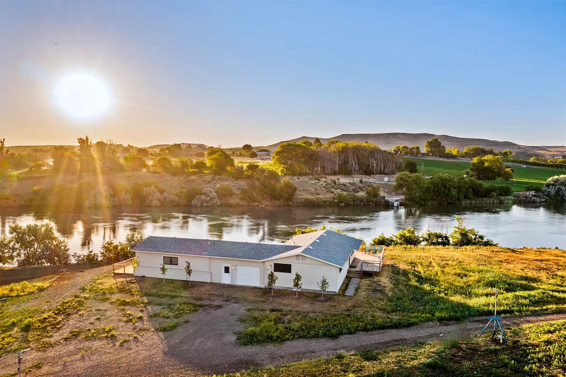 Developed by an avid waterfowl hunter and outdoorsman, this turn-key property offers a rare opportunity to immediately enjoy all aspects of a riverfront retreat. Situated on 26+/- rolling acres just outside of the historic agricultural community of Glenns Ferry, the property features an impressive 1,700+/- feet of Snake River frontage and it includes all the equipment and accoutrements necessary to take advantage of miles of river for watersports, world-class waterfowl hunting, wildlife viewing, and fishing for bass, trout, and sturgeon. Well-suited as either a seasonal recreational retreat, full-time riverfront estate, or small-scale farming and equestrian operation, the property is highlighted by a complete set of residential and ranch improvements, including two tastefully renovated, fully furnished homes that overlook the river and boast high-quality finishes and top-end appliances. Additional structures include a drive-through boat and RV storage building with double overhead doors, several multi-purpose buildings, a three-stall barn, and two equipment/hay storage sheds. A state-permitted boat launch, complete with a floating dock, provides convenient access to the river for all types of water-related activities. Approximately 18 acres of the property are planted to corn and irrigated by a center pivot and multiple automatic big gun sprinklers. Under the owner's management, flights of ducks and geese, along with a resident herd of mule deer, are regular visitors to the property's well-tended fields. Rounding out the offering is an extensive list of personal property that makes Snake River Retreat a fully equipped homestead ready for the next owner's immediate enjoyment. Personal property items include home furnishings, vehicles, farm and ranch equipment, custom-made duck boats, UTVs, assorted trailers, and hunting and fishing gear. The property is conveniently located an hour from Boise and Twin Falls via Interstate 84 and an hour and a half from the all-season resort community of Sun Valley.