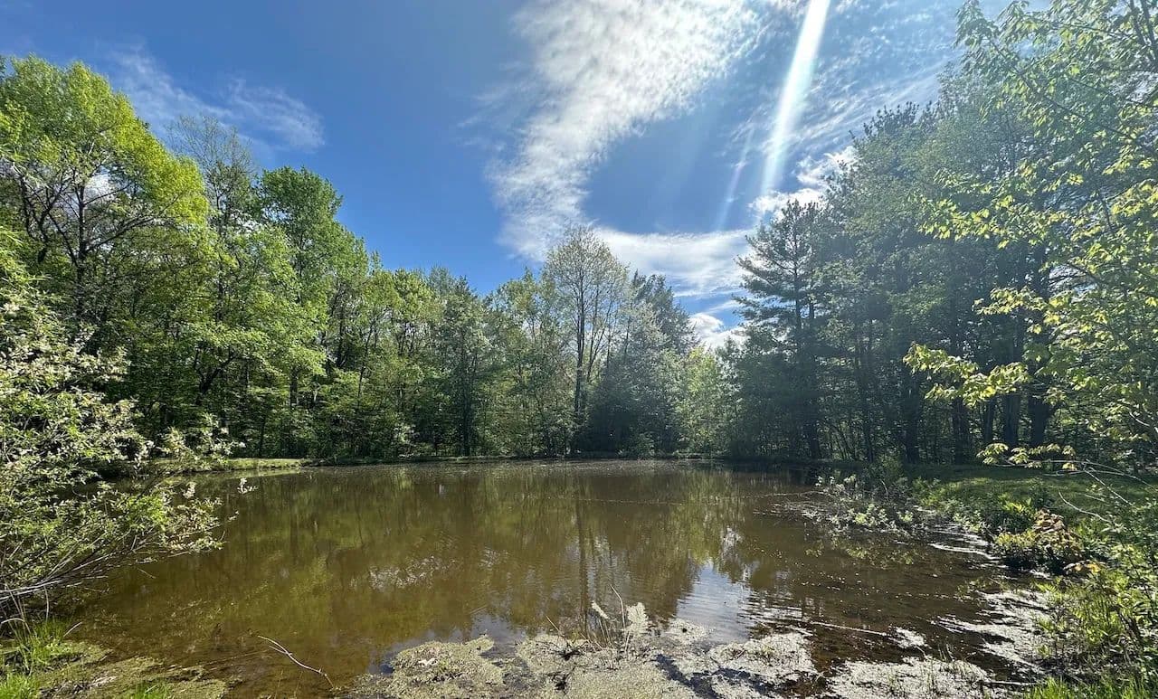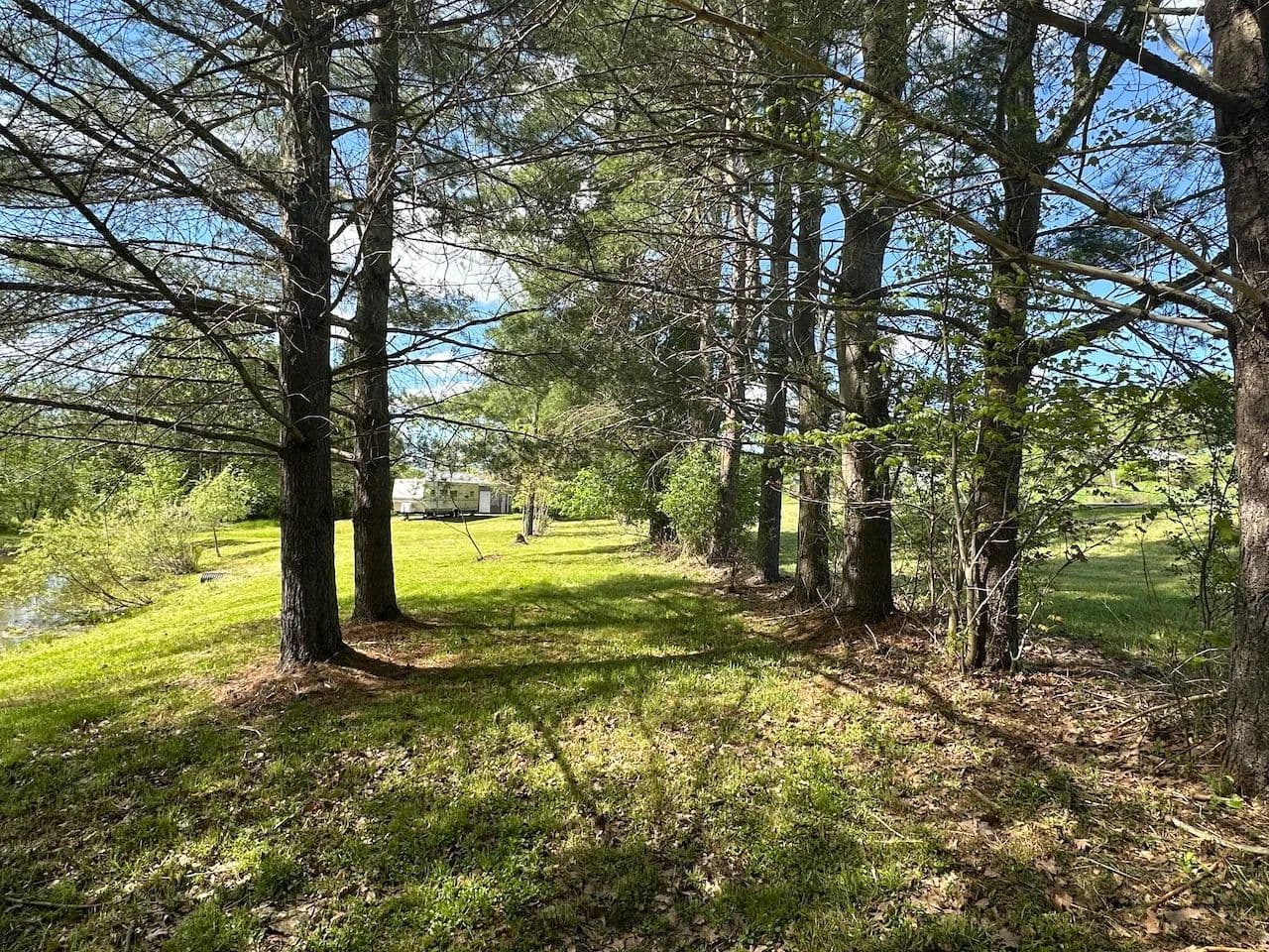 This 15-acre property features a mix of open land, shrubs, hardwoods, and pine trees making it well-suited for hunting and outdoor activities. Black Creek runs through part of the land, and a stocked, spring-fed pond provides a private fishing spot. Separate wetland areas offer good habitat for waterfowl. The property includes a 38-foot travel trailer and a newly built structure with a one-car garage and a separate area that could be finished into a hunting cabin. The building is equipped with a 200-amp electric service and has a pellet stove. A cased well is also on site. With 880 feet of road frontage and fiber optic internet available at the road, the property is accessible and ready for a variety of uses.