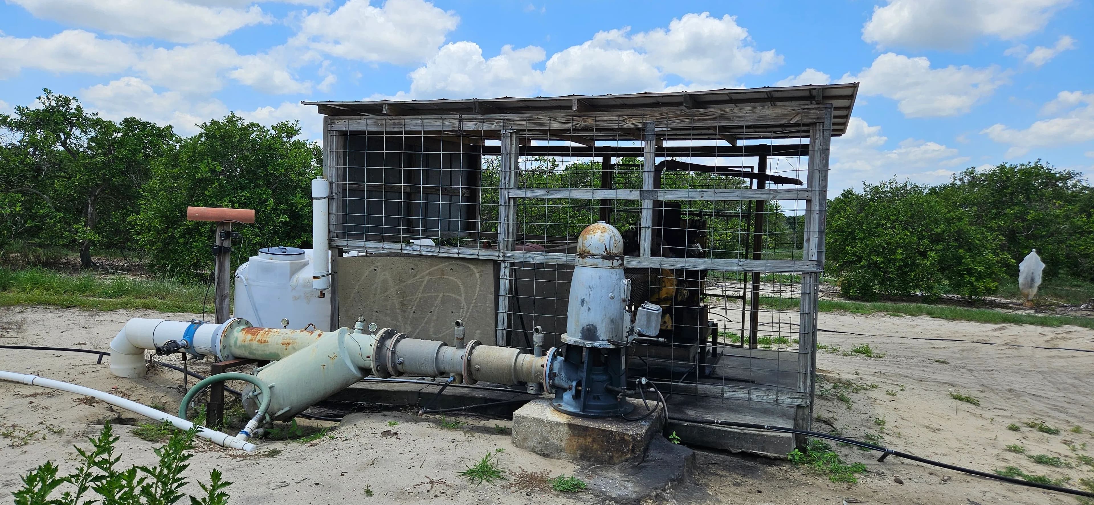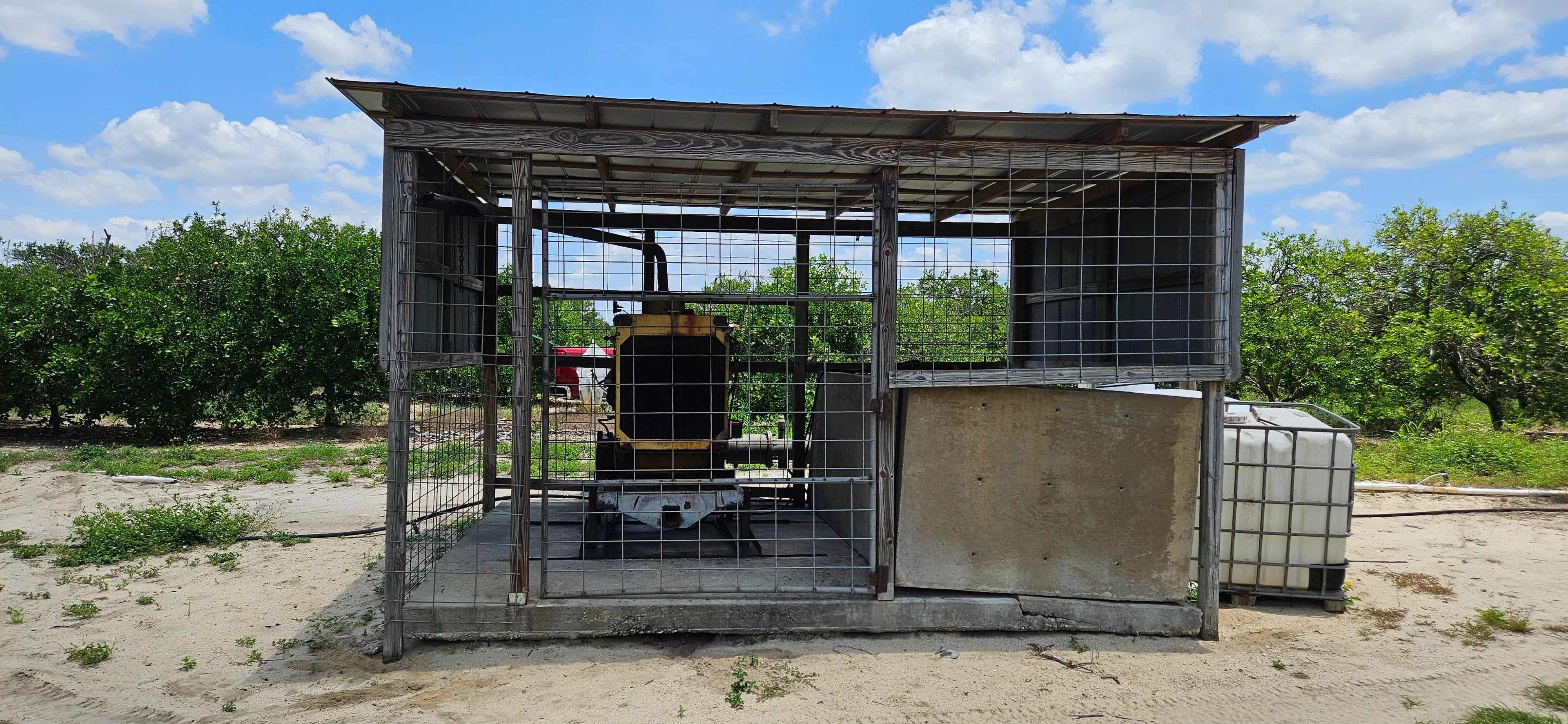 This 45-acre property features a productive citrus grove, with 40 net tree acres currently planted in Valencia oranges. Newly planted resets are protected with netting to support healthy growth. The grove is irrigated by a 10-inch well powered by a 3208 Caterpillar diesel engine and uses green jet irrigation for efficient water distribution. The entire grove irrigates at one time. While the property is well-suited for continued citrus production, it also offers flexibility for a range of agricultural uses, including growing citrus under screen, vegetables, strawberries, bamboo, and more. Property is accessed via a 25 foot deeded easement.