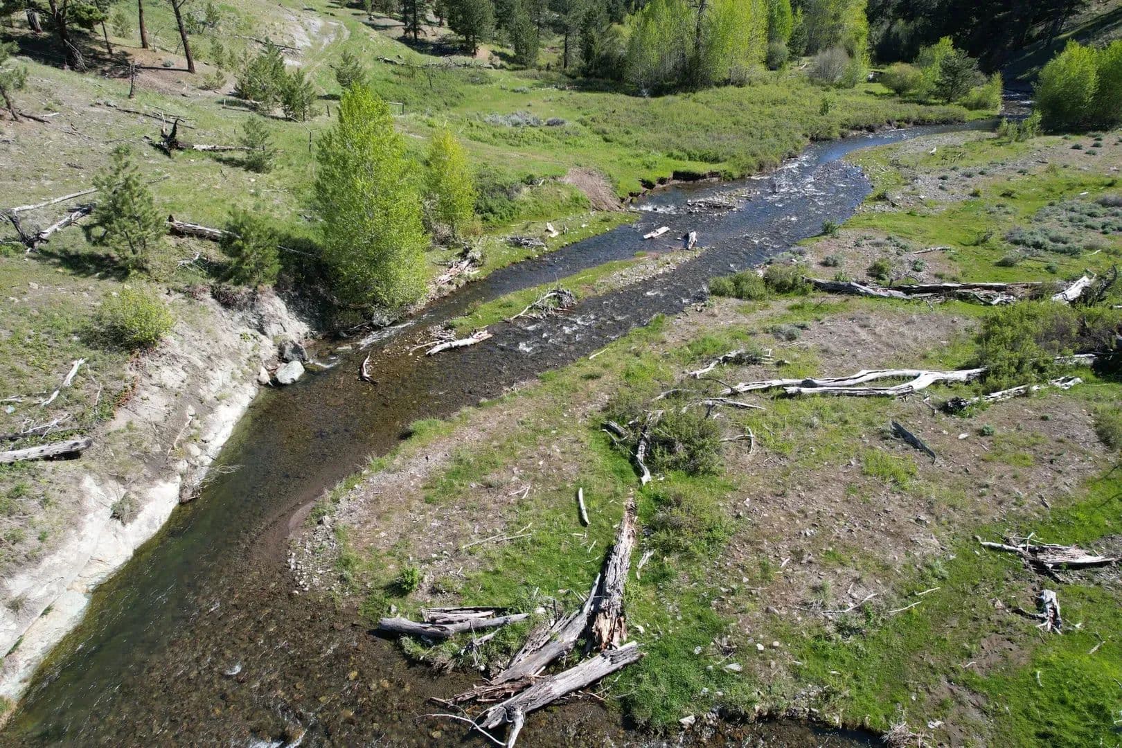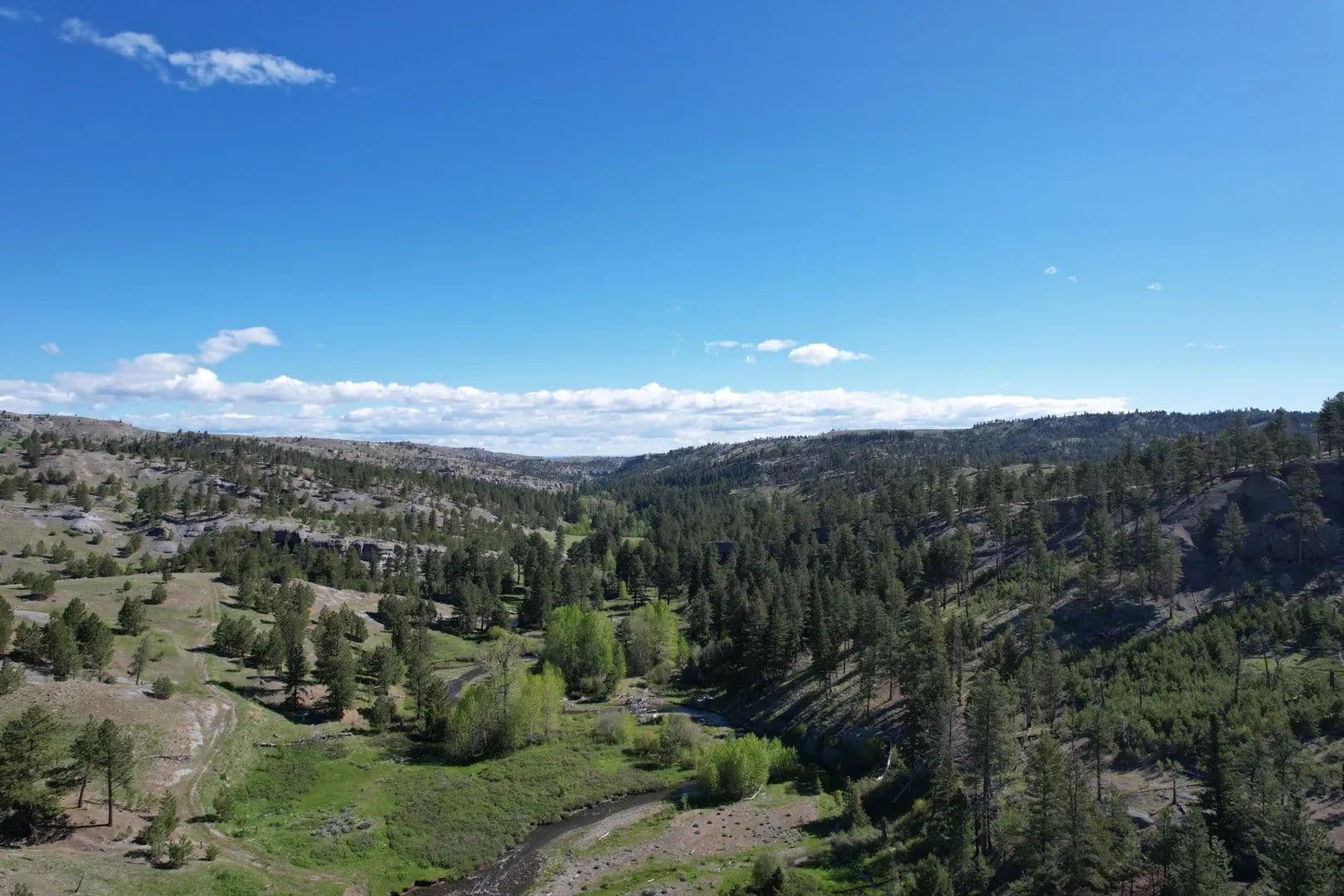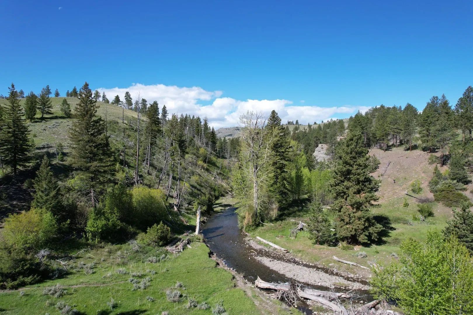 Situated among rolling foothills north of the Absaroka Beartooth Wilderness, The Upper Deer Creek Ranch offers diverse vegetation, topography, geology, water resources, and recreational possibilities in an increasingly rare solitude on this 1970 ± deeded acres. Land The Upper Deer Creek Ranch rich foliage and wildlife habitat supports healthy and growing wildlife populations of elk, mule deer, whitetail deer, mountain lion, and black bear. Over a mile of ranch boundary adjoins the Gallatin National Forest which encompasses over 170,000 acres of recreational opportunity and 1.5 miles of state land, providing even more acres to further enhancing recreational opportunities. Upper Deer Creek and West Fork Upper Deer Creek flow through the ranch providing water to wildlife and livestock. The Upper Deer Creek Ranch is an off-grid property with power being roughly three miles away.