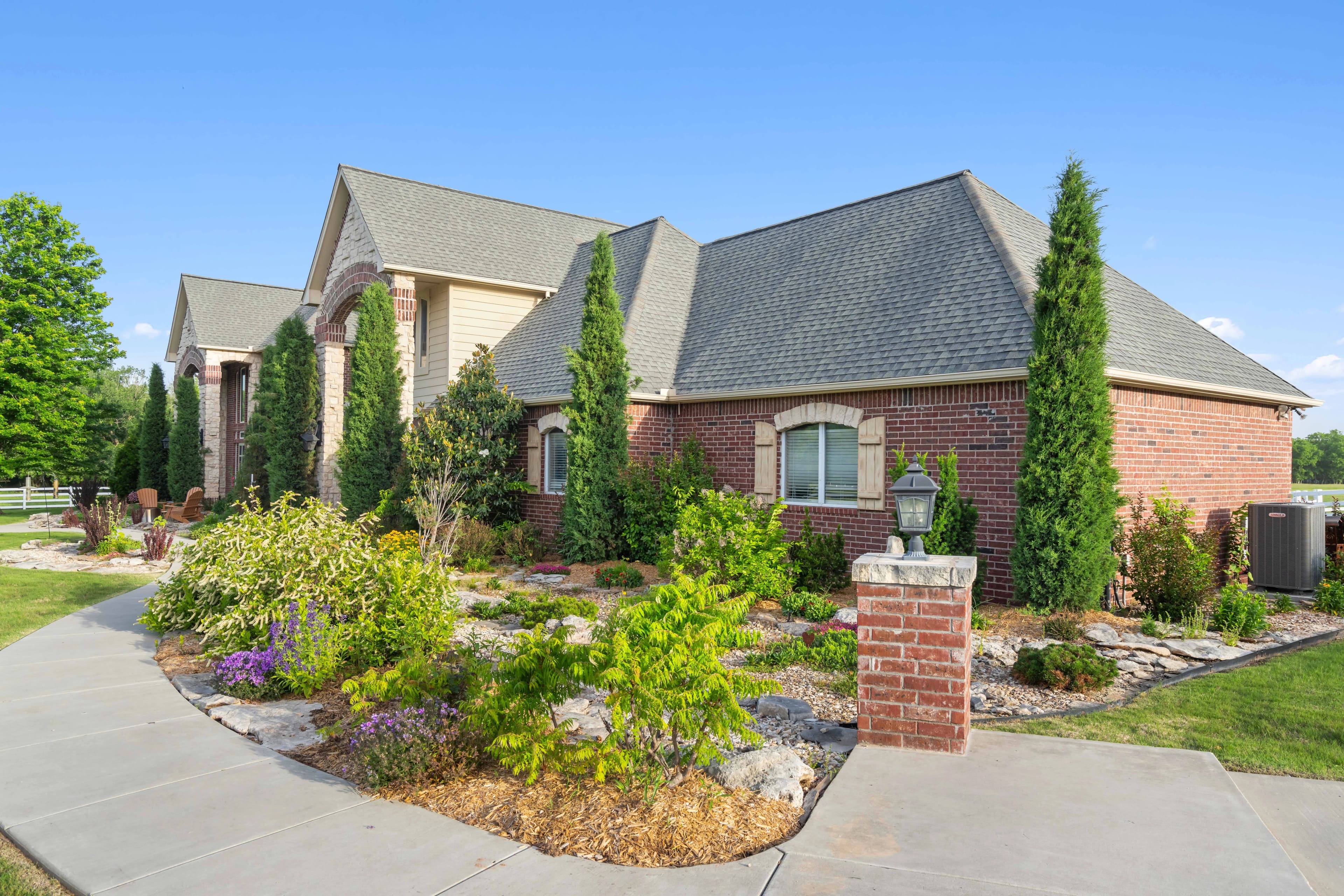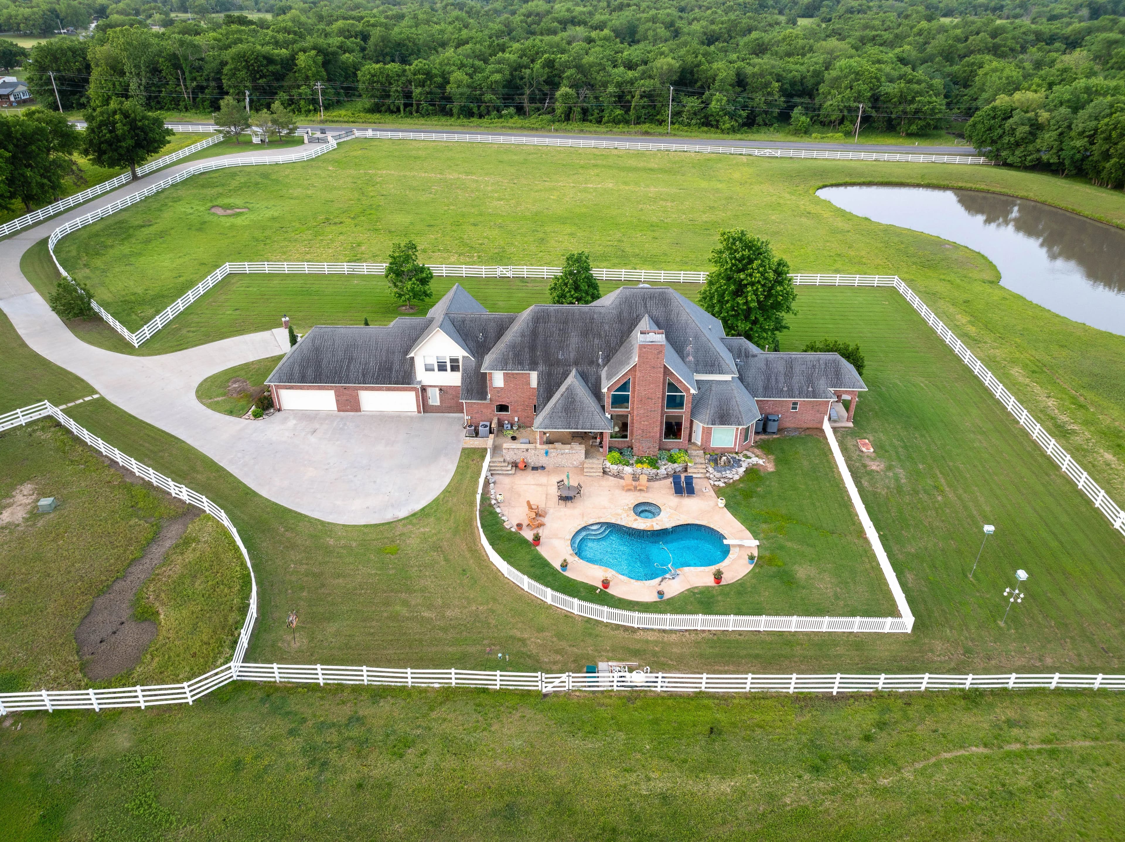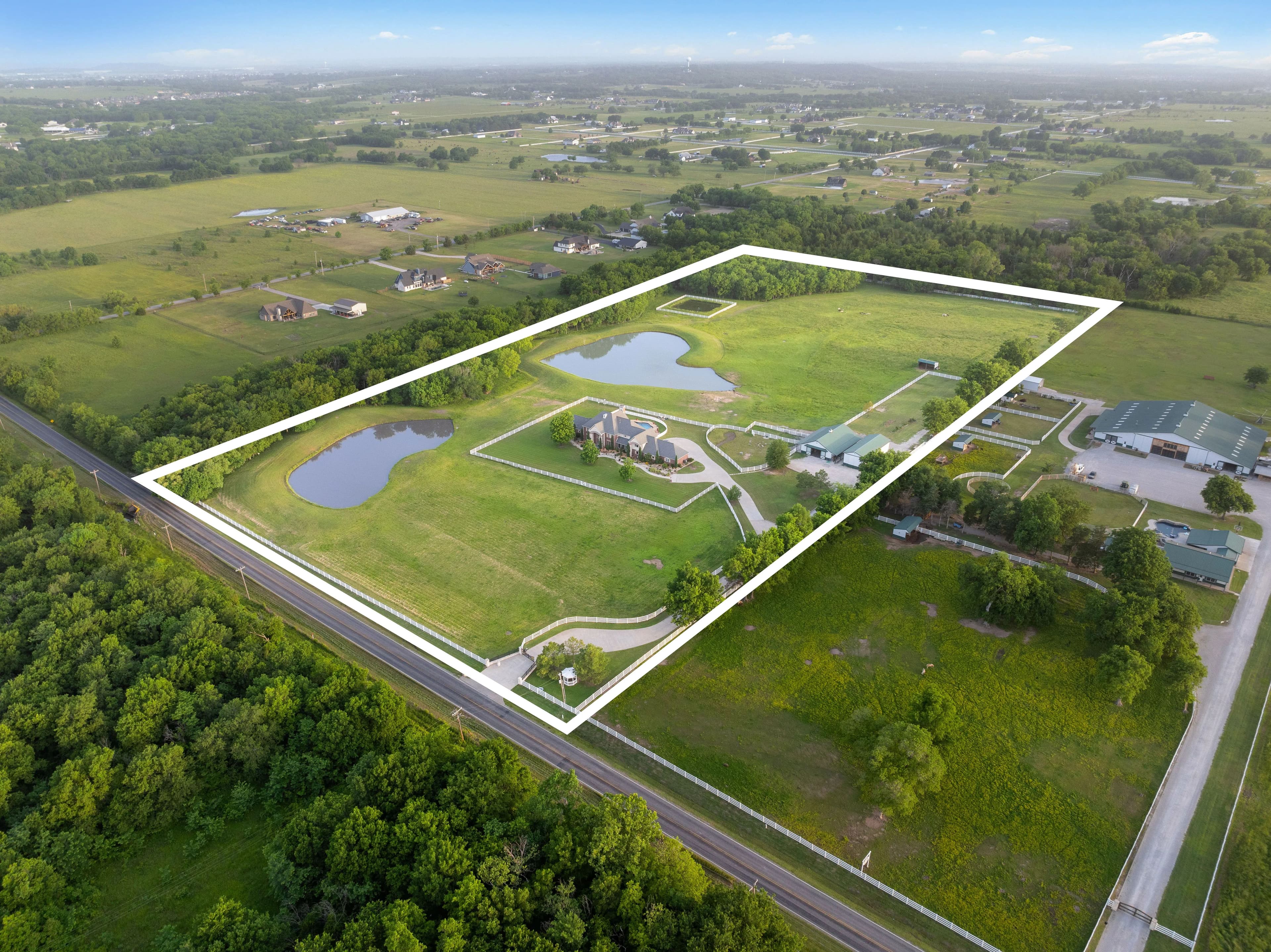 Experience refined country living with this extraordinary 4-bedroom, 4.5-bathroom estate, perfectly positioned on 20 pristine acres of privacy just minutes from downtown Bixby. Behind a gated entrance, this property blends timeless craftsmanship with modern luxury, offering the ideal retreat for equestrians, small scale farming, or families seeking space and sophistication.