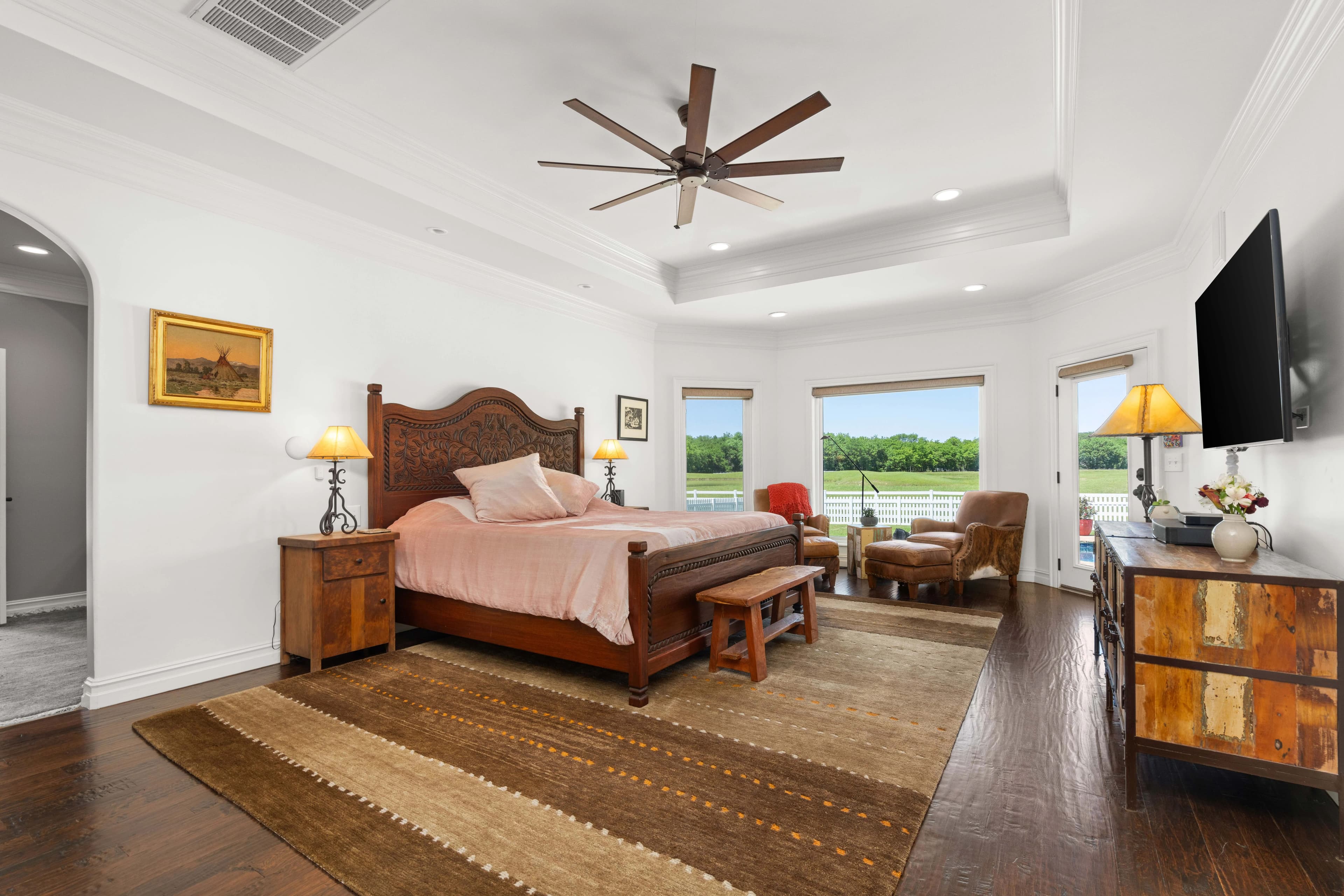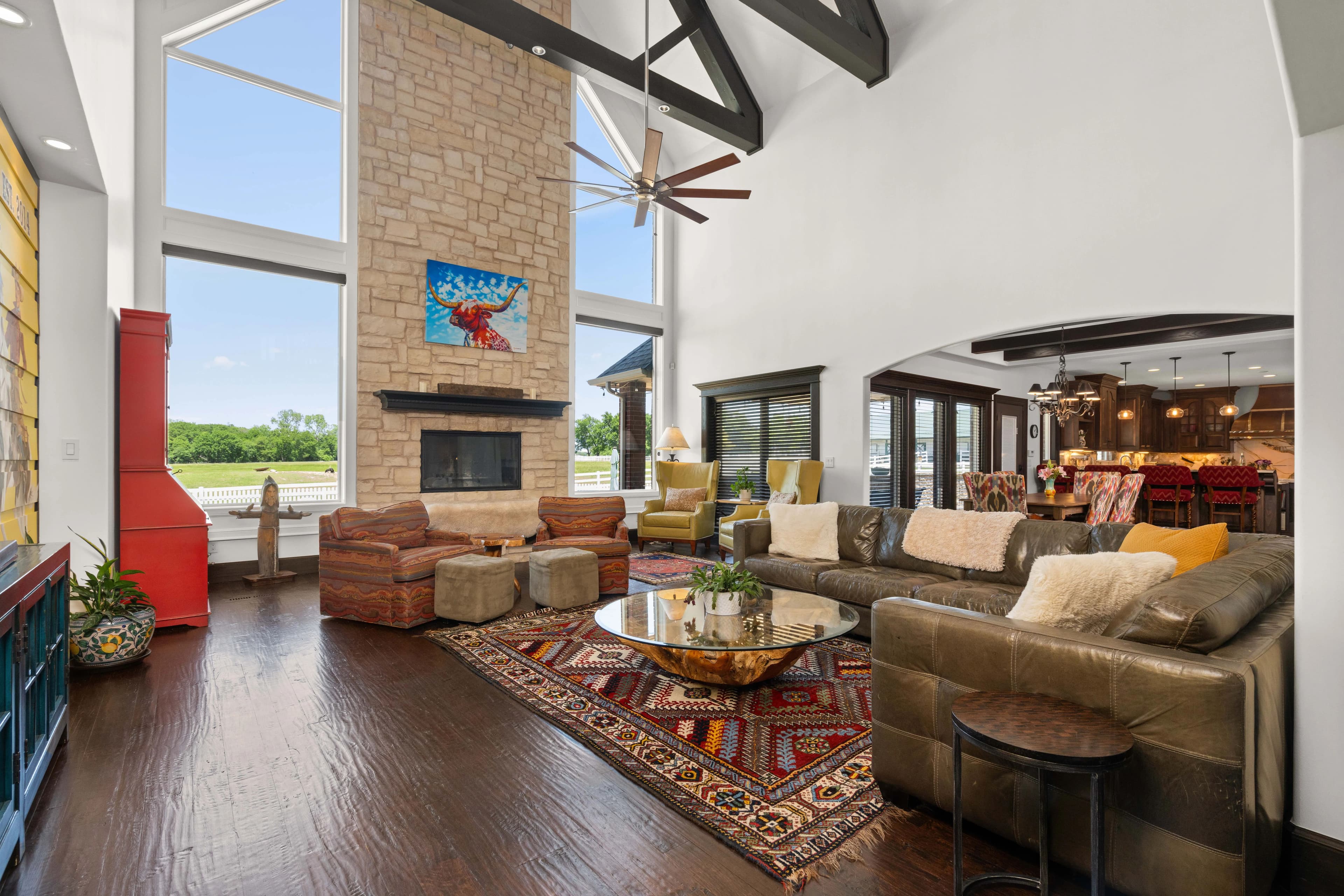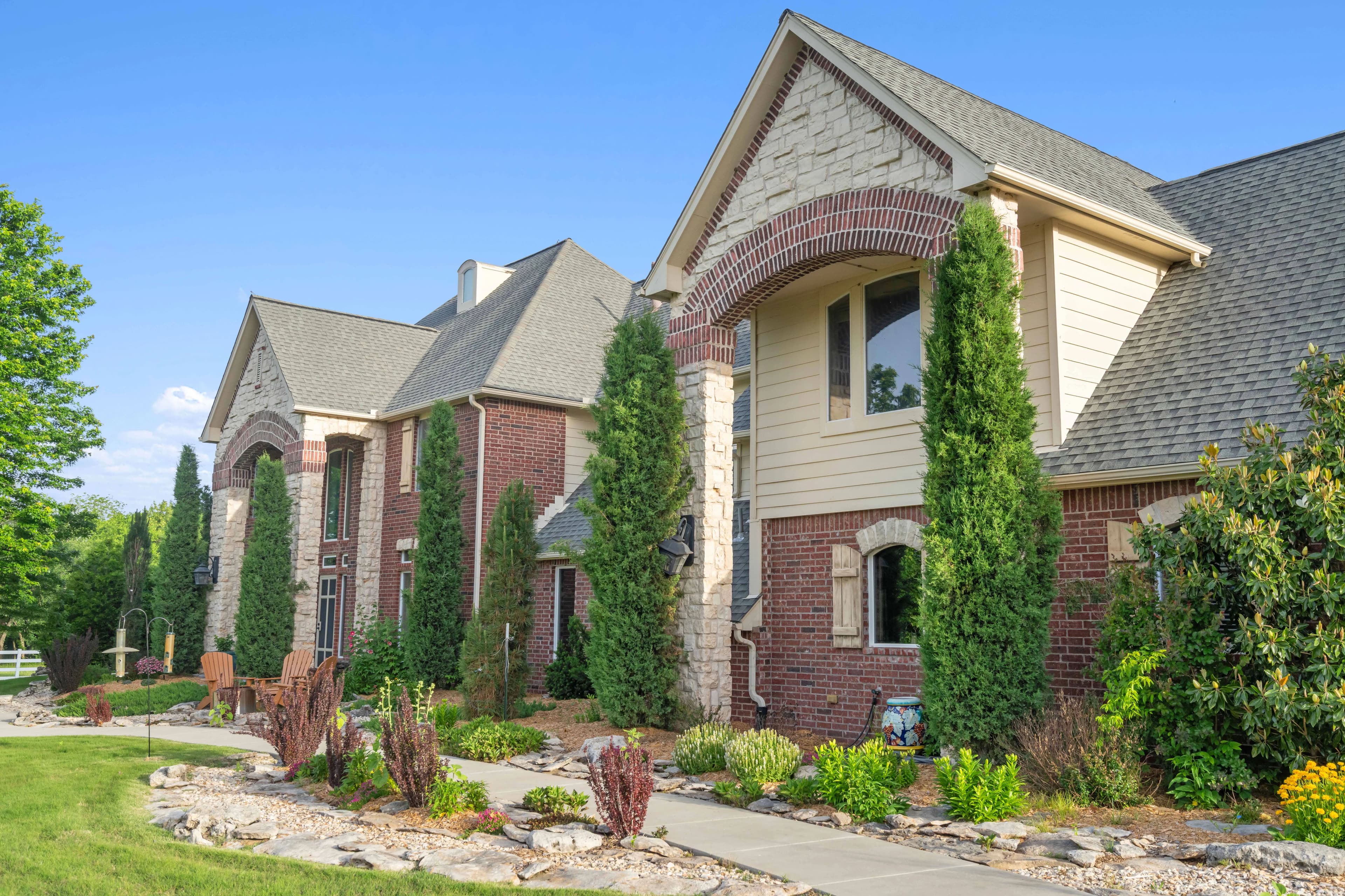 Experience refined country living with this extraordinary 4-bedroom, 4.5-bathroom estate, perfectly positioned on 20 pristine acres of privacy just minutes from downtown Bixby. Behind a gated entrance, this property blends timeless craftsmanship with modern luxury, offering the ideal retreat for equestrians, small scale farming, or families seeking space and sophistication.