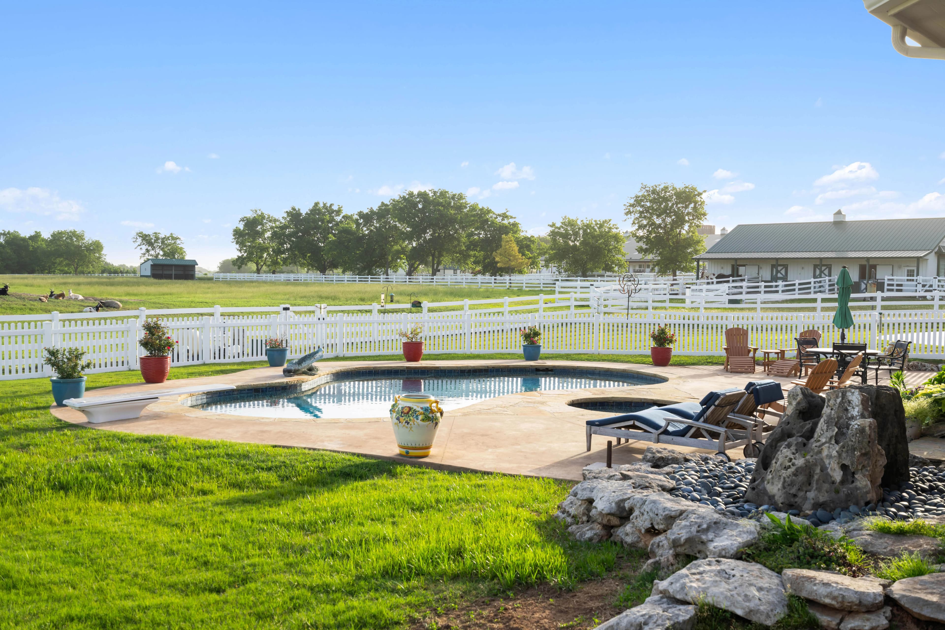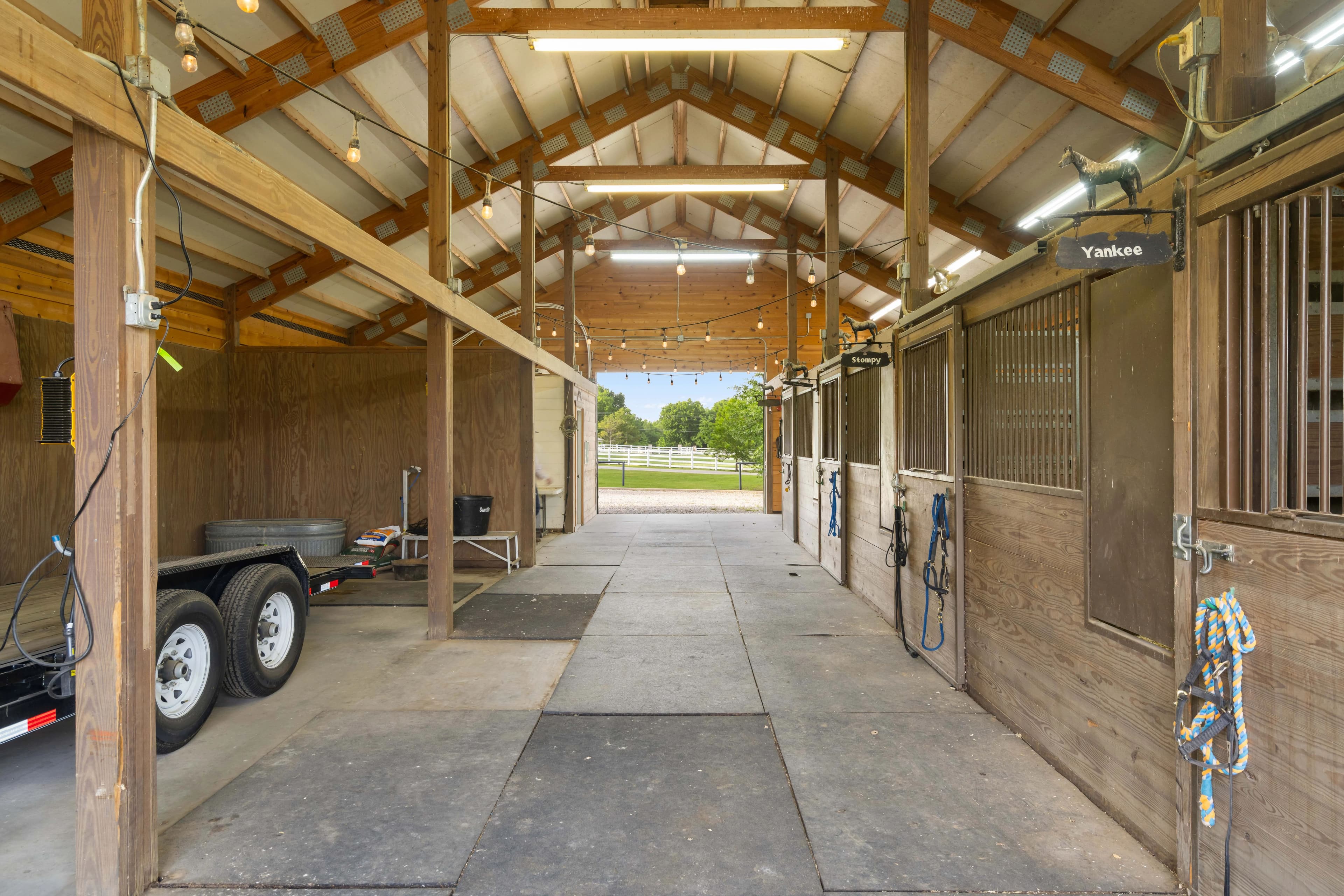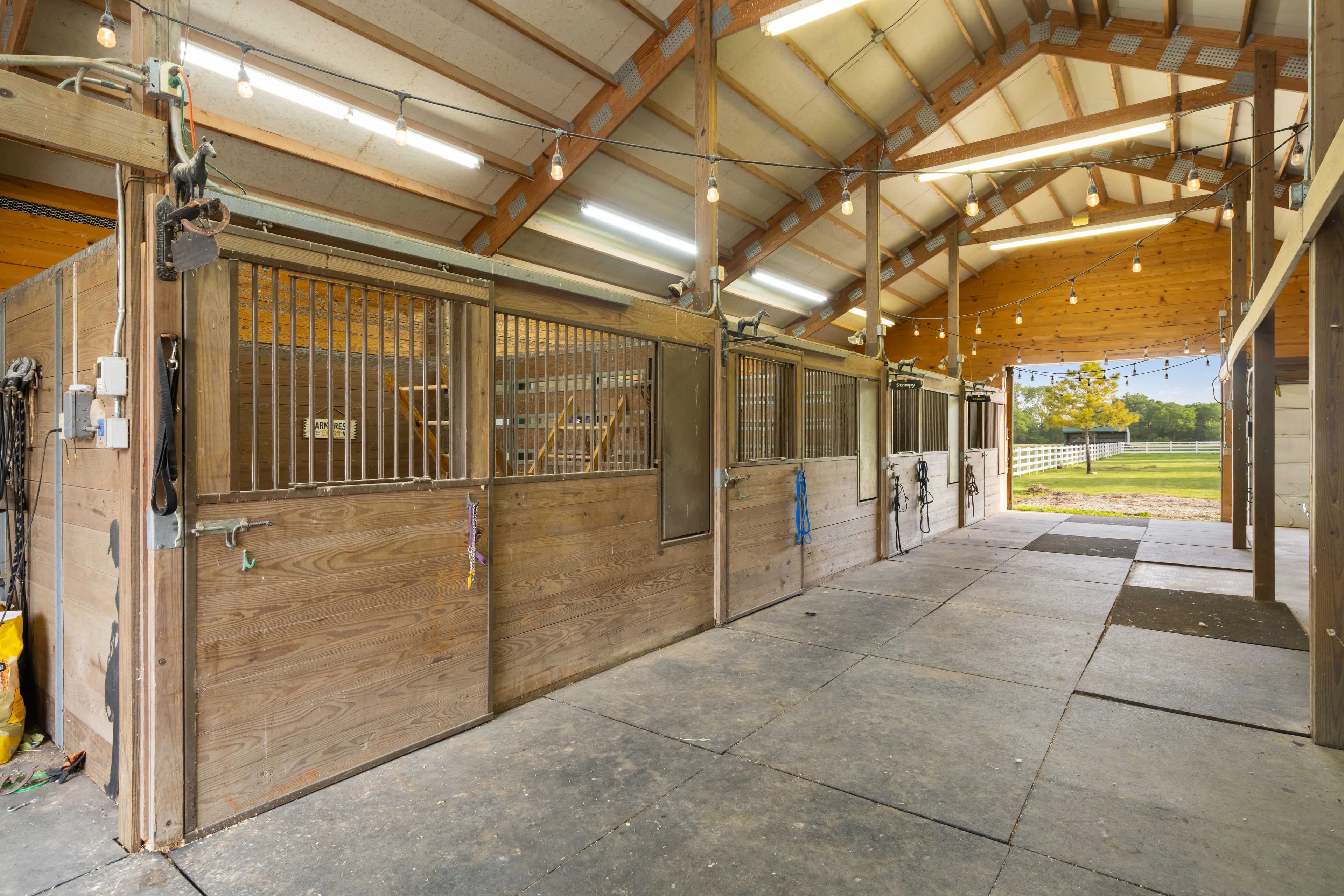 Outdoors, enjoy the pool with natural rockwork, two fully stocked ponds, and professionally landscaped grounds. Wildlife awaits you from deer to bald eagles. Equestrian lovers will appreciate the 50x60 insulated horse barn with 4 stalls (room for more), hot water wash rack, tack room, and adjacent 25x60 insulated shop with 220V service. A concrete driveway, vinyl 4-rail fencing, mature trees, and hitching posts add charm and functionality.