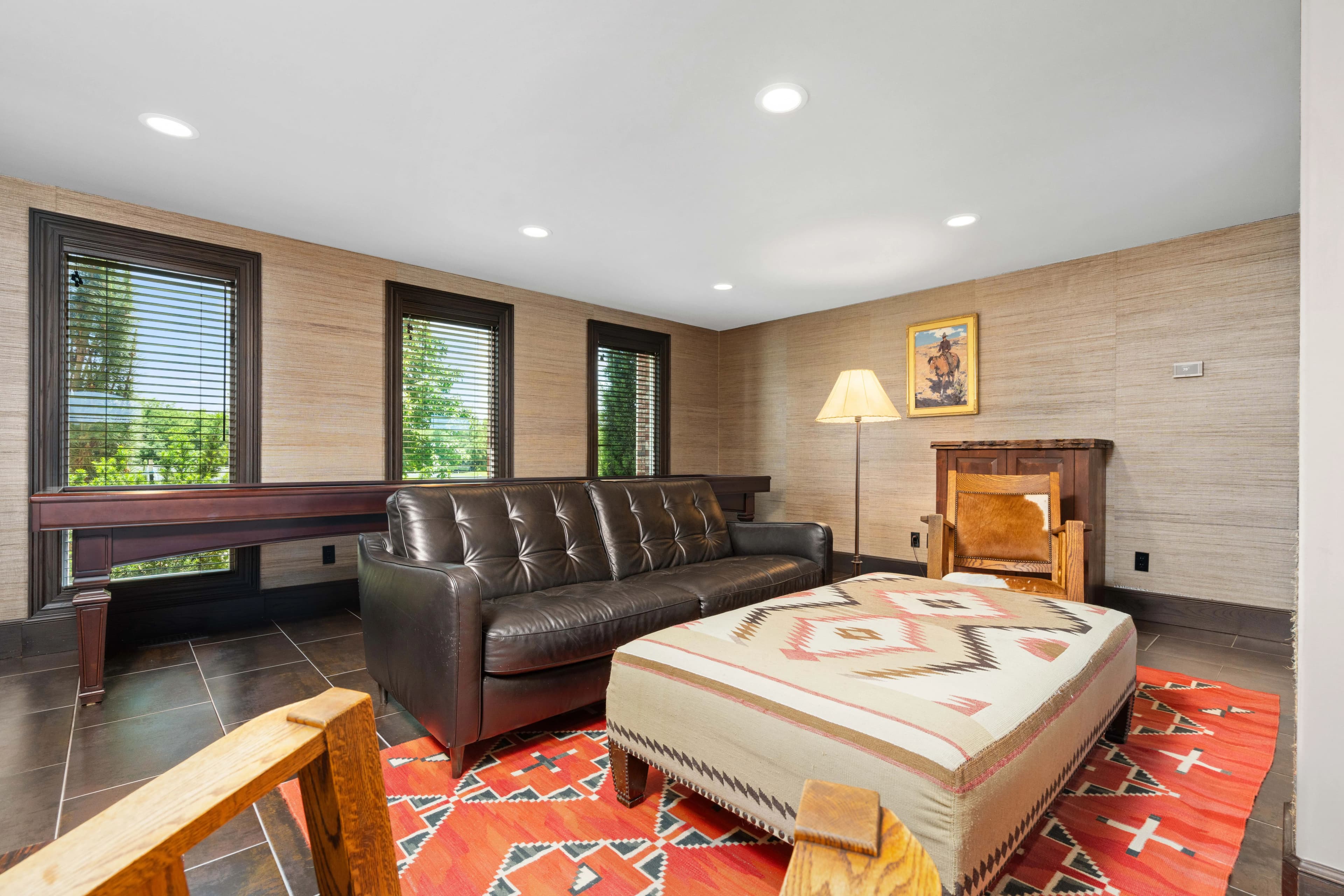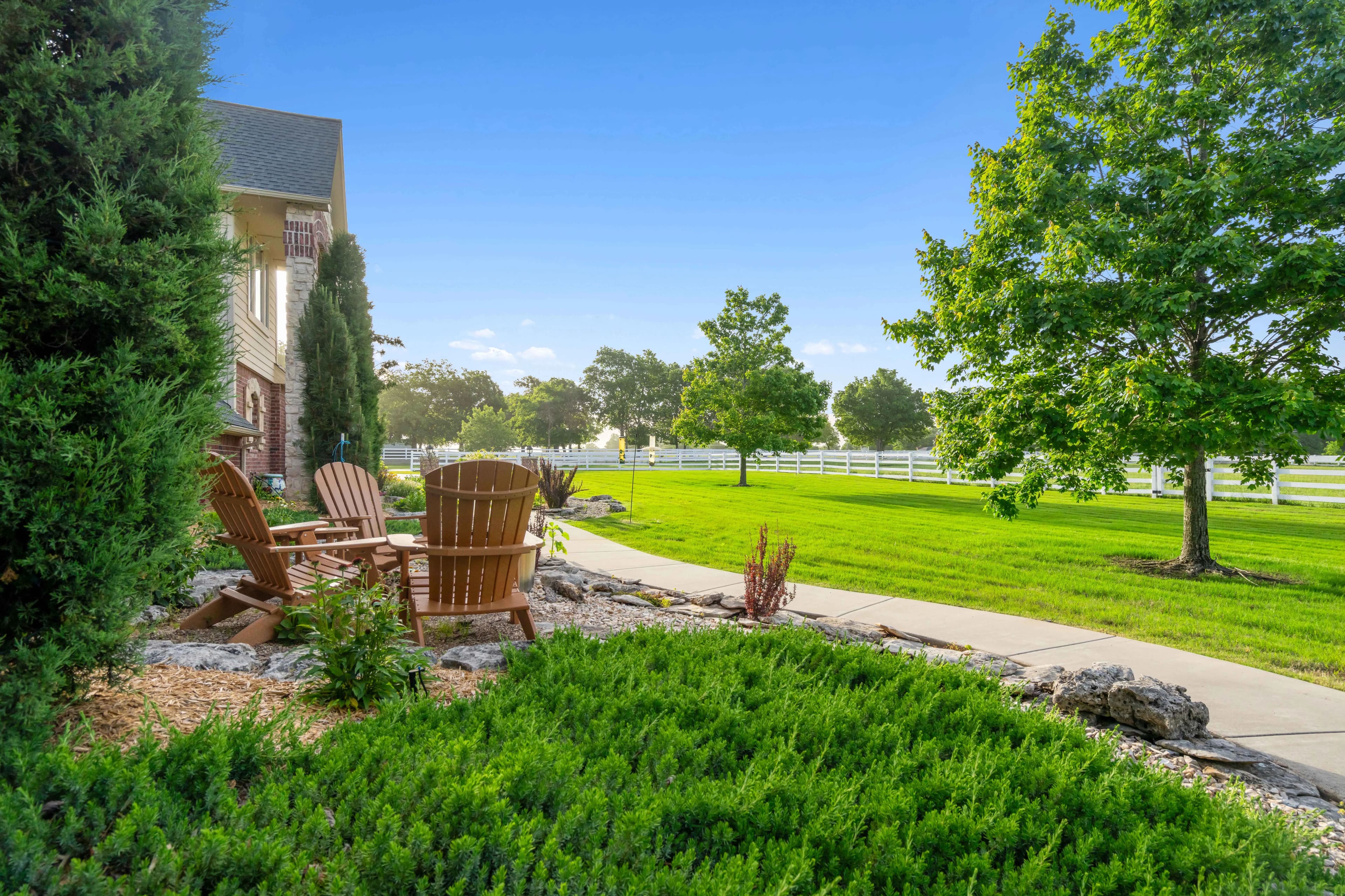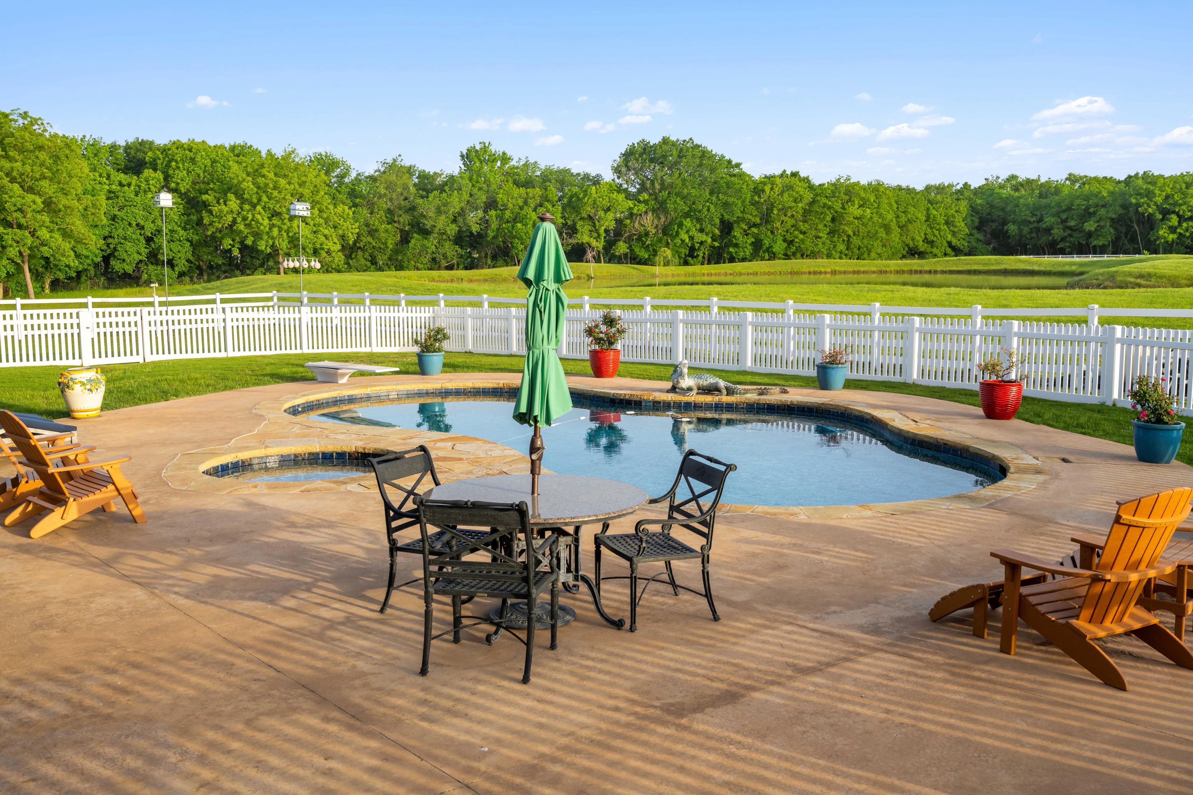 Outdoors, enjoy the pool with natural rockwork, two fully stocked ponds, and professionally landscaped grounds. Wildlife awaits you from deer to bald eagles. Equestrian lovers will appreciate the 50x60 insulated horse barn with 4 stalls (room for more), hot water wash rack, tack room, and adjacent 25x60 insulated shop with 220V service. A concrete driveway, vinyl 4-rail fencing, mature trees, and hitching posts add charm and functionality.