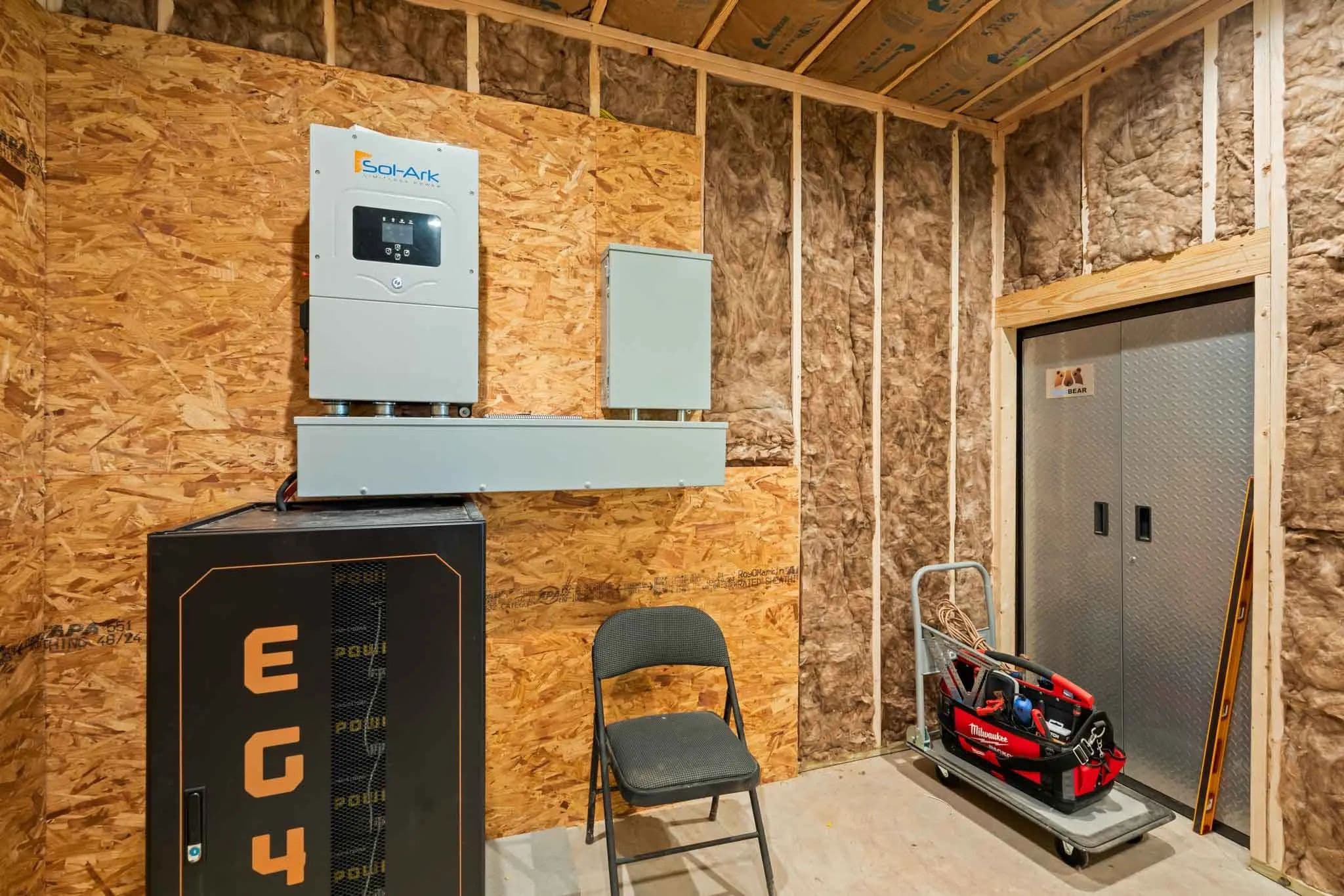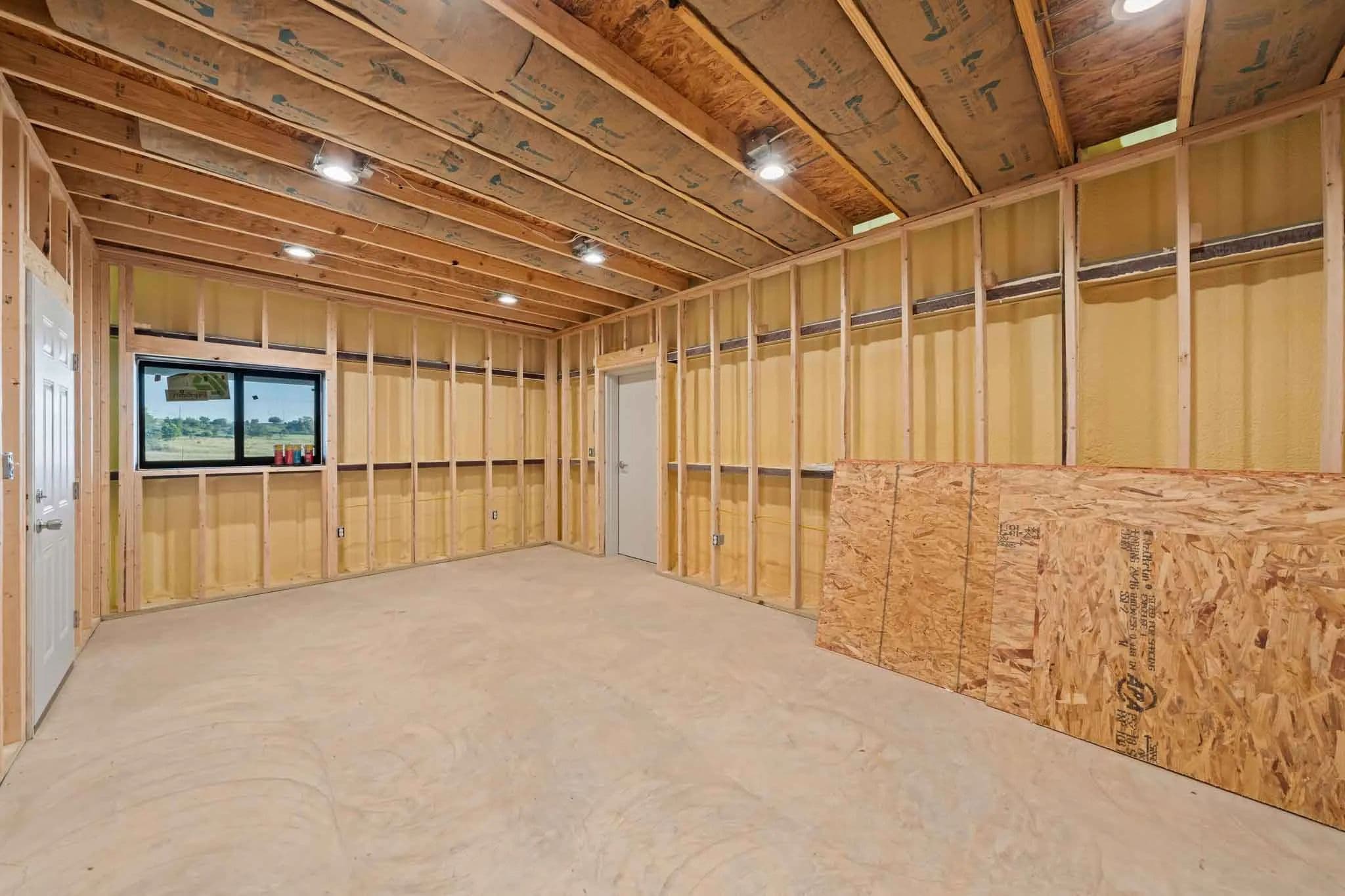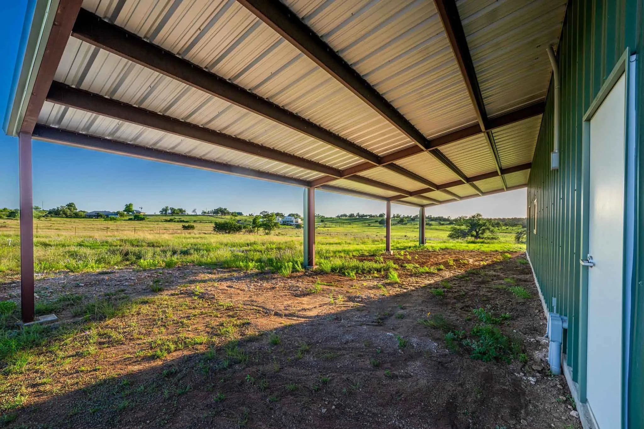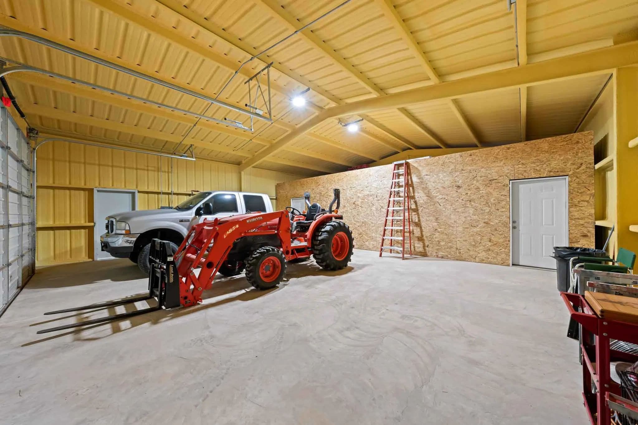 Just below the home, tucked into a private valley, is a 2,160± sf metal barn offering excellent utility and flexibility. The barn includes general storage, a climate-controlled storage room, and a workshop area with two large roll-up garage doors. Two 20'± x 60'± wings on either side provide additional covered space, perfect for equipment, trailers, or projects. The barn is powered by its own solar panel system, enhancing the property’s off-grid capabilities.