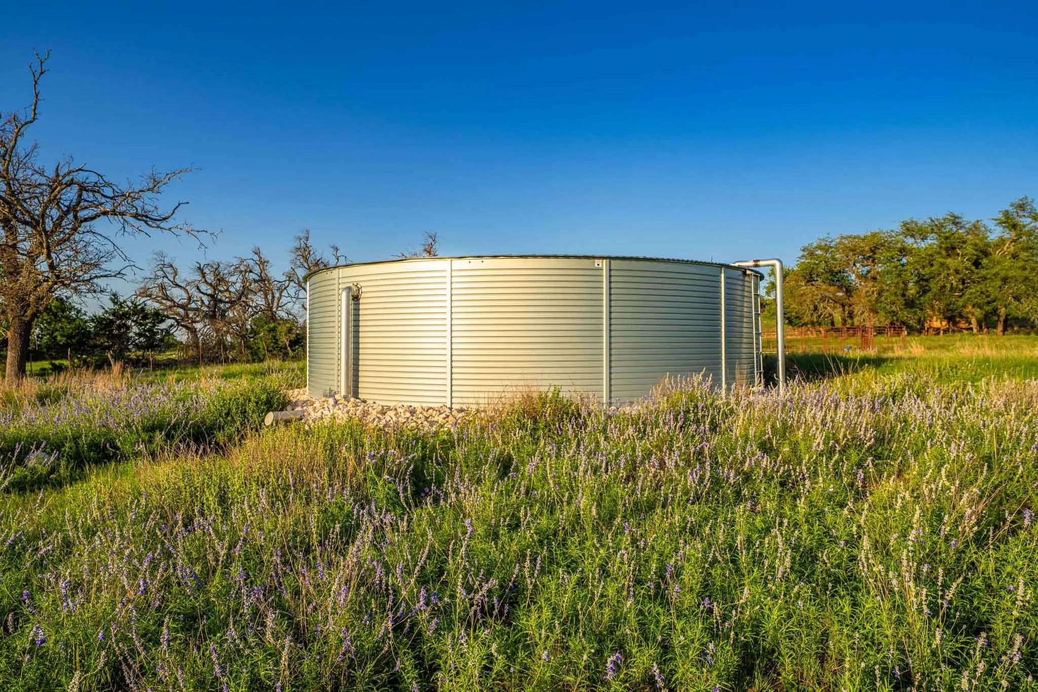 The property features a 10± GPM water well near the home. A substantial 60,000-gallon rainwater collection system further enhances the self-sufficiency of the property, providing a sustainable water source for the residence.