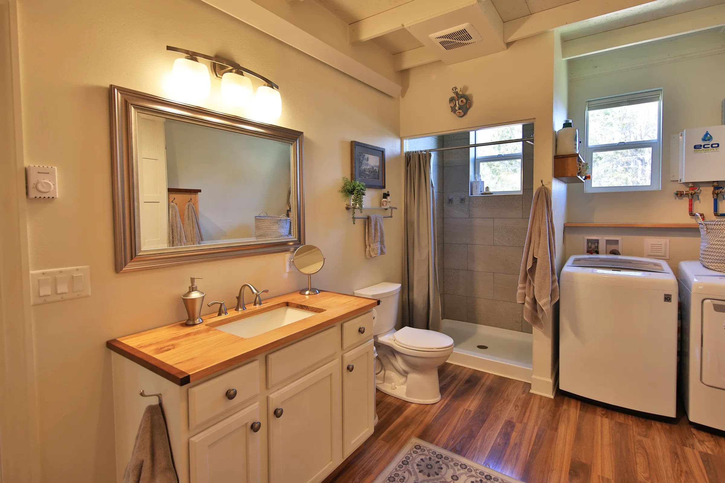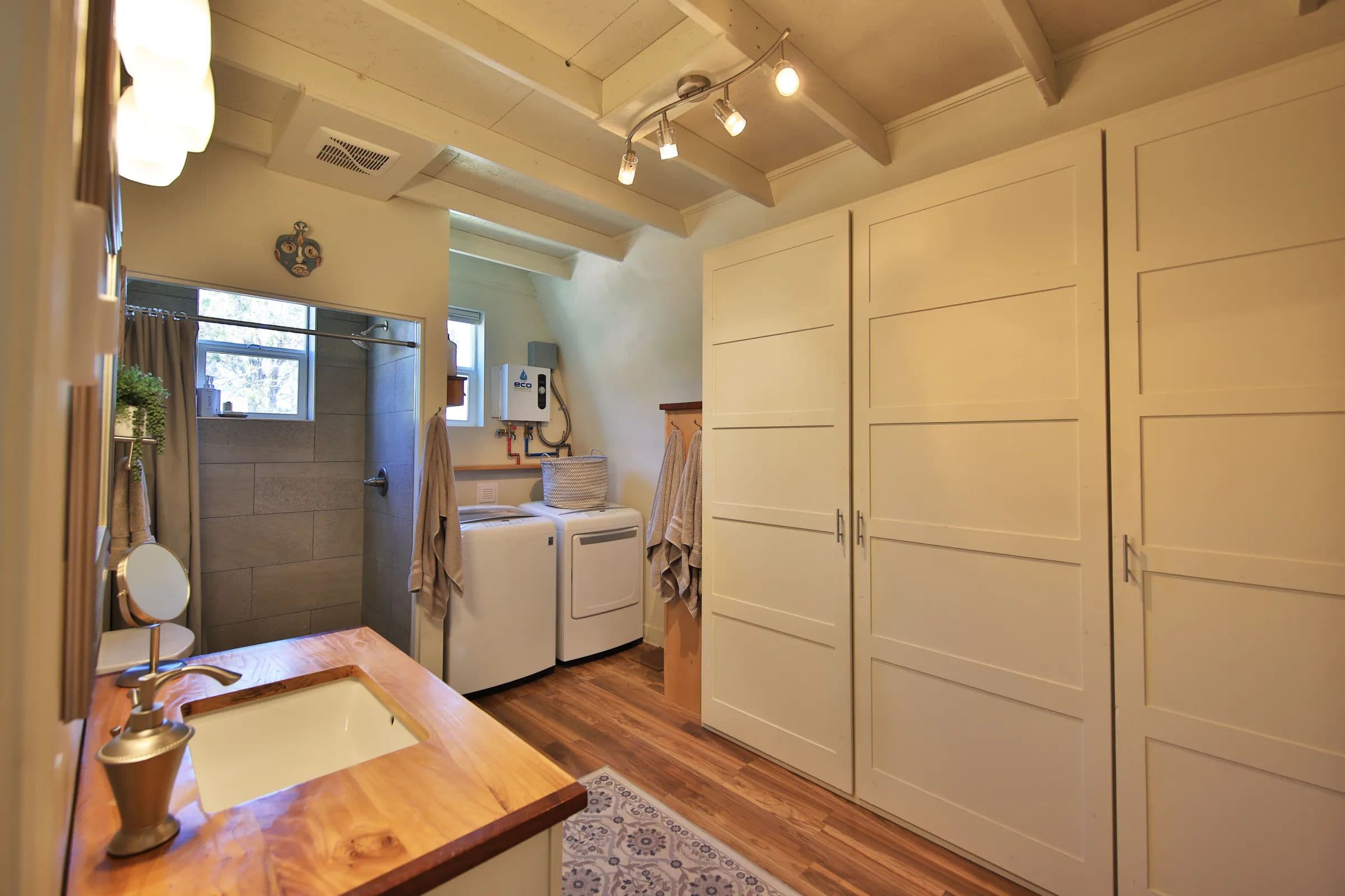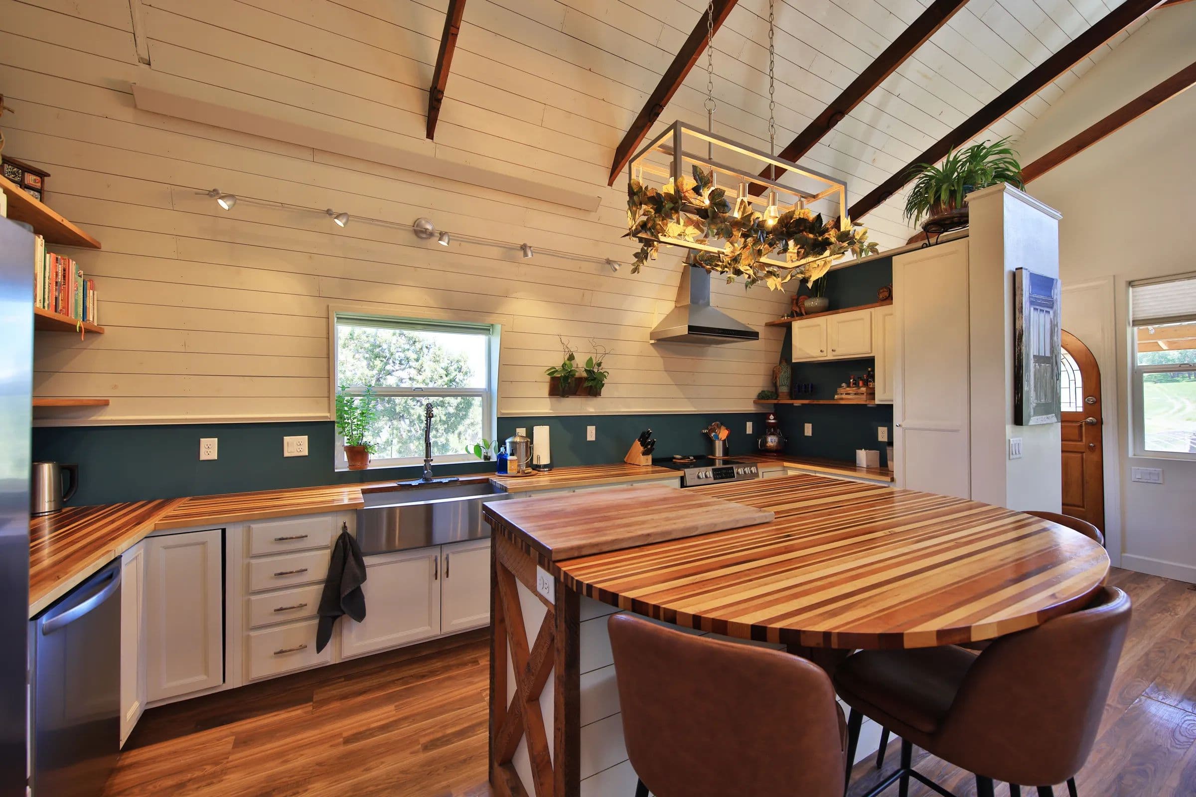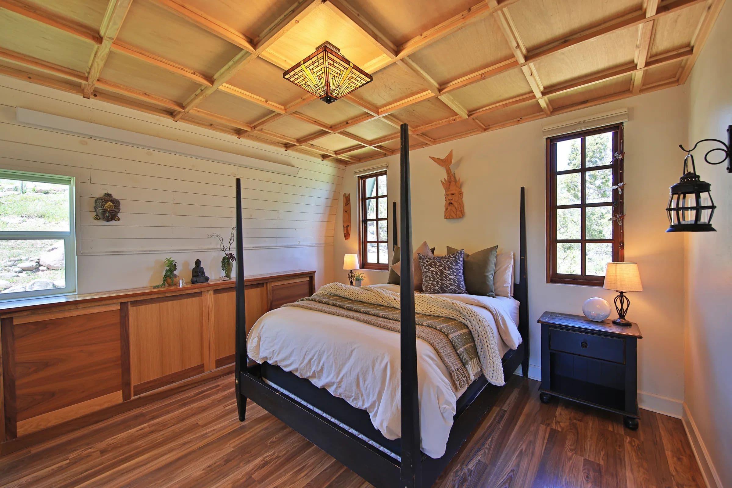 Western Colorado mountain home with custom features on 35 fully fenced acres, with irrigation, and a professional setup for specialty crops. Enjoy quiet and privacy on this rural property yet remain just minutes from the historic western town of Collbran and a short drive to the I-70 corridor for travel, adventure, or residential needs. From I-70, drive Highways 65 and 330 through scenic canyons, along creeks, with frequent wildlife sightings, mountain valleys, and peaceful country roads to reach this home surrounded by pastures with stunning mountain and valley views. This 960 sq ft, 1-bedroom with a spacious loft and ¾ bath offers a well-designed floor plan enhanced by custom craftsmanship—perfect for efficiency in a Colorado country lifestyle. Enter the home through a covered Trex deck porch and a beautiful arched wood door with embellished glass. Step into a welcoming foyer with a built-in wood bench and continue into the open concept living and kitchen areas, framed by custom crafted vaulted wood cross-beamed ceilings. Shiplap walls with an attractive color scheme, decorative lighting, and a pellet stove bring warmth to the home during chilly Colorado seasons. The kitchen features stunning handcrafted hardwood counters with a spacious breakfast bar, stainless steel double-door refrigerator, dishwasher, electric range with vented hood, deep farmhouse sink with arched extended spray faucet, garbage disposal, and under-counter microwave. Custom wood cabinets with shelving nooks and under-stairway storage offer functionality and charm. The large bathroom includes a walk-in tiled shower, vanity, and floor-to-ceiling storage unit. The laundry area includes a Direct Drive Hydroshield efficiency washer and dryer. The main bedroom is conveniently located on the main level. A pine wood stairway leads to a roomy loft featuring a wood ceiling and stained-glass light fixture overlooking the living area. Additional comfort features include a tankless eco-friendly electric hot water heater, large double-paned windows for abundant natural light, window coverings, spray foam insulation, wood laminate flooring, and convection electric wall-mounted heat units. Landline, cell, and internet service are available. UPS and FedEx delivery services are also accessible. Natural terrain landscaping creates ideal outdoor spaces for family activities, entertaining, or simply enjoying the views and frequent wildlife sightings. Stone and wood steps lead to multiple areas including a covered chicken coop and an organic caterpillar-style greenhouse. An underground water system is supplied by a year-round pond. This custom property offers year-round agricultural production and peaceful country living under Colorado blue skies and star-studded nights.