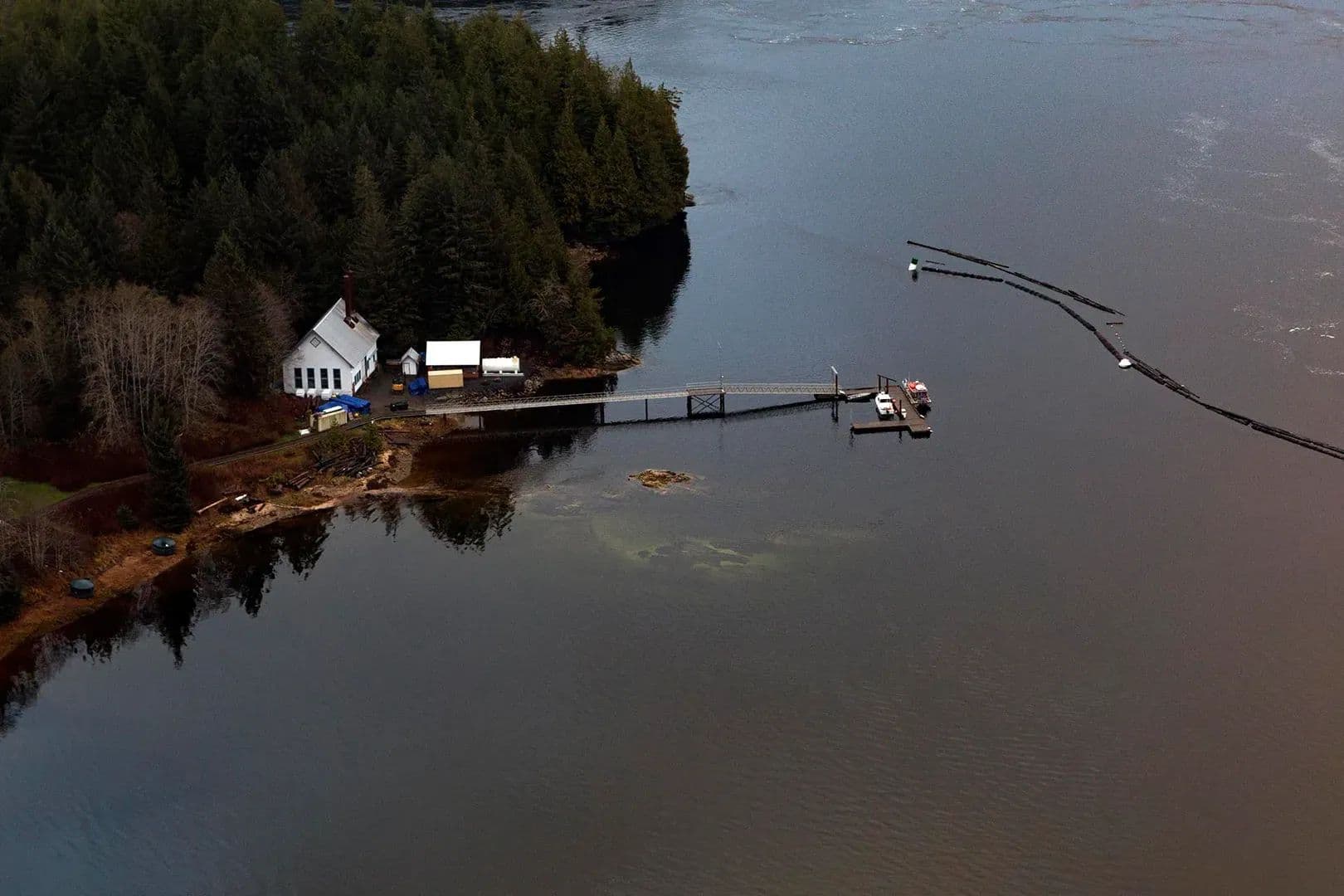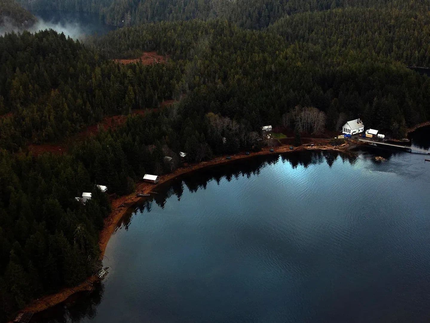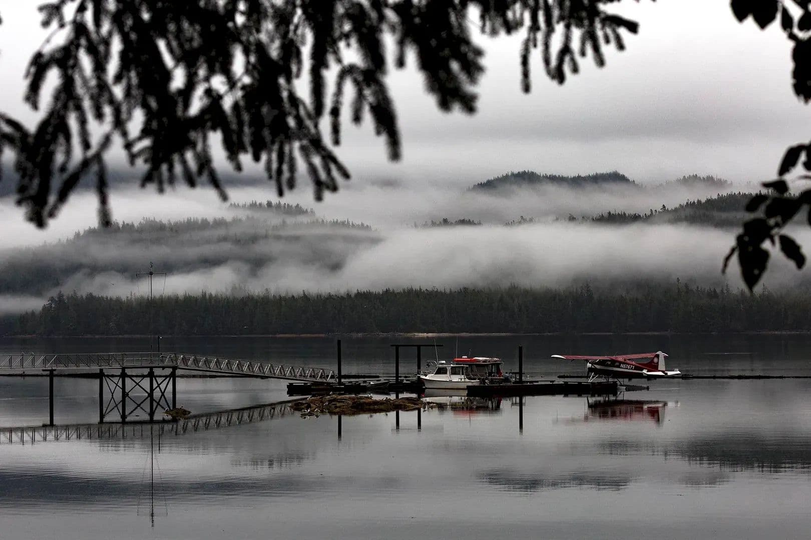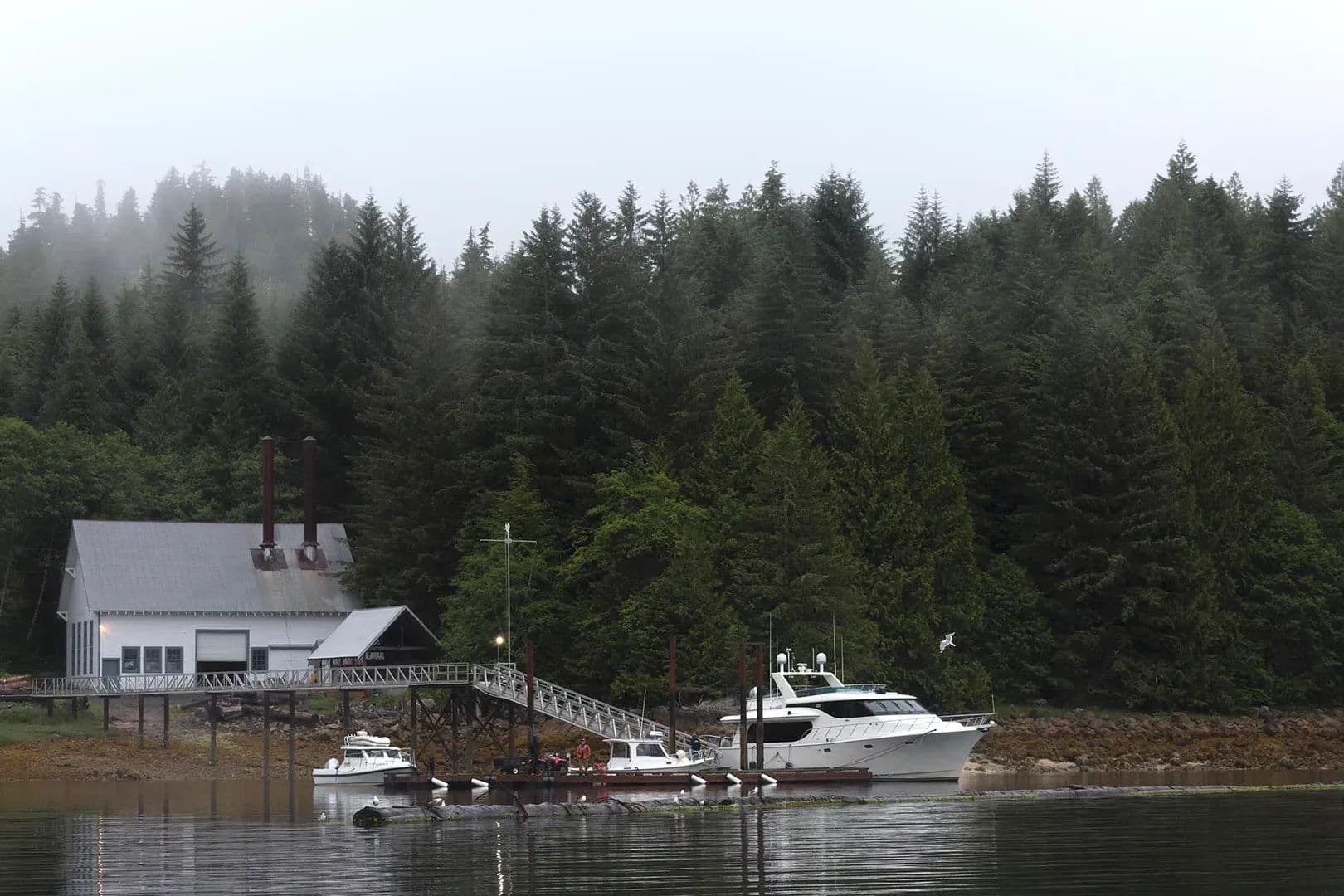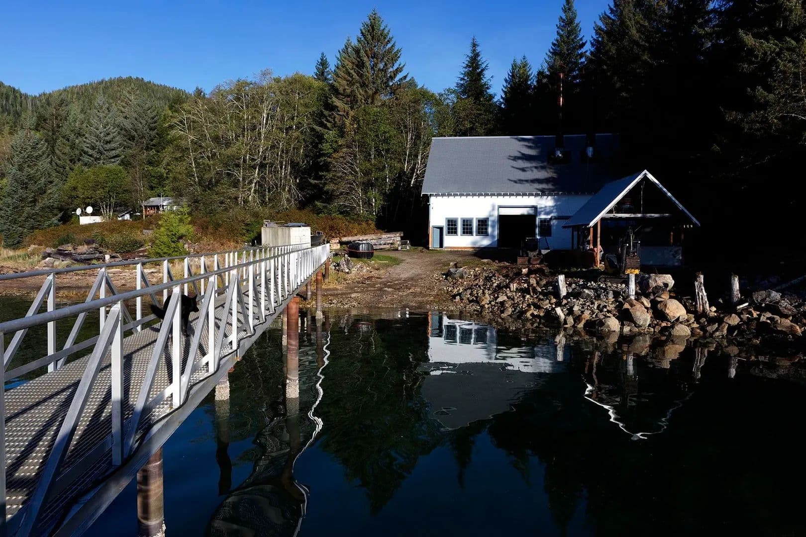 Accessible only by floatplane or boat, the lodge is positioned in the protected waters of Gwent Cove, an ideal natural harbor with deeded tidewater rights. This offering includes three meticulously restored historic cannery cabins, four thoughtfully updated timber-frame guest lodges, a stunning over-the-water Bay Bar with an approved liquor license, and an engineered $500,000 dock designed to accommodate the region’s dynamic 23-foot tides. A yellow cedar boardwalk connects the buildings, blending rustic charm with practical elegance.