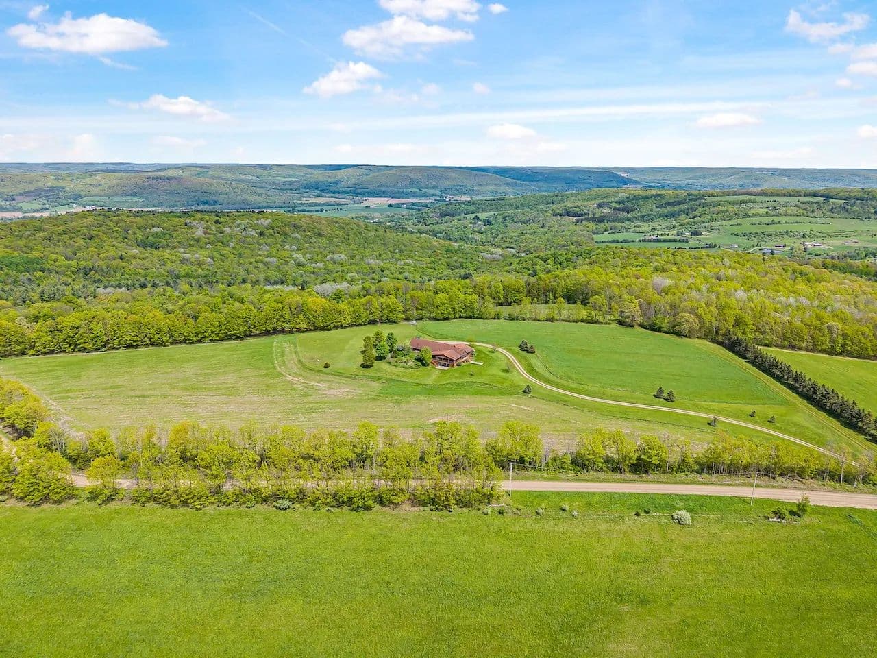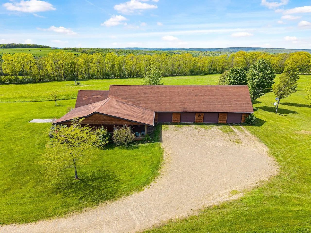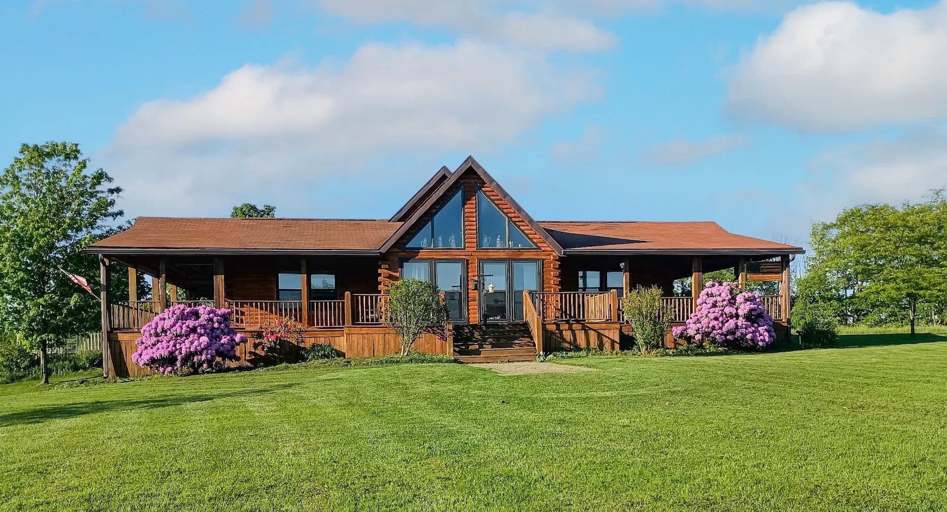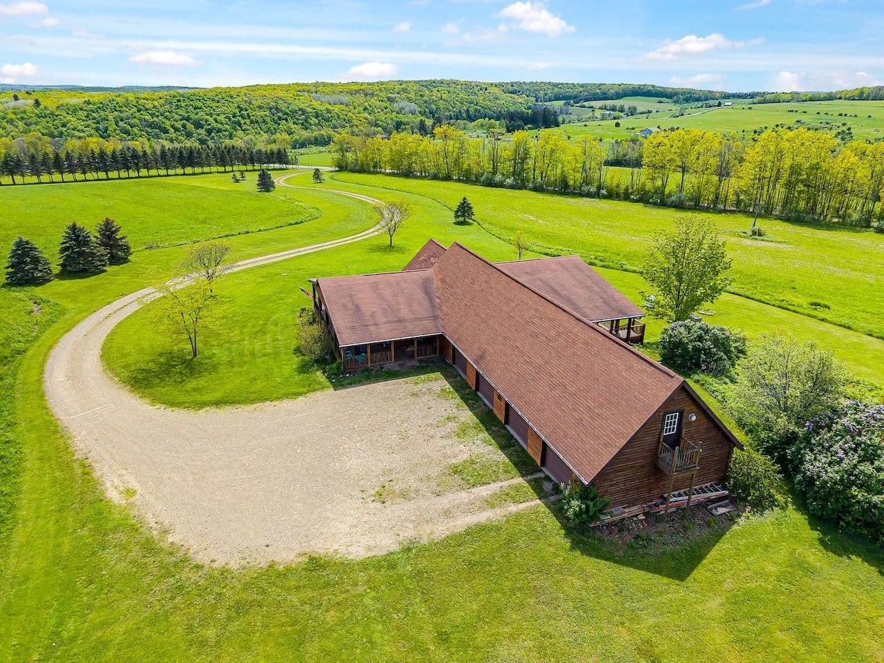 Beautiful log home with a 4 bay garage on 16 acres in Belmont NY, Allegany County.