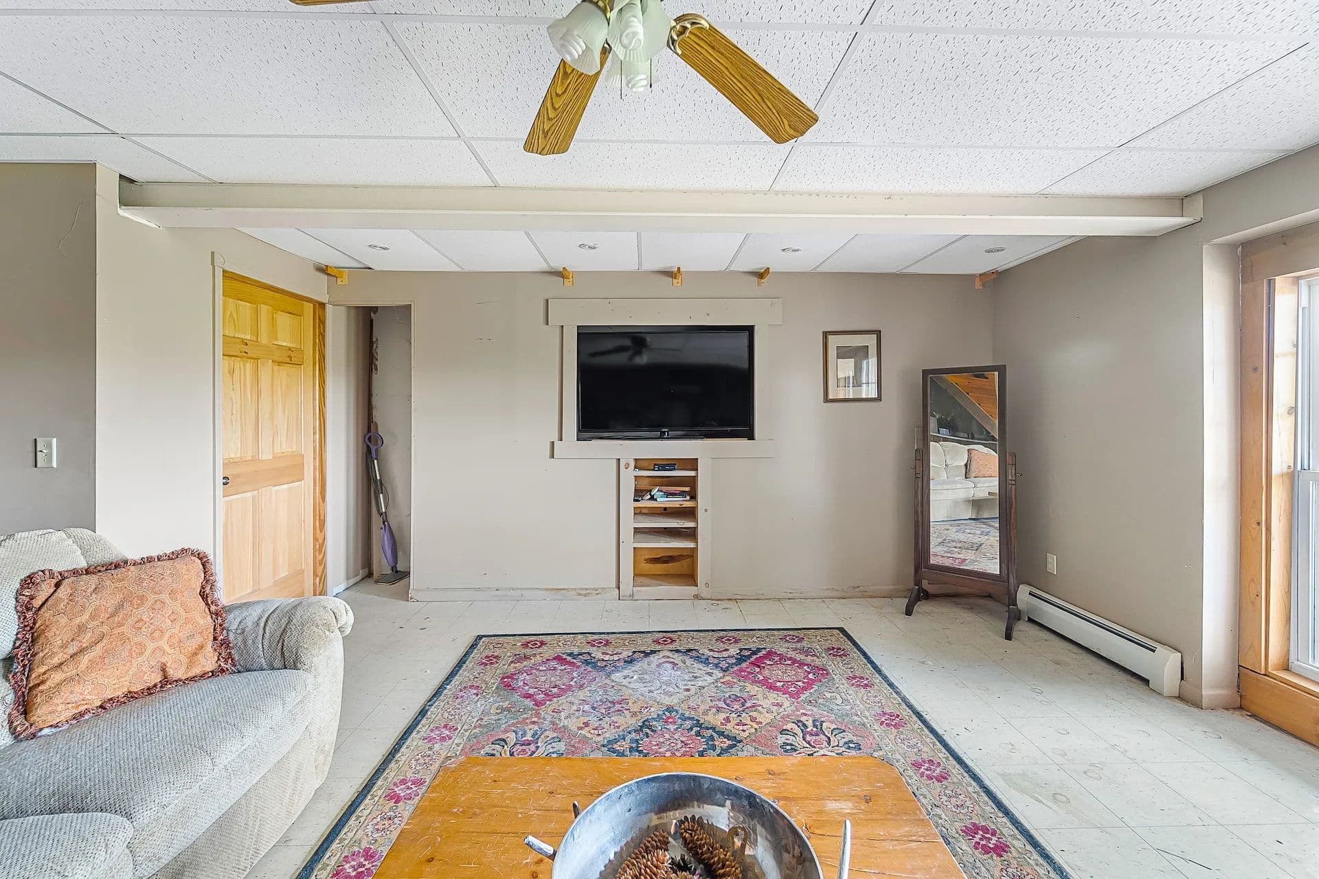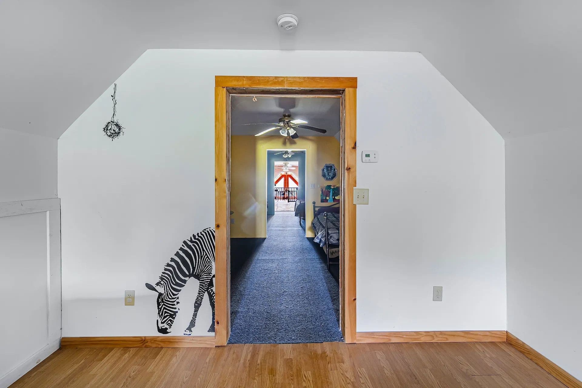 Inside, you'll find four bedrooms and three full baths including a spacious first-floor primary suite with hardwood flooring for easy one-level living. Enter through the attached garage into a generous mudroom that includes tile floors, a full bath and laundry area perfect for country life. Both the first floor and the garage feature radiant heat. The heart of the home is a welcoming great room with hardwood floors that flow into an eat-in kitchen, outfitted with ample cabinetry, a large island, and a breakfast bar ideal for entertaining or casual family meals. Upstairs, a rear bedroom with its own balcony provides a quiet retreat with elevated views of the peaceful countryside. The upstairs also includes additional rooms that could be used as bedrooms offering flexible space for guests, a home office, or hobbies.