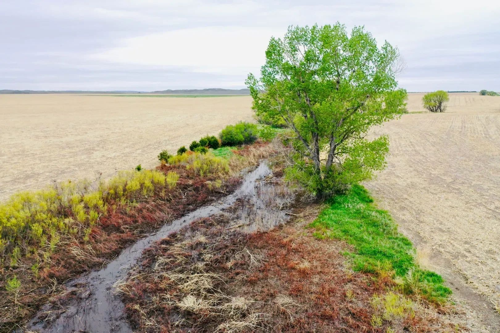 Enhancing the property’s functionality are two wells, a small storage shed for added convenience, and a concrete pad with electrical hookups, ready to accommodate a new grain bin. The established shelter belt provides natural windbreaks and privacy, while good gravel road access ensures easy transportation and connectivity.