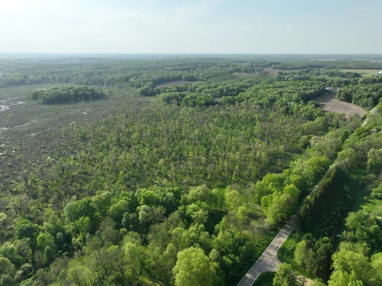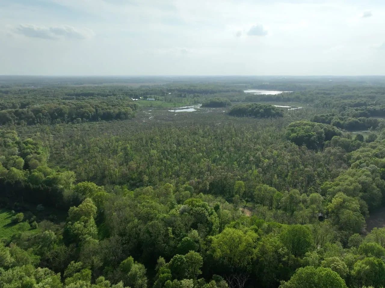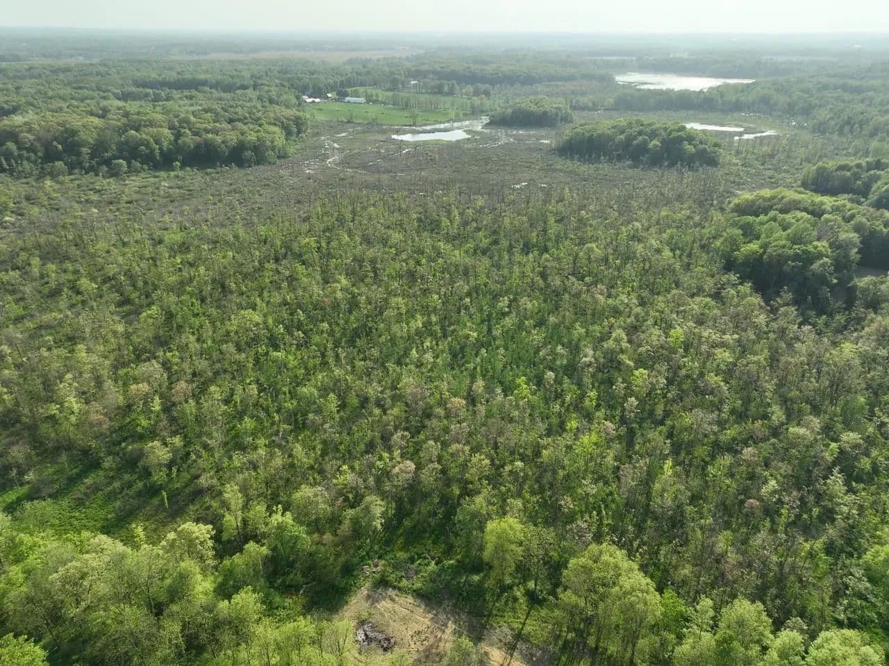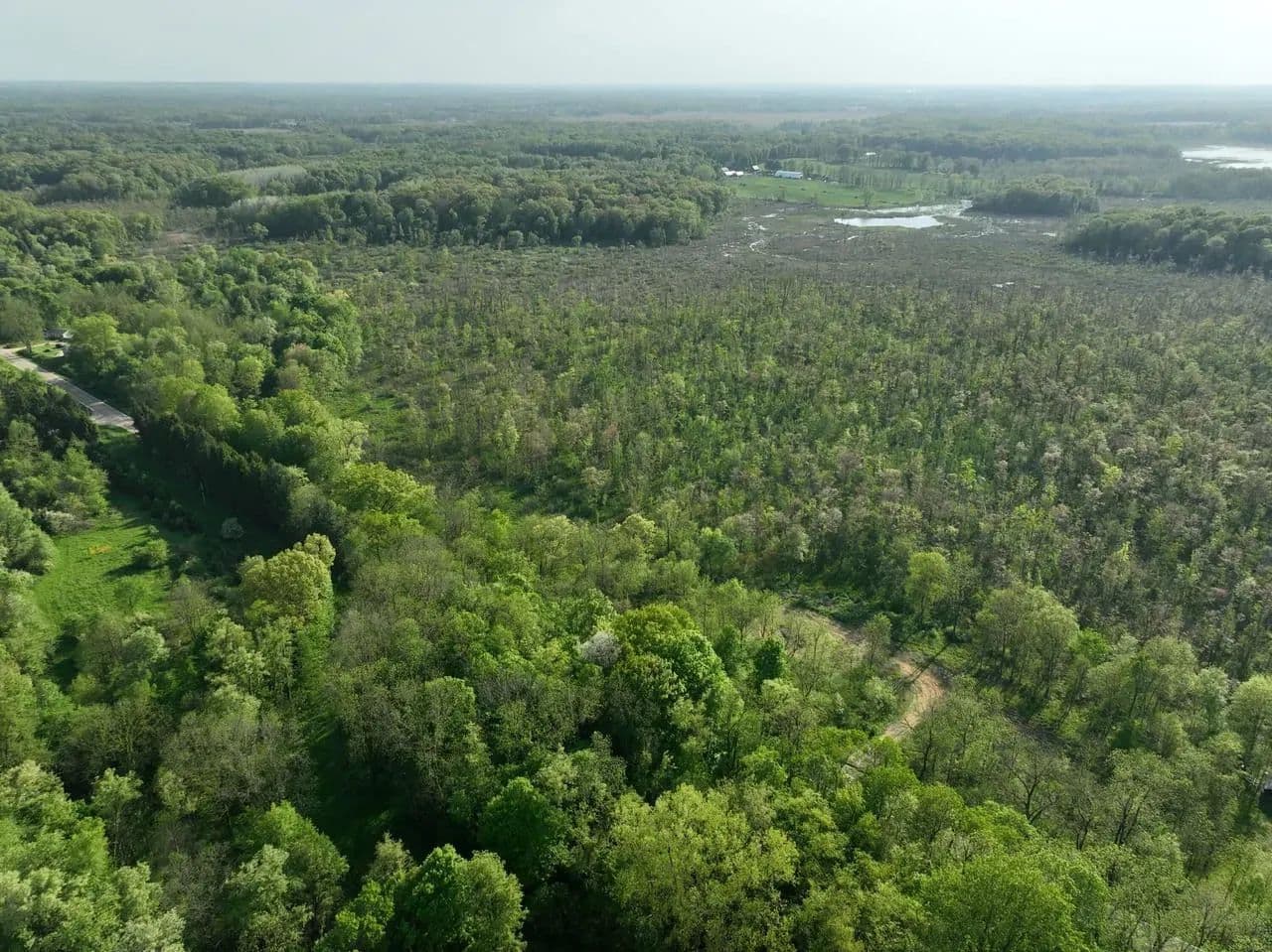 The Crane Pond State Game Area in Cass County, Michigan, encompasses approximately 4,218 acres. This area offers a diverse mix of habitats, including upland mixed deciduous forests, lowland hardwoods, wetlands, and prairie restoration zones. Topography is rolling, with mesic, sandy loam soils, and features a 150-acre prairie unit along with numerous forest openings.