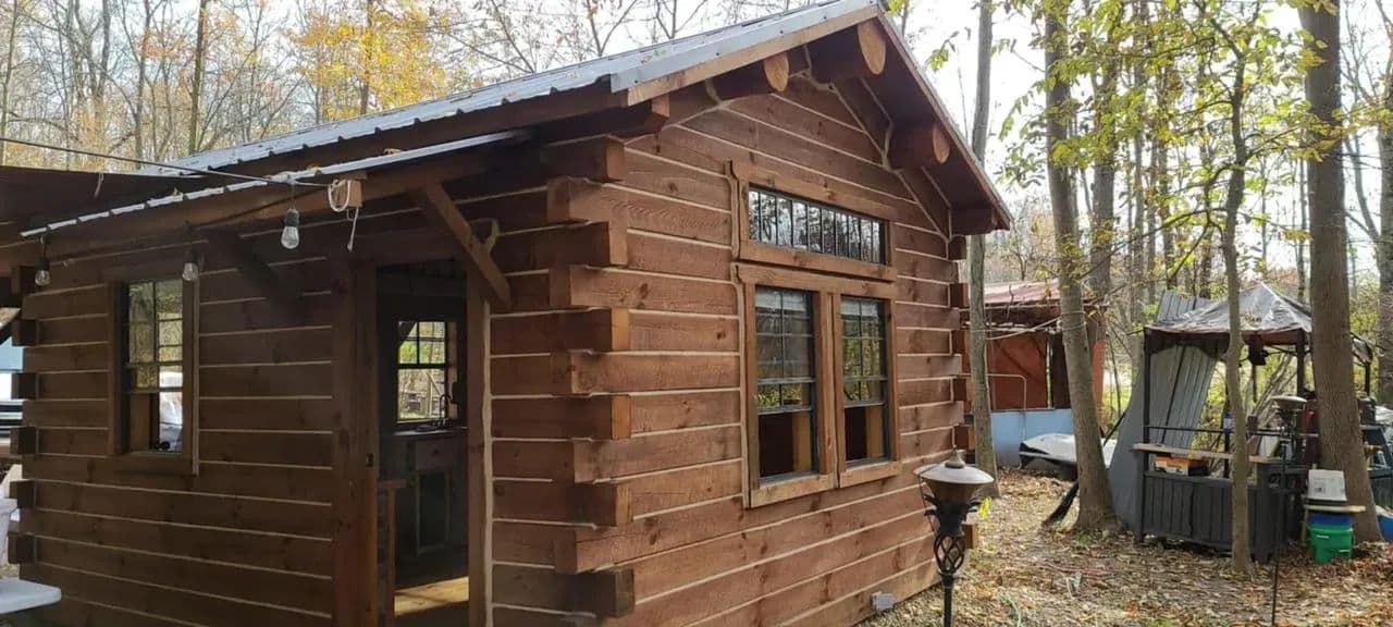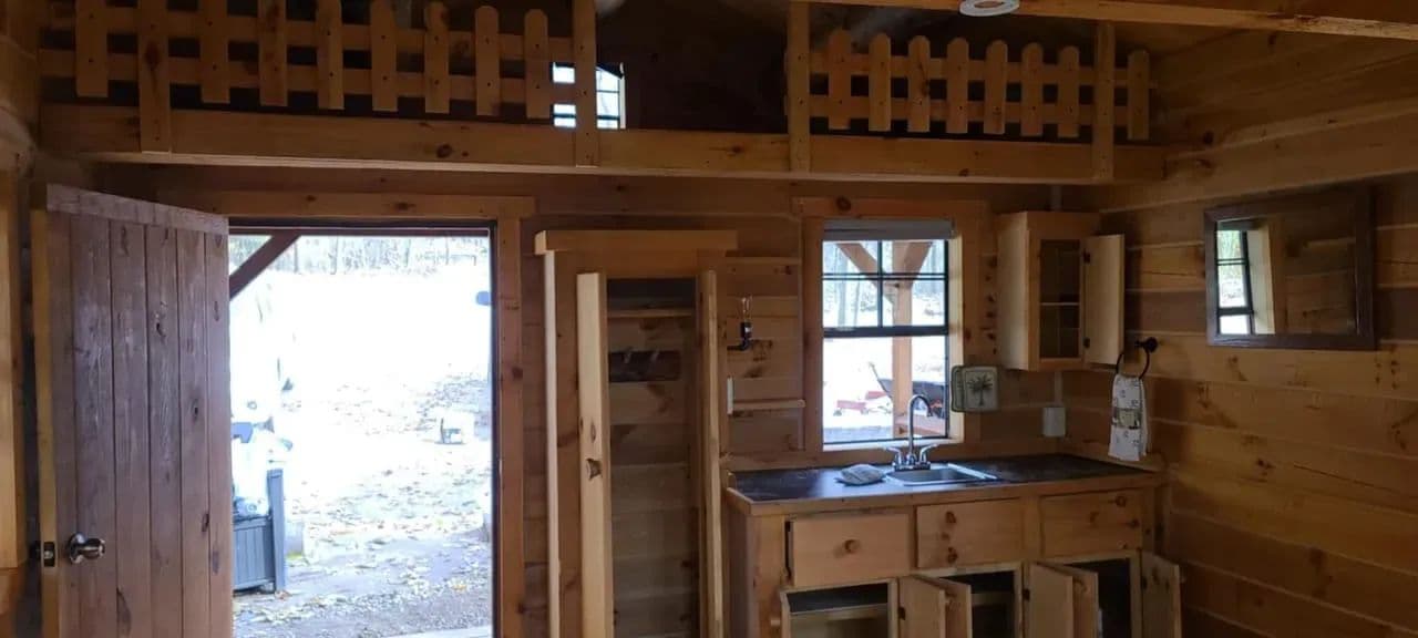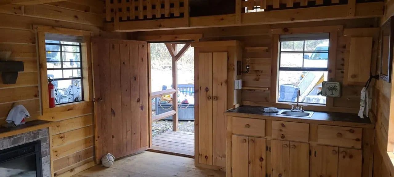 -Charming 12x16 Cabin is on property providing: a sleeping loft with room for a bed on the main level , kitchen , porch, Plenty of natural light with quality windows.