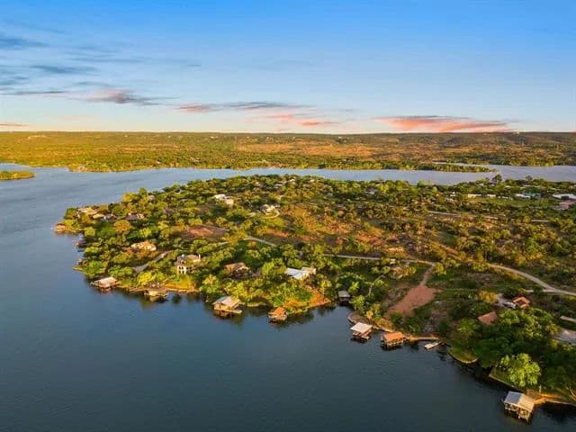 Presenting an unparalleled chance to acquire one of the largest waterfront properties on the coveted Inks Lake, nestled within the exclusive Roadrunner Lane community. This stunning ±1.51-acre combined lot offers approximately ±272 feet of pristine open waterfront footage, providing breathtaking views and a tranquil lake retreat . This property features a durable concrete retaining wall completed in 2020, two covered boat docks equipped with boat slips, and electricity readily available on-site. The additional existing infrastructure includes a previous driveway leading to the ideal home pad site, with granite gravel fill previously brought in. With majority of the groundwork laid, this lot presents a clean canvas for a future luxury estate.