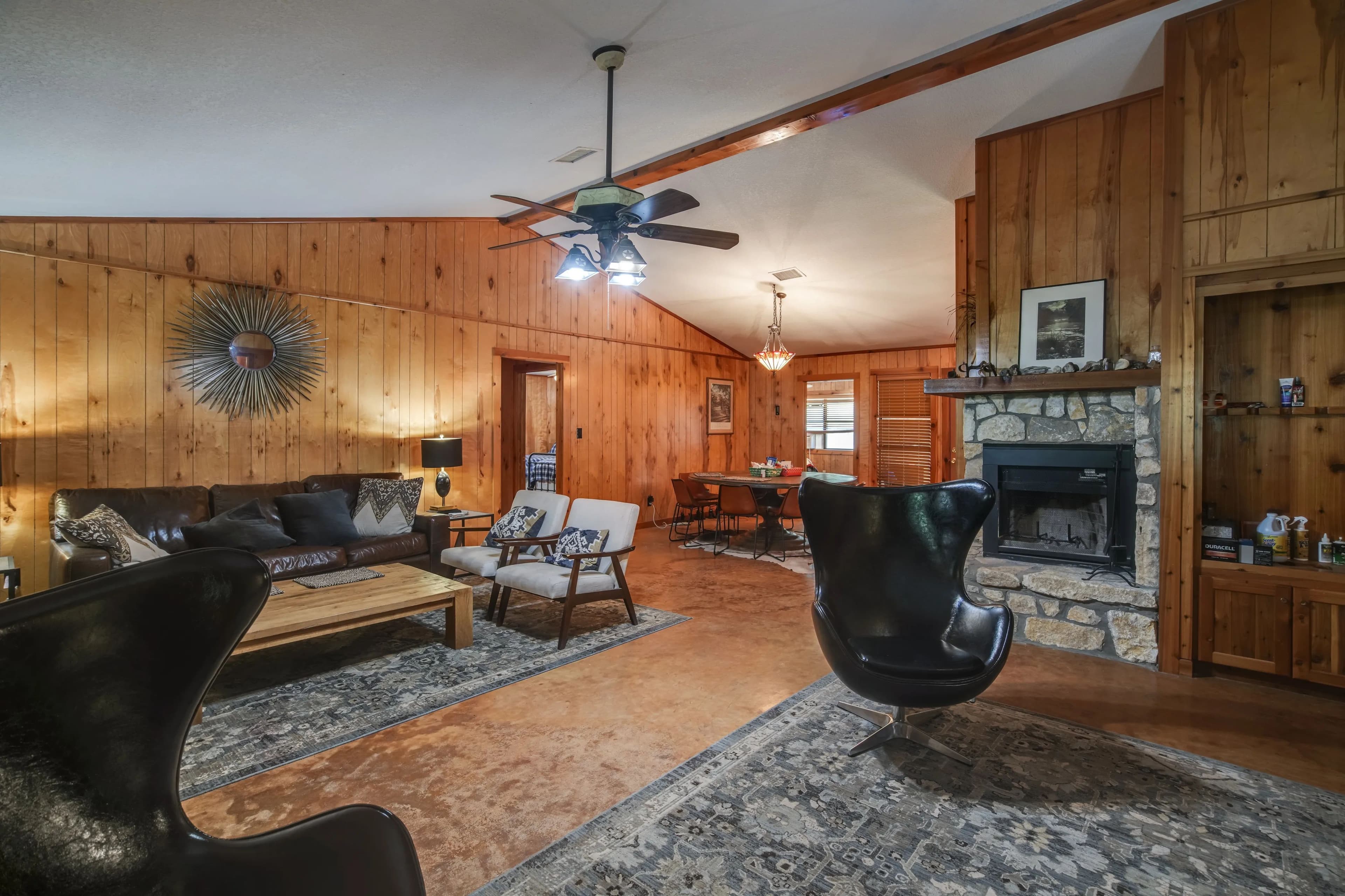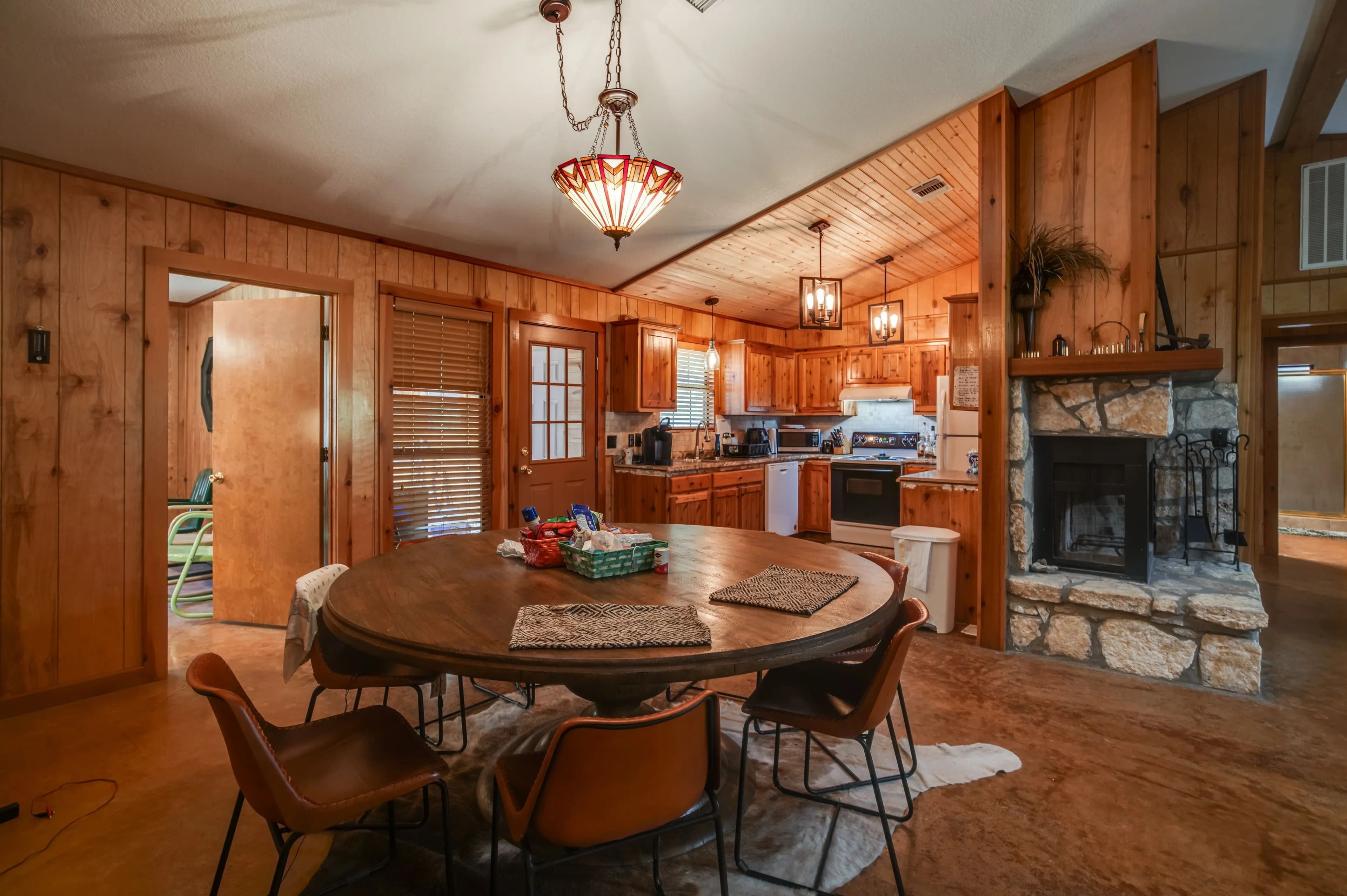 Further up the Little Dry Frio Creek canyon (and also accessible via a paved drive from the easternmost ranch gate) is the quaint 5 bedroom hunter’s cabin with stained concrete floors, a small fireplace and a fantastic gathering porch overlooking a small pond on the creek. This home also has a 2 vehicle carport.