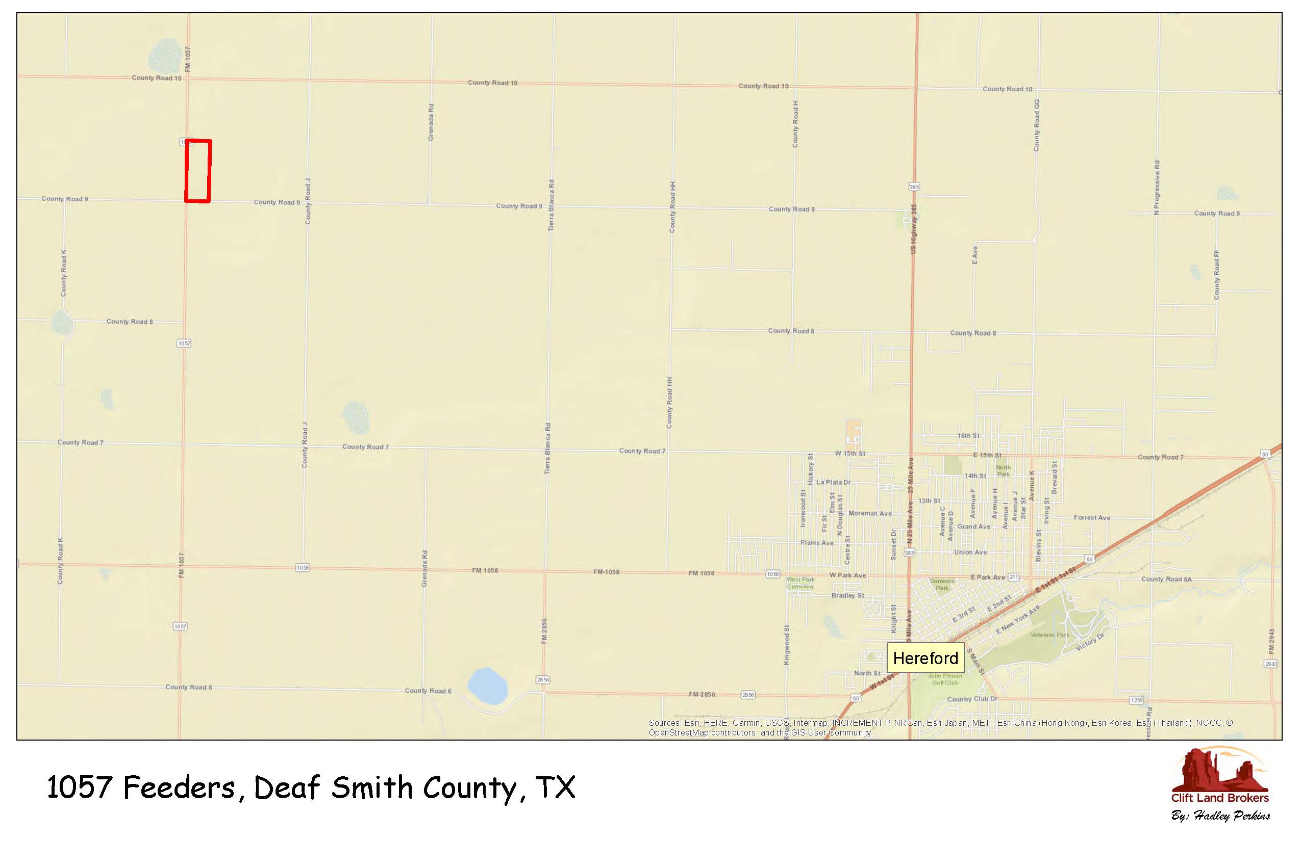 1057 Feeders sits seven miles northwest of Hereford and offers excellent access off of Farm to Market Road 1057. The yard offers 3,570' of linear feed bunk (some of which is brand new) and has a CAFO Permit for 3,000 head. There is a 685 sq.ft. office building in front of a set of ground scales, an indoor processing facility with Silencer Chute, a horse barn, and a brand new four bay commodity storage building. Eight of the thirty cattle pens have shades and one water well feeds a 10,000 gallon water storage tank. Other improvements include a manufactured home and caliche roads. This is a well designed facility that has recently been updated and revived.