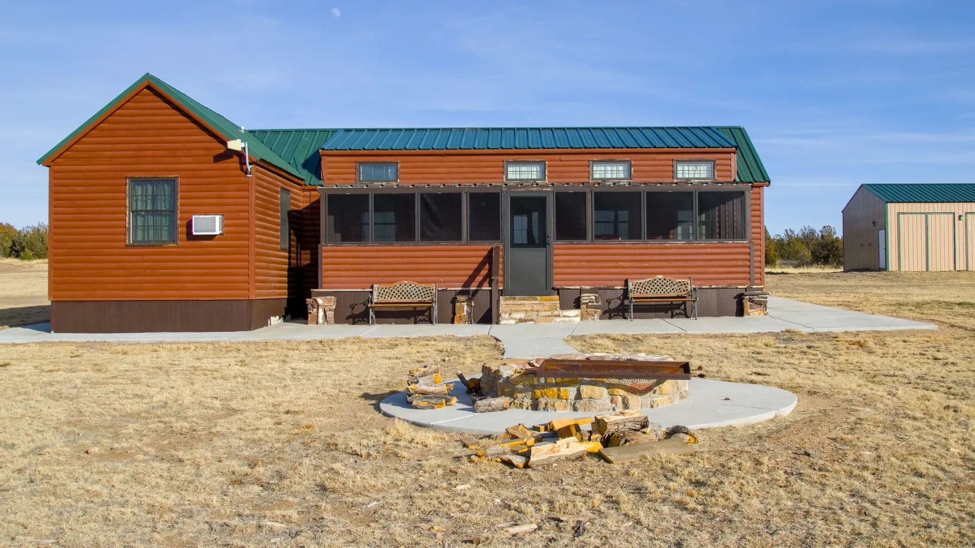 Improvements The fully furnished 2 bedroom, 2 bath cabin has a loft, screened porch and fire pit and is the ideal ranch accommodations (not overbuilt) that is perfect for today’s discriminating hunting ranch investor. There’s power and water wells.