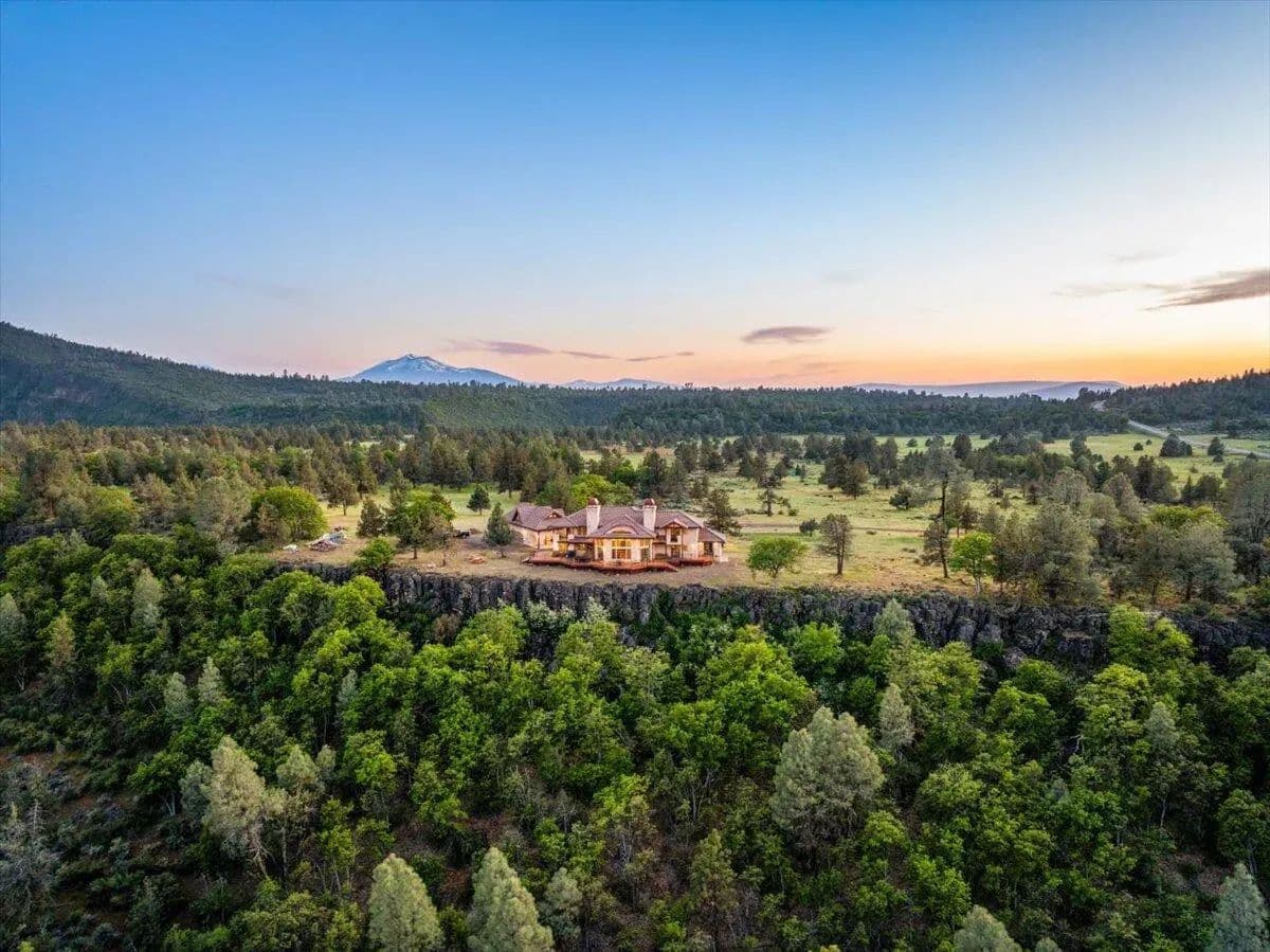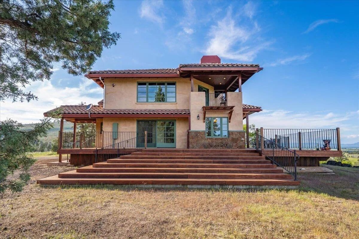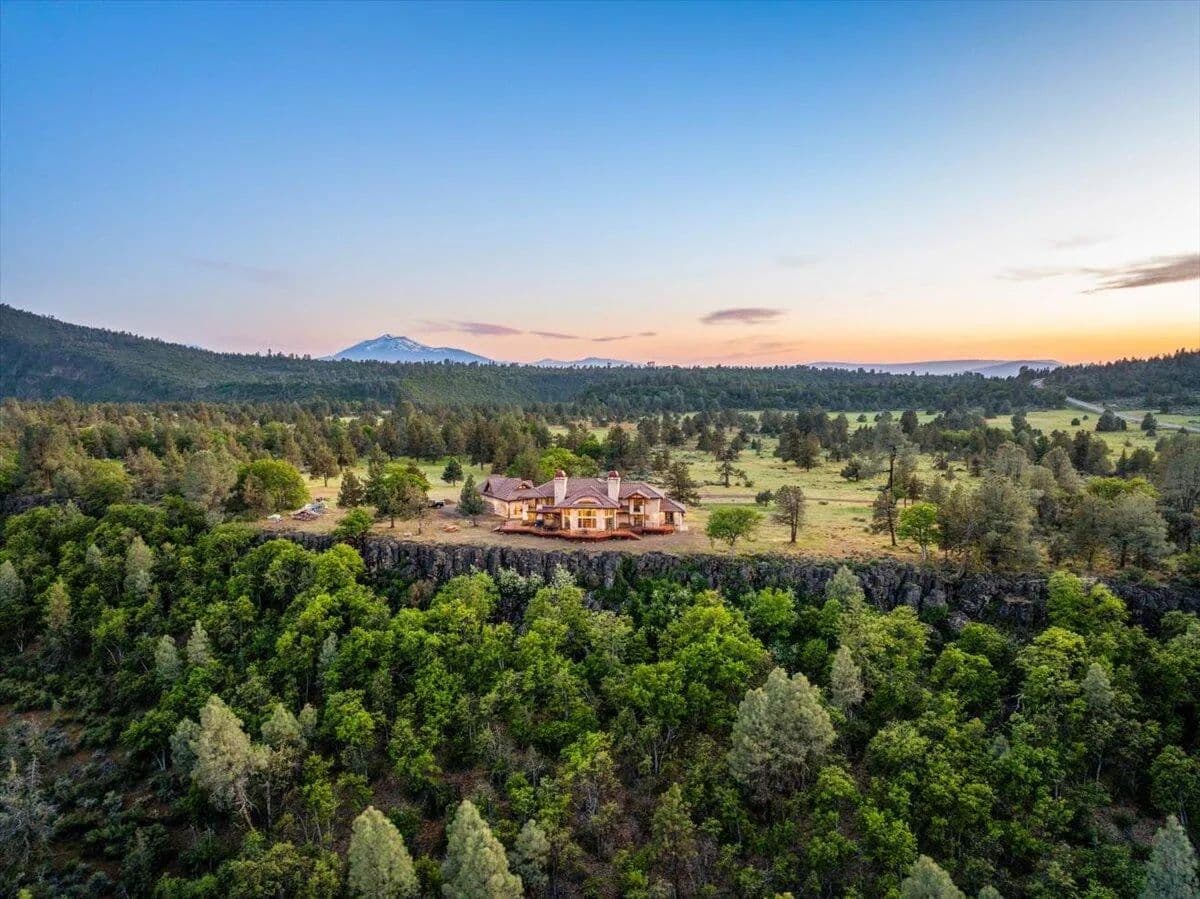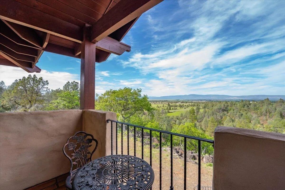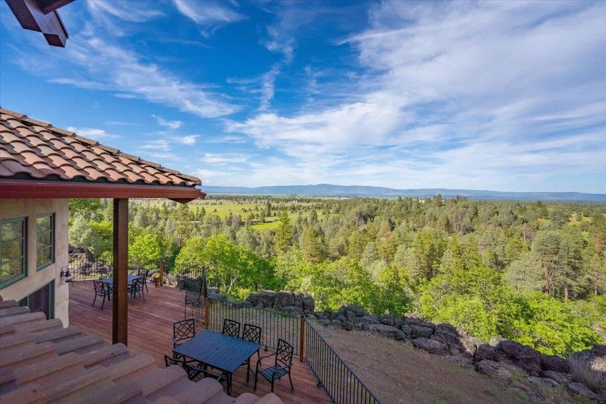 Passing through a custom lava rock gated entry to the impressive improvements. Here is an example of exquisite design and excellent craftmanship achieving the perfect blend, creating a masterpiece. This 5,230-sf, 4 bedroom, 4.5 bath luxury home is a one-of-a-kind Spanish Mission discovery and a delight to see. Encompassing 67 acres of untouched land, the home sits on a majestic lava rock bluff, capturing the sunrise and panoramic views of beautiful Fall River Valley and manicured greens of a nearby golf course. Entering the home and stepping into the great room will take your breath away, not only is the space itself spectacular, but the wall of windows capturing the views puts it on a new level. A custom lava rock fireplace encompasses one wall. The imported handmade Mexican tile floors flow throughout the home. Two glass doors open to the expansive back deck with 2nd custom lava rock fireplace and BBQ area. What a wonderful space to relax and enjoy the view. The great room opens to a dream kitchen, charming breakfast nook and butler pantry. Also, on the main floor you will find two additional bedrooms with ensuite baths. An office/den and large laundry. Ascending to the second level on an open stairway brings you to a balcony overlooking great room. This level features a well-appointed guest suite along with the owner’s suite. The detached 3 car finished garage has a wonderful guest apartment above. Unique lava rock pump house and storage room is the final building on the property, which is mainly level, other than the fantastic rock bluff. This is an amazing opportunity to own this spectacular home and be the first to warm it with family and friends.