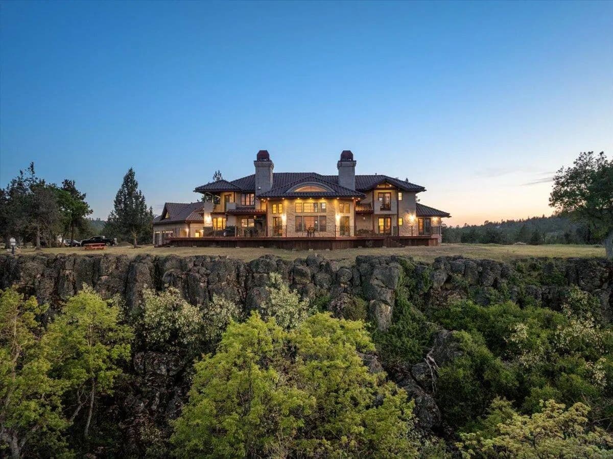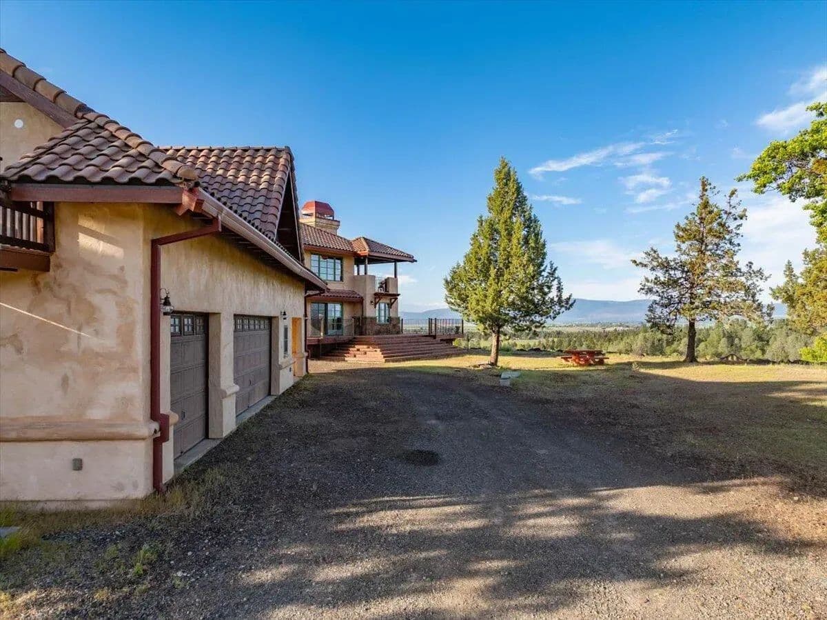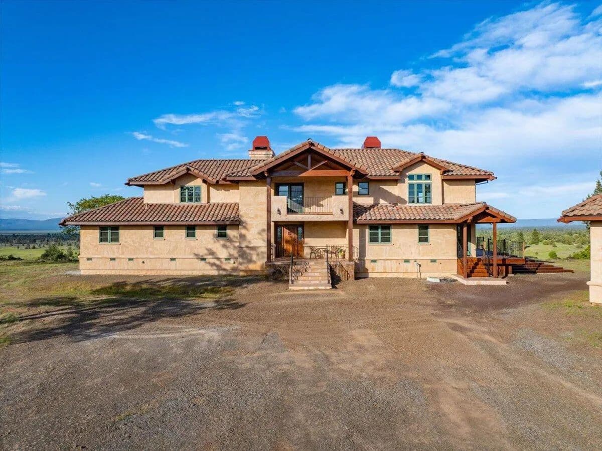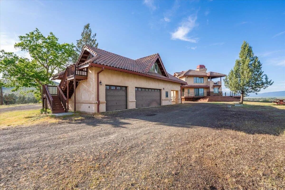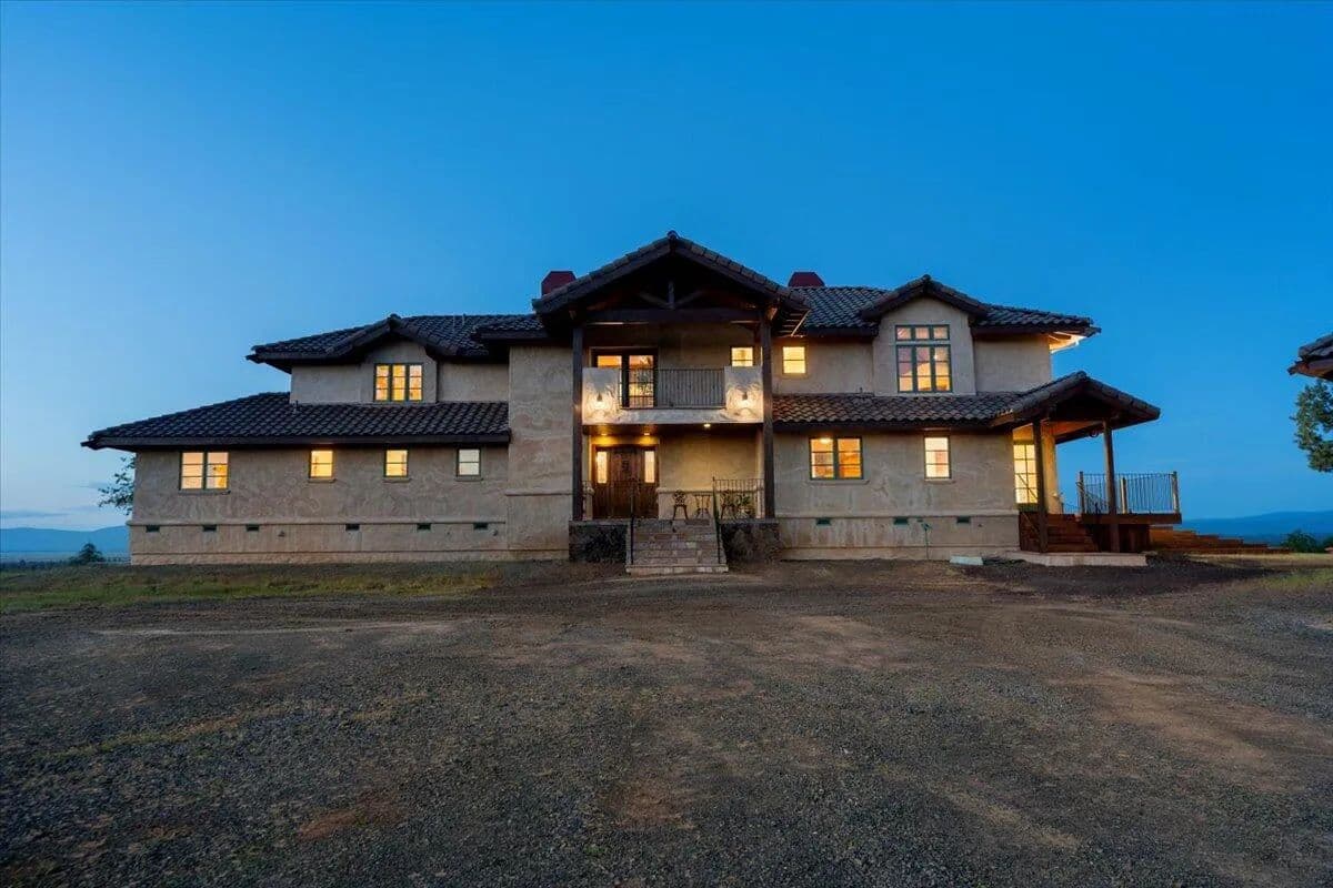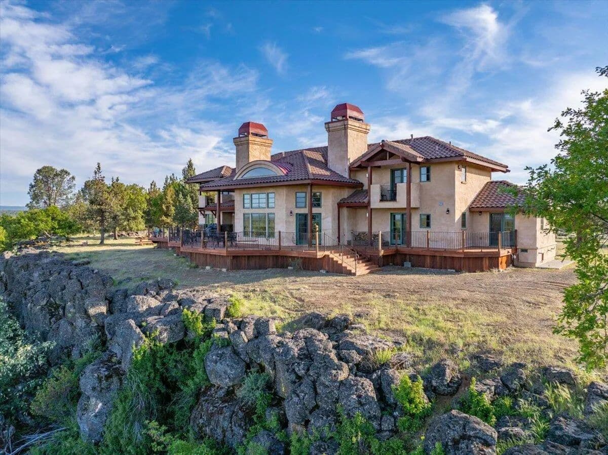 Passing through a custom lava rock gated entry to the impressive improvements. Here is an example of exquisite design and excellent craftmanship achieving the perfect blend, creating a masterpiece. This 5,230-sf, 4 bedroom, 4.5 bath luxury home is a one-of-a-kind Spanish Mission discovery and a delight to see. Encompassing 67 acres of untouched land, the home sits on a majestic lava rock bluff, capturing the sunrise and panoramic views of beautiful Fall River Valley and manicured greens of a nearby golf course. Entering the home and stepping into the great room will take your breath away, not only is the space itself spectacular, but the wall of windows capturing the views puts it on a new level. A custom lava rock fireplace encompasses one wall. The imported handmade Mexican tile floors flow throughout the home. Two glass doors open to the expansive back deck with 2nd custom lava rock fireplace and BBQ area. What a wonderful space to relax and enjoy the view. The great room opens to a dream kitchen, charming breakfast nook and butler pantry. Also, on the main floor you will find two additional bedrooms with ensuite baths. An office/den and large laundry. Ascending to the second level on an open stairway brings you to a balcony overlooking great room. This level features a well-appointed guest suite along with the owner’s suite. The detached 3 car finished garage has a wonderful guest apartment above. Unique lava rock pump house and storage room is the final building on the property, which is mainly level, other than the fantastic rock bluff. This is an amazing opportunity to own this spectacular home and be the first to warm it with family and friends.