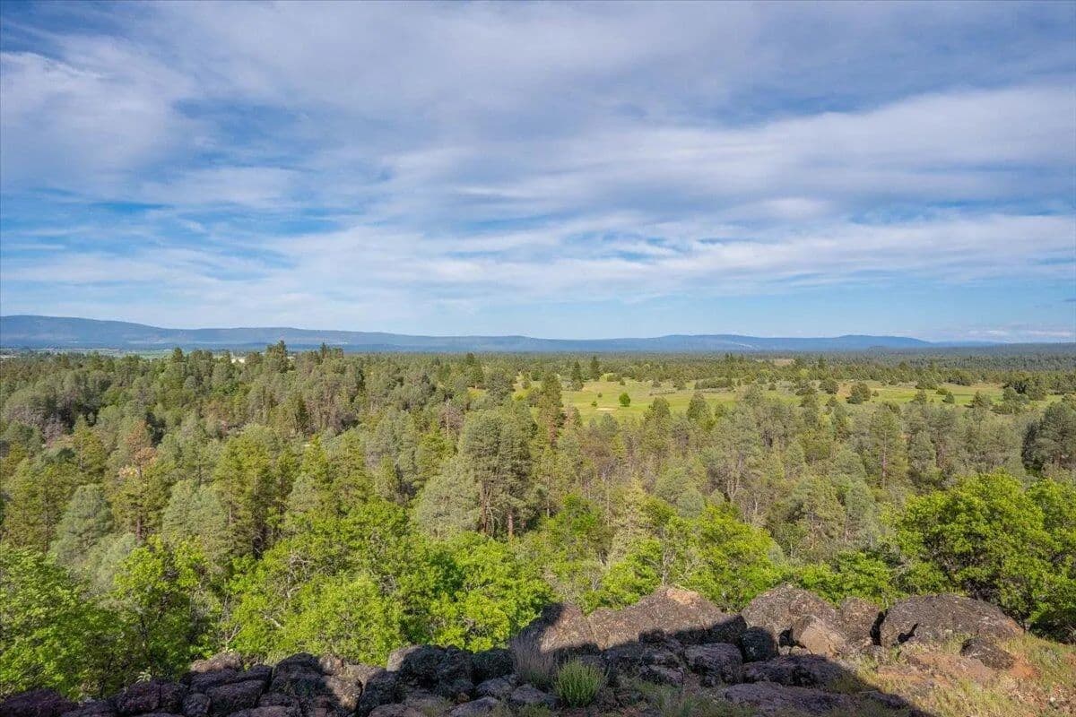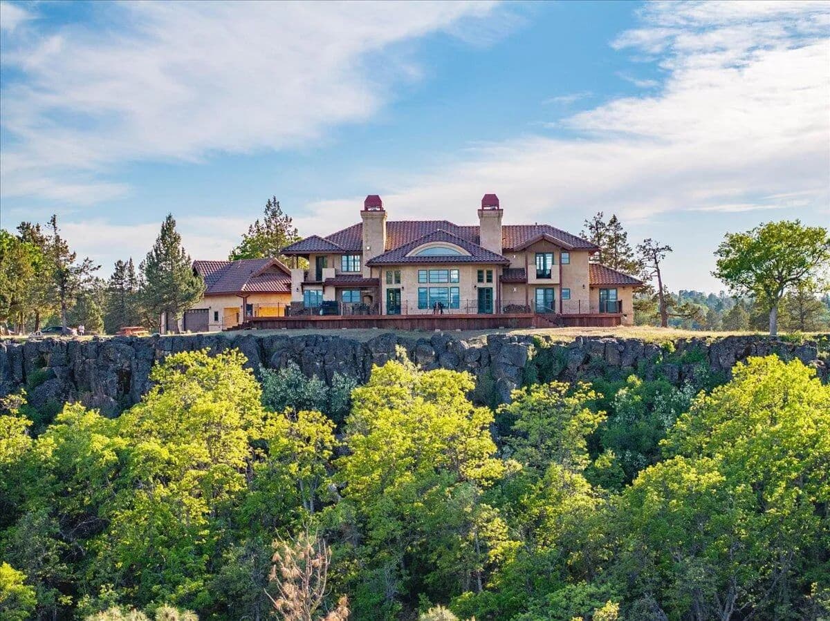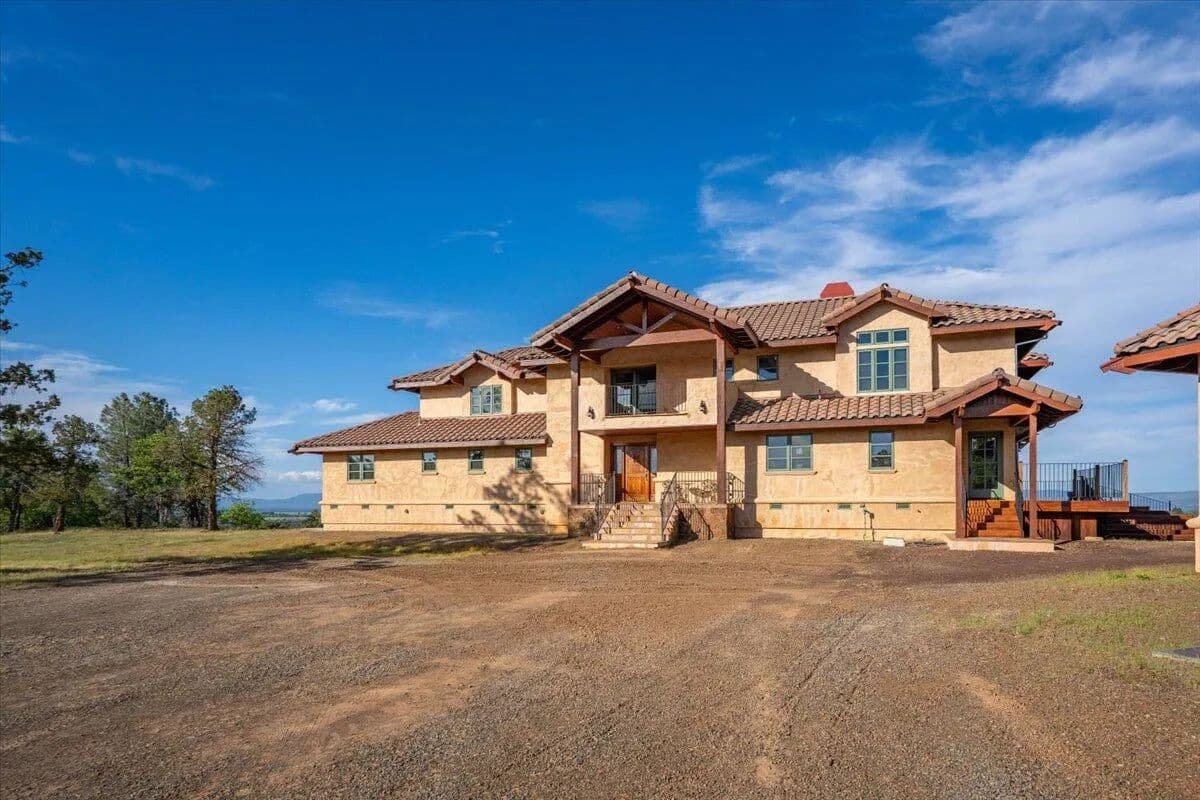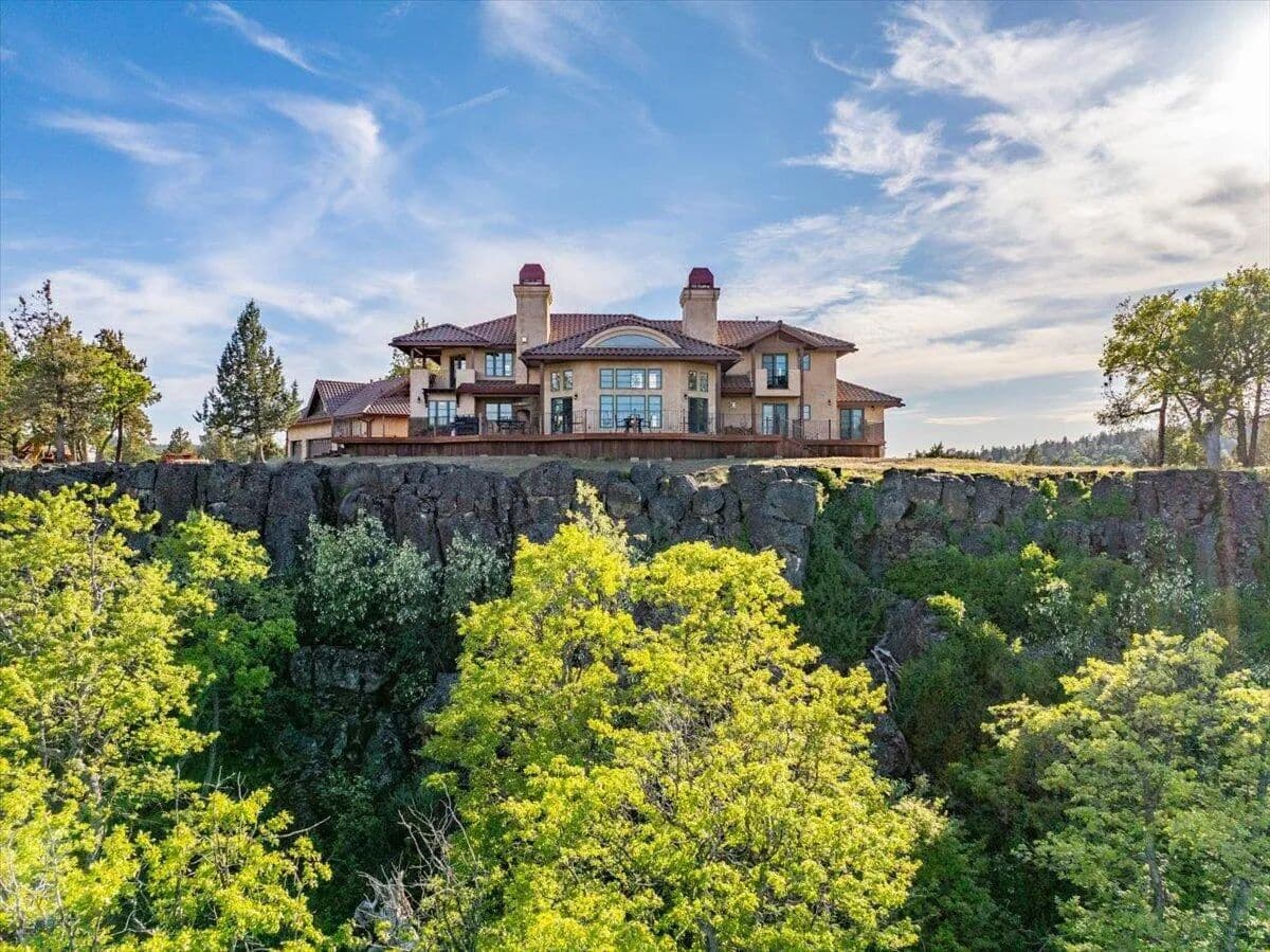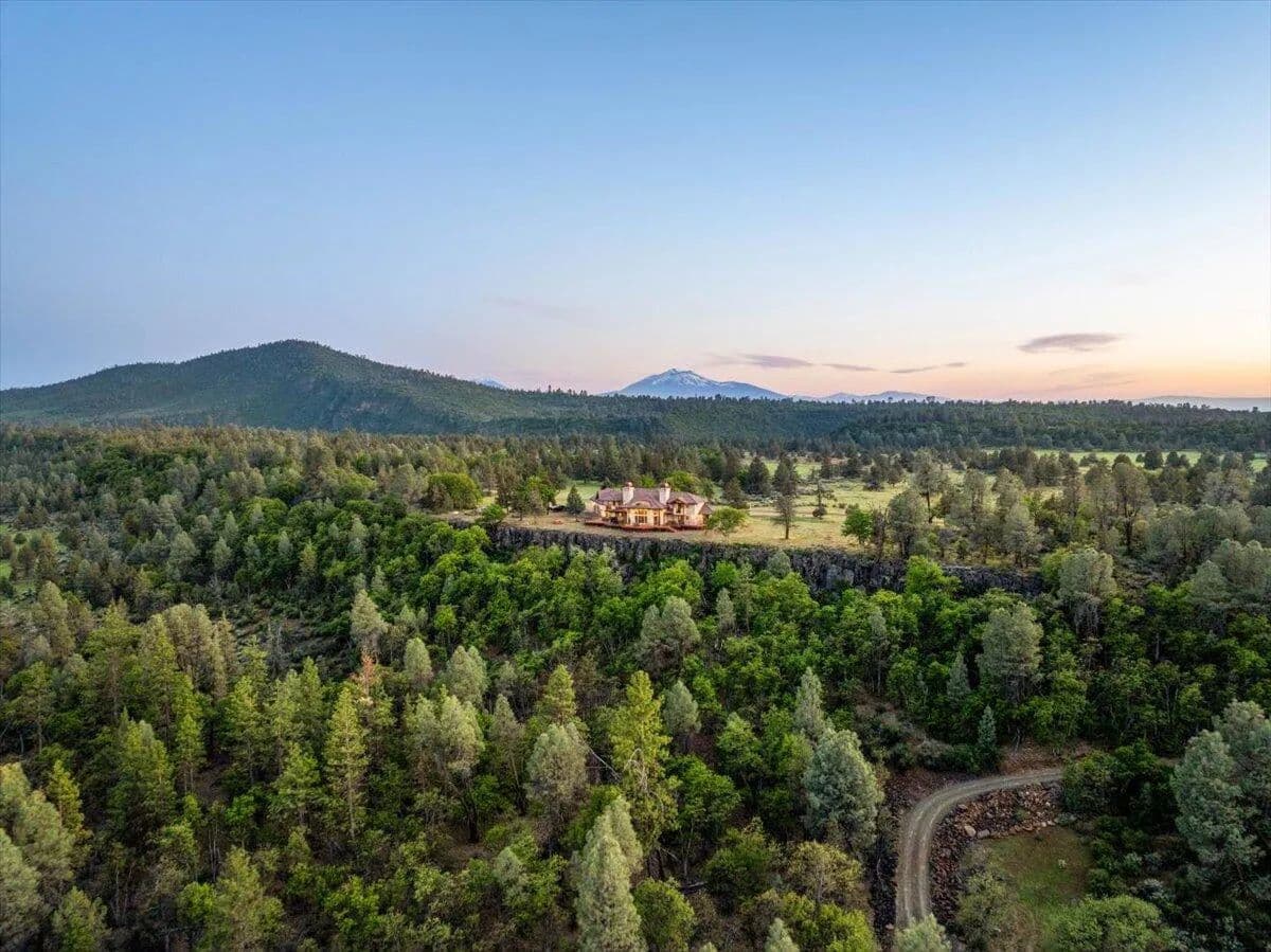 Passing through a custom lava rock gated entry to the impressive improvements. Here is an example of exquisite design and excellent craftmanship achieving the perfect blend, creating a masterpiece. This 5,230-sf, 4 bedroom, 4.5 bath luxury home is a one-of-a-kind Spanish Mission discovery and a delight to see. Encompassing 67 acres of untouched land, the home sits on a majestic lava rock bluff, capturing the sunrise and panoramic views of beautiful Fall River Valley and manicured greens of a nearby golf course. Entering the home and stepping into the great room will take your breath away, not only is the space itself spectacular, but the wall of windows capturing the views puts it on a new level. A custom lava rock fireplace encompasses one wall. The imported handmade Mexican tile floors flow throughout the home. Two glass doors open to the expansive back deck with 2nd custom lava rock fireplace and BBQ area. What a wonderful space to relax and enjoy the view. The great room opens to a dream kitchen, charming breakfast nook and butler pantry. Also, on the main floor you will find two additional bedrooms with ensuite baths. An office/den and large laundry. Ascending to the second level on an open stairway brings you to a balcony overlooking great room. This level features a well-appointed guest suite along with the owner’s suite. The detached 3 car finished garage has a wonderful guest apartment above. Unique lava rock pump house and storage room is the final building on the property, which is mainly level, other than the fantastic rock bluff. This is an amazing opportunity to own this spectacular home and be the first to warm it with family and friends.