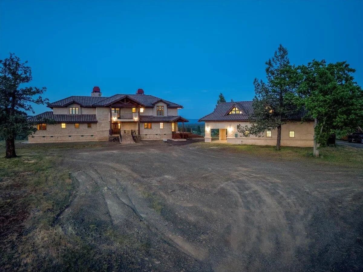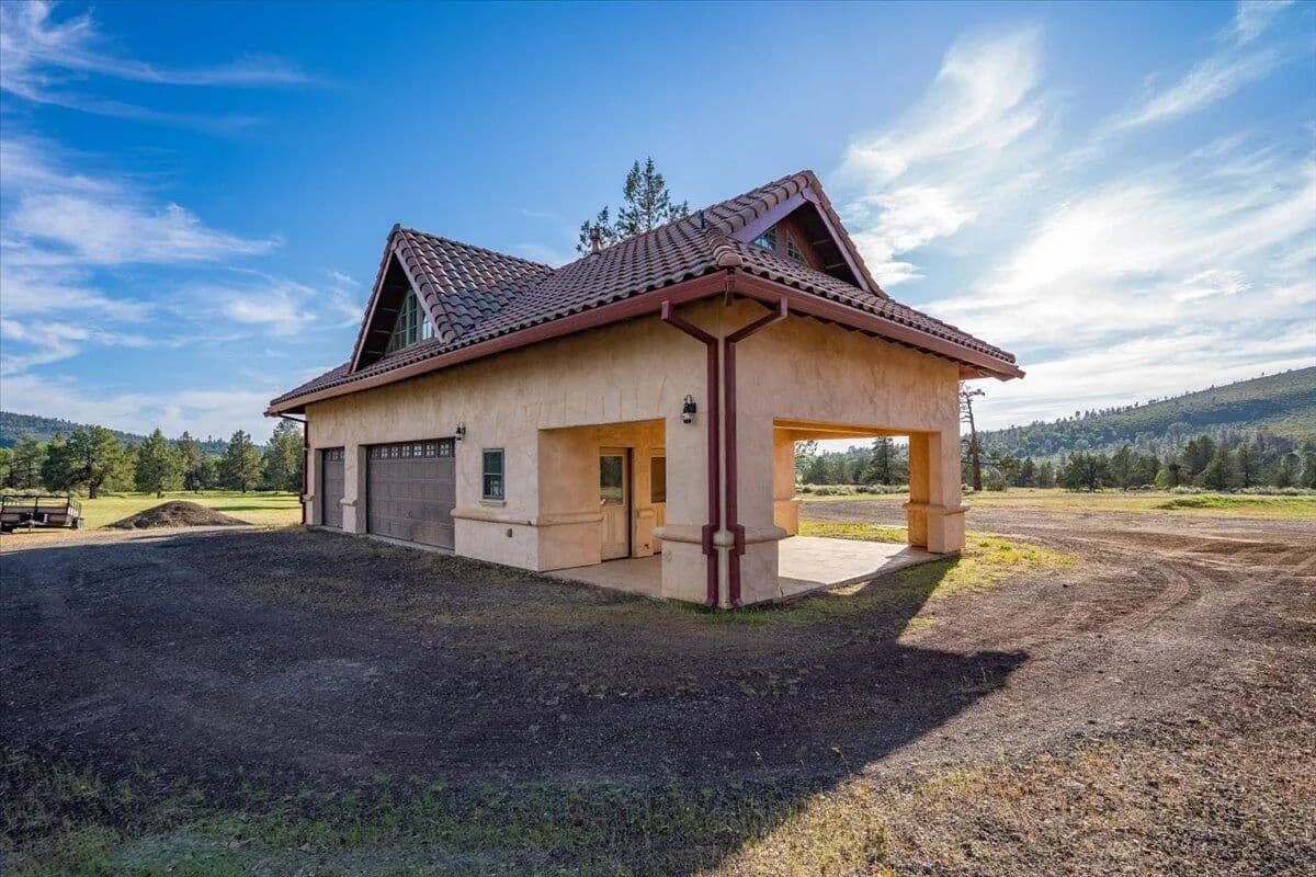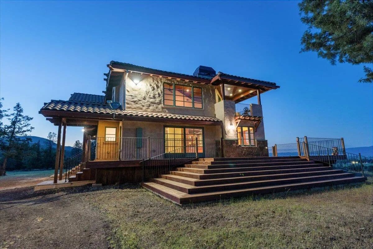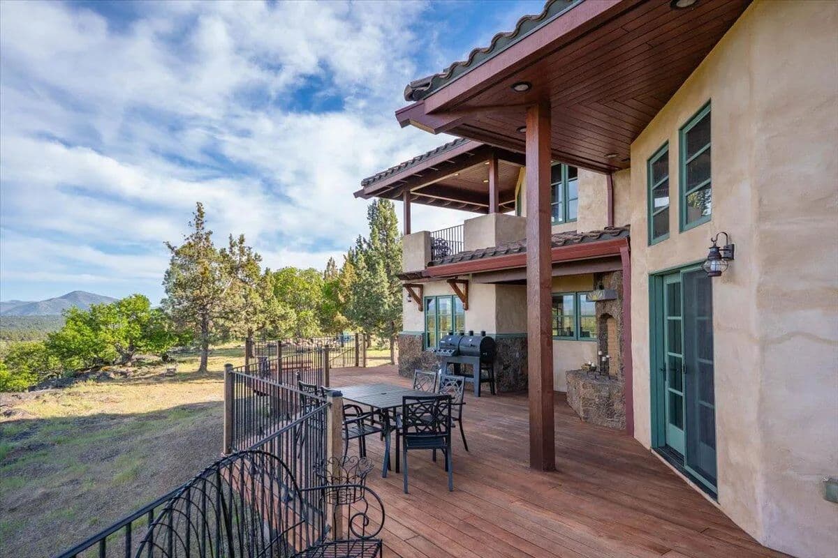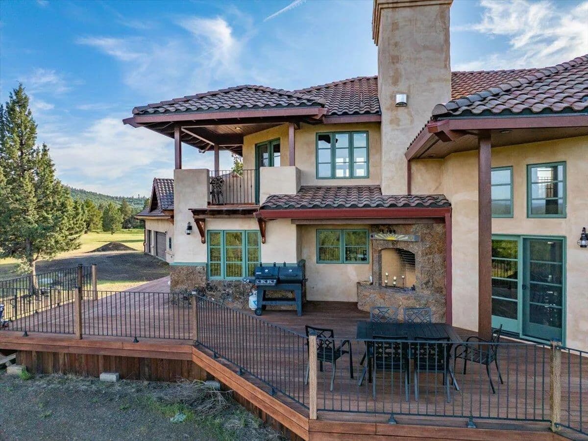 Passing through a custom lava rock gated entry to the impressive improvements. Here is an example of exquisite design and excellent craftmanship achieving the perfect blend, creating a masterpiece. This 5,230-sf, 4 bedroom, 4.5 bath luxury home is a one-of-a-kind Spanish Mission discovery and a delight to see. Encompassing 67 acres of untouched land, the home sits on a majestic lava rock bluff, capturing the sunrise and panoramic views of beautiful Fall River Valley and manicured greens of a nearby golf course. Entering the home and stepping into the great room will take your breath away, not only is the space itself spectacular, but the wall of windows capturing the views puts it on a new level. A custom lava rock fireplace encompasses one wall. The imported handmade Mexican tile floors flow throughout the home. Two glass doors open to the expansive back deck with 2nd custom lava rock fireplace and BBQ area. What a wonderful space to relax and enjoy the view. The great room opens to a dream kitchen, charming breakfast nook and butler pantry. Also, on the main floor you will find two additional bedrooms with ensuite baths. An office/den and large laundry. Ascending to the second level on an open stairway brings you to a balcony overlooking great room. This level features a well-appointed guest suite along with the owner’s suite. The detached 3 car finished garage has a wonderful guest apartment above. Unique lava rock pump house and storage room is the final building on the property, which is mainly level, other than the fantastic rock bluff. This is an amazing opportunity to own this spectacular home and be the first to warm it with family and friends.