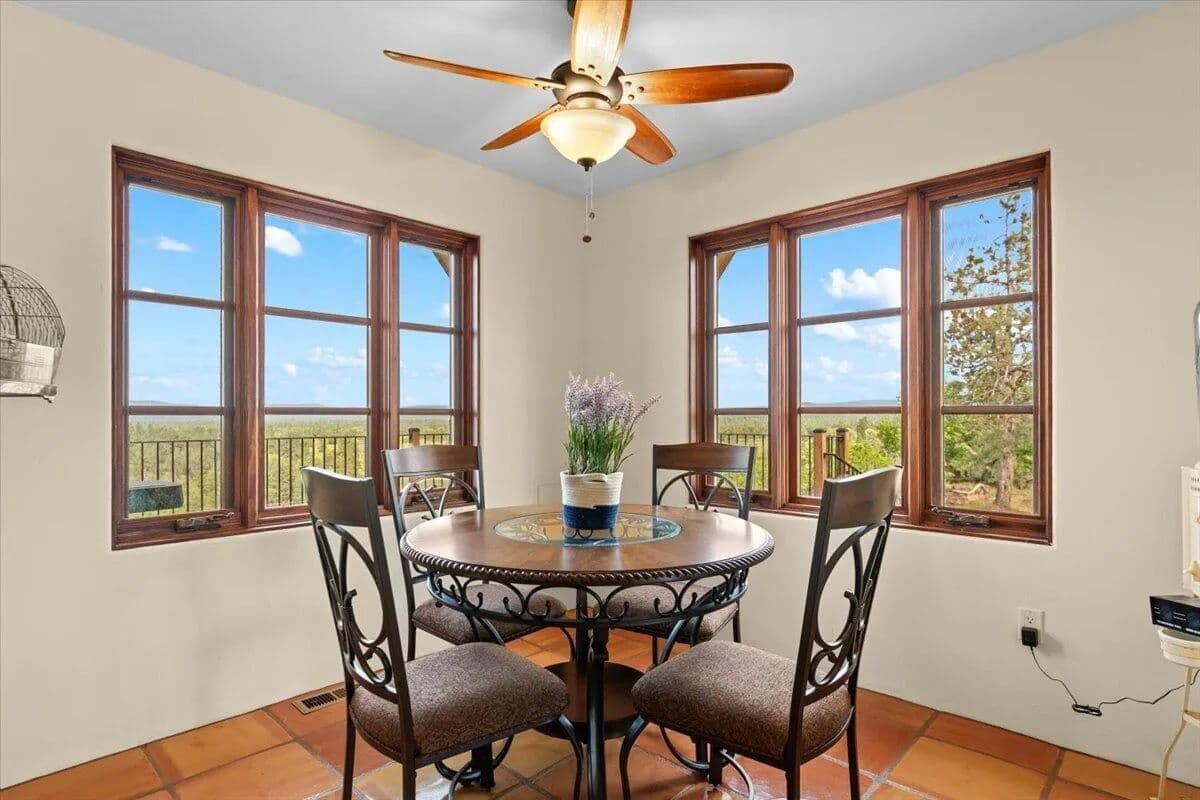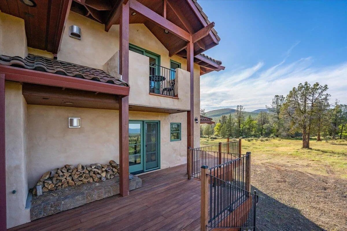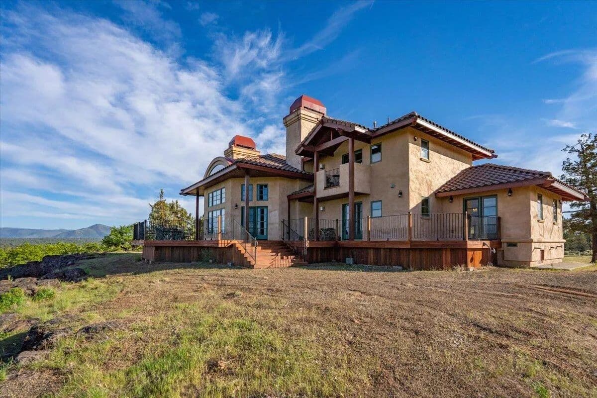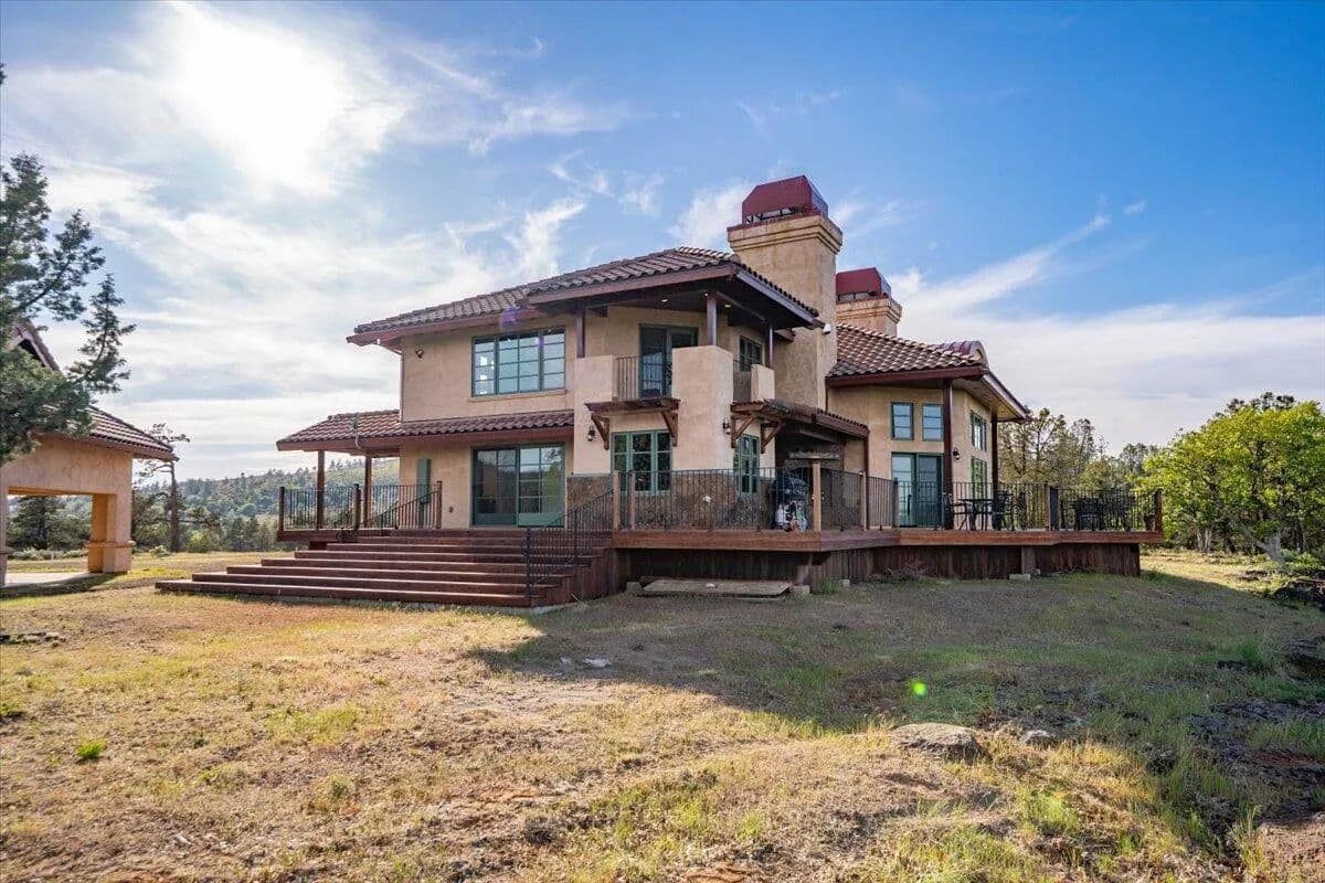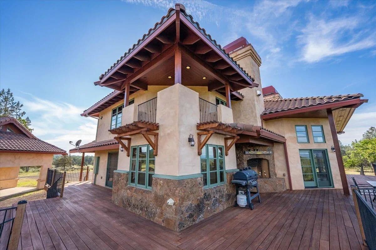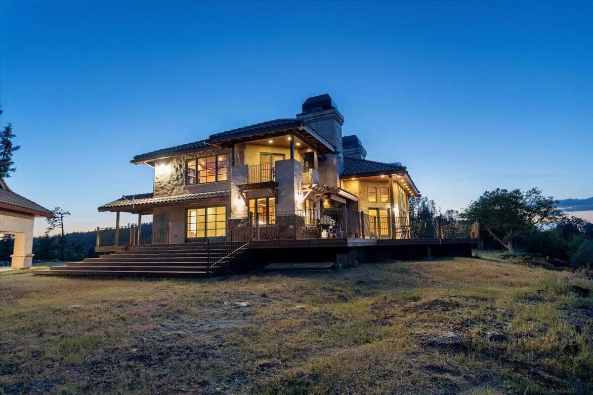 Passing through a custom lava rock gated entry to the impressive improvements. Here is an example of exquisite design and excellent craftmanship achieving the perfect blend, creating a masterpiece. This 5,230-sf, 4 bedroom, 4.5 bath luxury home is a one-of-a-kind Spanish Mission discovery and a delight to see. Encompassing 67 acres of untouched land, the home sits on a majestic lava rock bluff, capturing the sunrise and panoramic views of beautiful Fall River Valley and manicured greens of a nearby golf course. Entering the home and stepping into the great room will take your breath away, not only is the space itself spectacular, but the wall of windows capturing the views puts it on a new level. A custom lava rock fireplace encompasses one wall. The imported handmade Mexican tile floors flow throughout the home. Two glass doors open to the expansive back deck with 2nd custom lava rock fireplace and BBQ area. What a wonderful space to relax and enjoy the view. The great room opens to a dream kitchen, charming breakfast nook and butler pantry. Also, on the main floor you will find two additional bedrooms with ensuite baths. An office/den and large laundry. Ascending to the second level on an open stairway brings you to a balcony overlooking great room. This level features a well-appointed guest suite along with the owner’s suite. The detached 3 car finished garage has a wonderful guest apartment above. Unique lava rock pump house and storage room is the final building on the property, which is mainly level, other than the fantastic rock bluff. This is an amazing opportunity to own this spectacular home and be the first to warm it with family and friends.