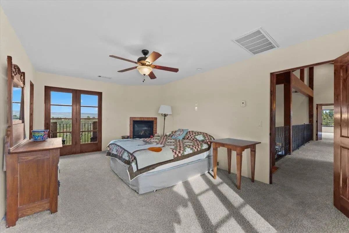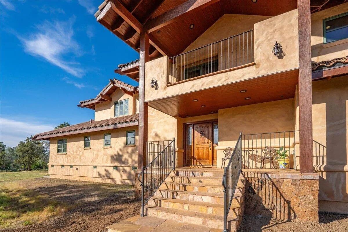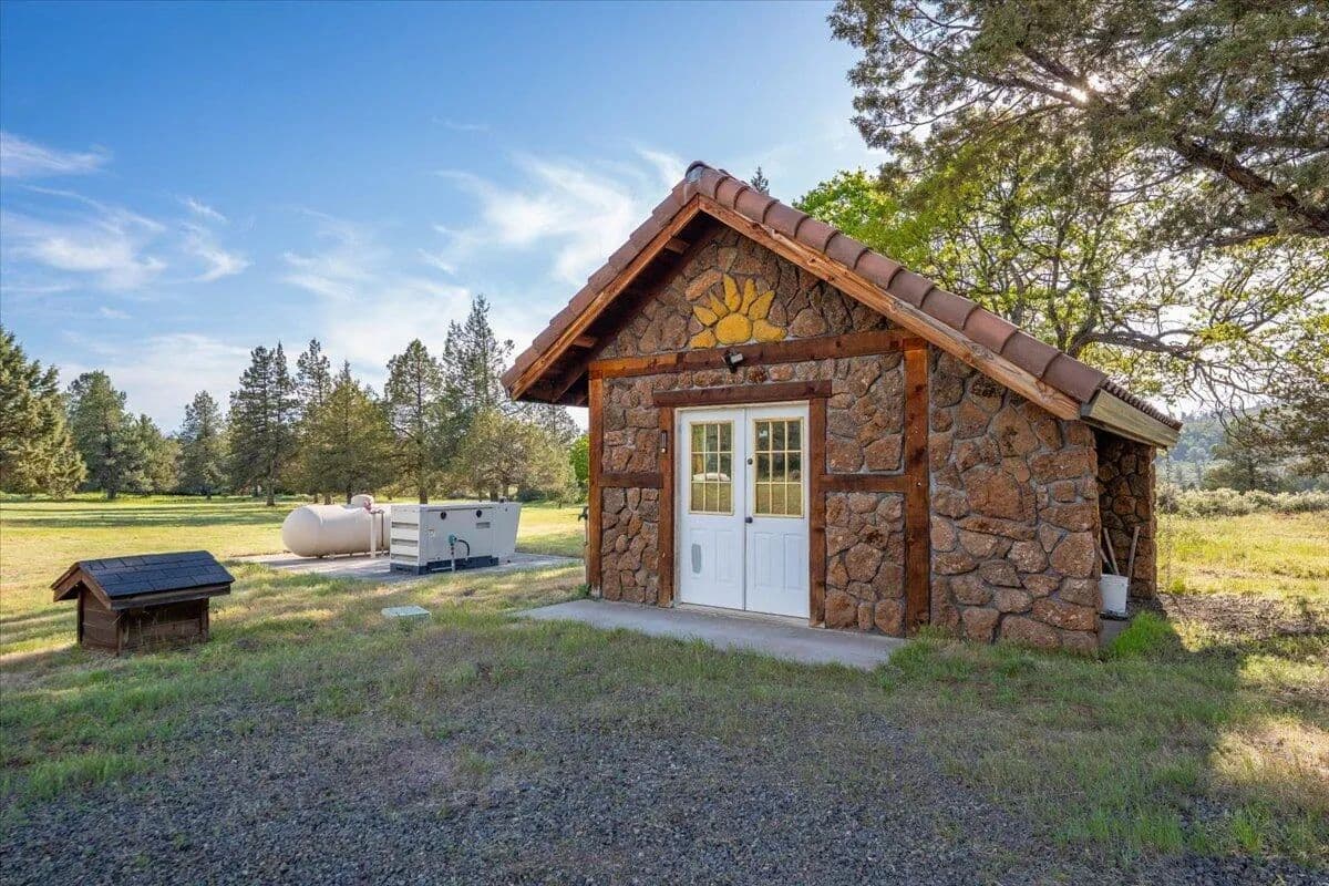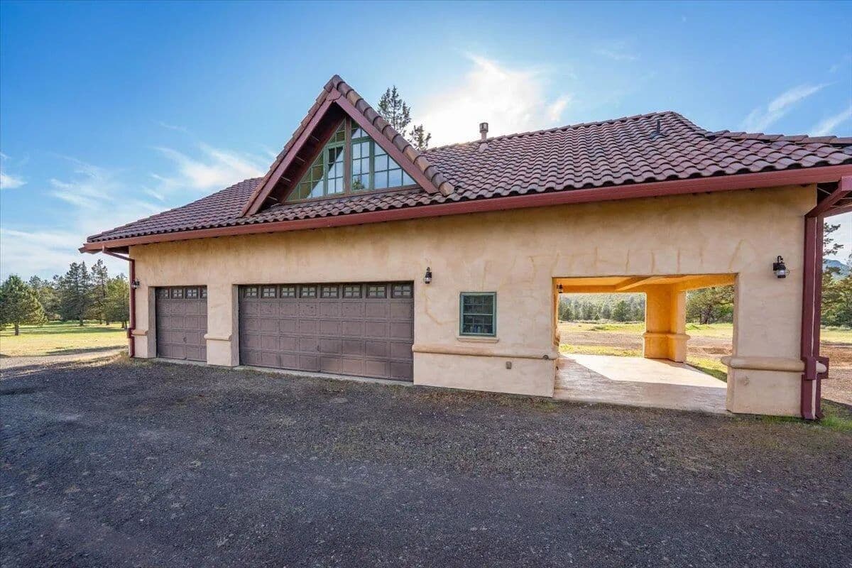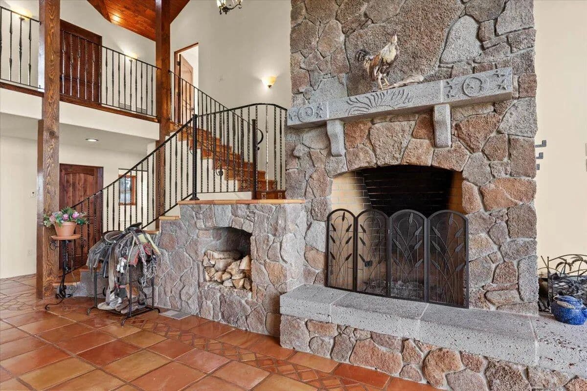 Passing through a custom lava rock gated entry to the impressive improvements. Here is an example of exquisite design and excellent craftmanship achieving the perfect blend, creating a masterpiece. This 5,230-sf, 4 bedroom, 4.5 bath luxury home is a one-of-a-kind Spanish Mission discovery and a delight to see. Encompassing 67 acres of untouched land, the home sits on a majestic lava rock bluff, capturing the sunrise and panoramic views of beautiful Fall River Valley and manicured greens of a nearby golf course. Entering the home and stepping into the great room will take your breath away, not only is the space itself spectacular, but the wall of windows capturing the views puts it on a new level. A custom lava rock fireplace encompasses one wall. The imported handmade Mexican tile floors flow throughout the home. Two glass doors open to the expansive back deck with 2nd custom lava rock fireplace and BBQ area. What a wonderful space to relax and enjoy the view. The great room opens to a dream kitchen, charming breakfast nook and butler pantry. Also, on the main floor you will find two additional bedrooms with ensuite baths. An office/den and large laundry. Ascending to the second level on an open stairway brings you to a balcony overlooking great room. This level features a well-appointed guest suite along with the owner’s suite. The detached 3 car finished garage has a wonderful guest apartment above. Unique lava rock pump house and storage room is the final building on the property, which is mainly level, other than the fantastic rock bluff. This is an amazing opportunity to own this spectacular home and be the first to warm it with family and friends.
