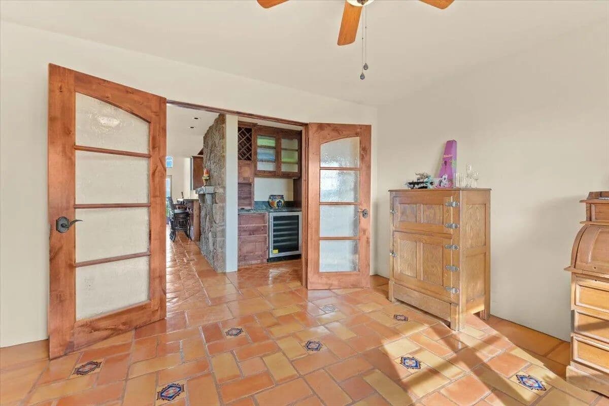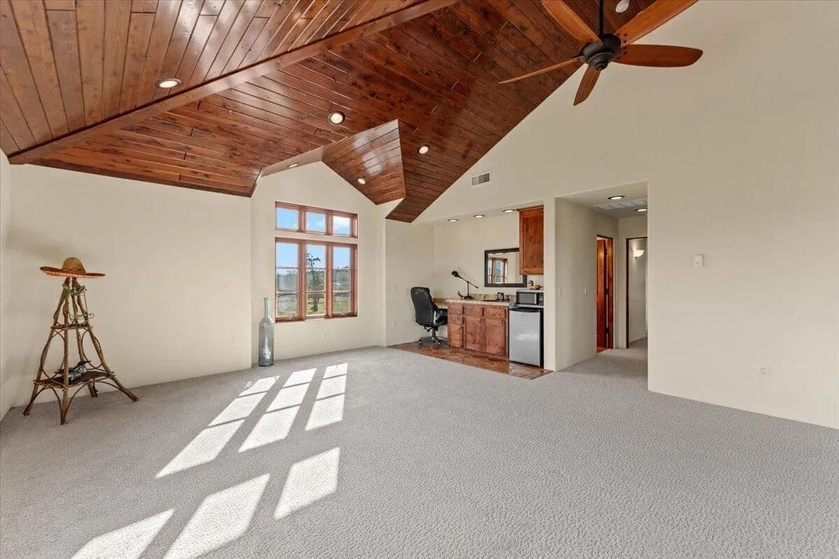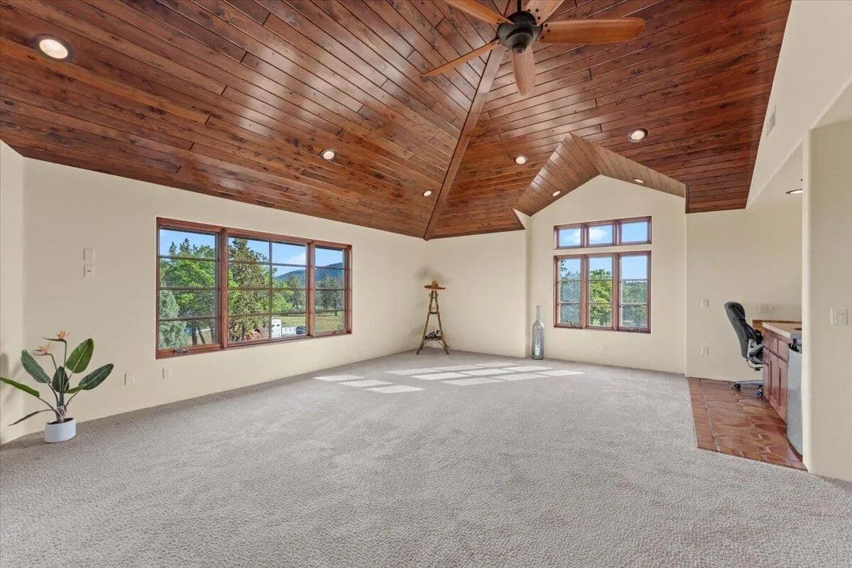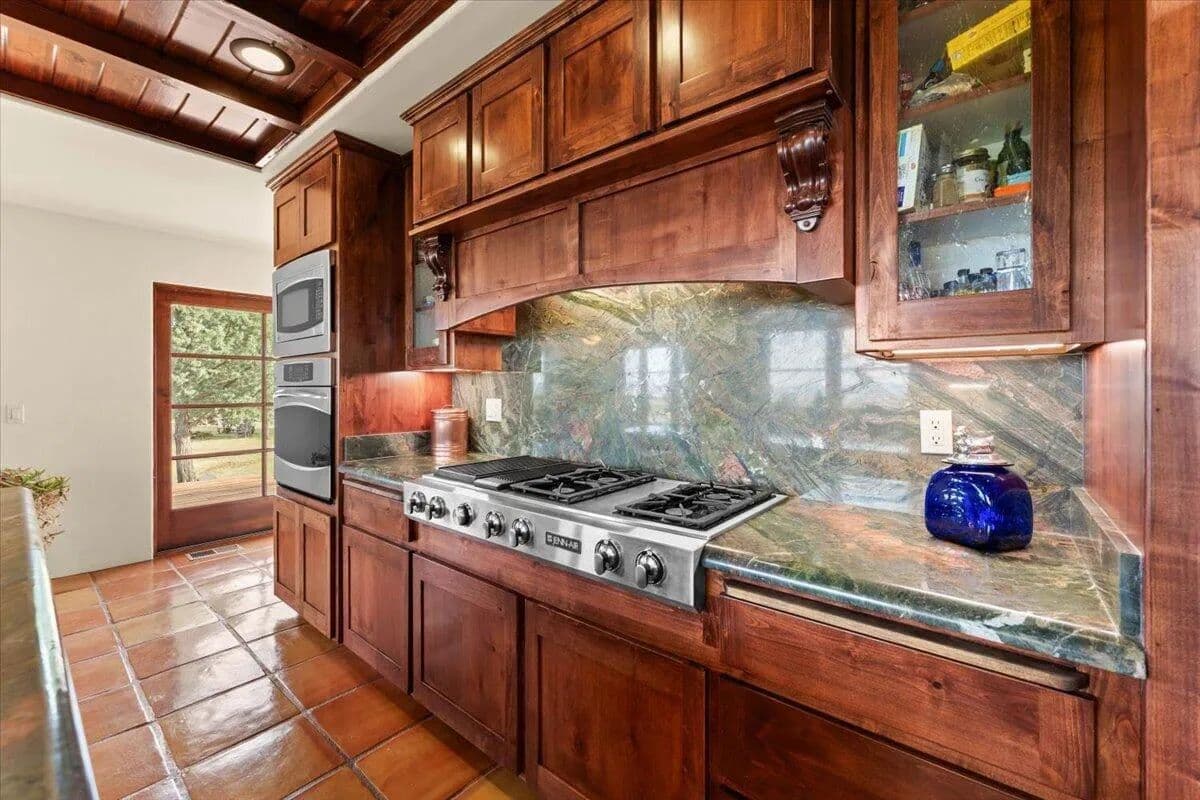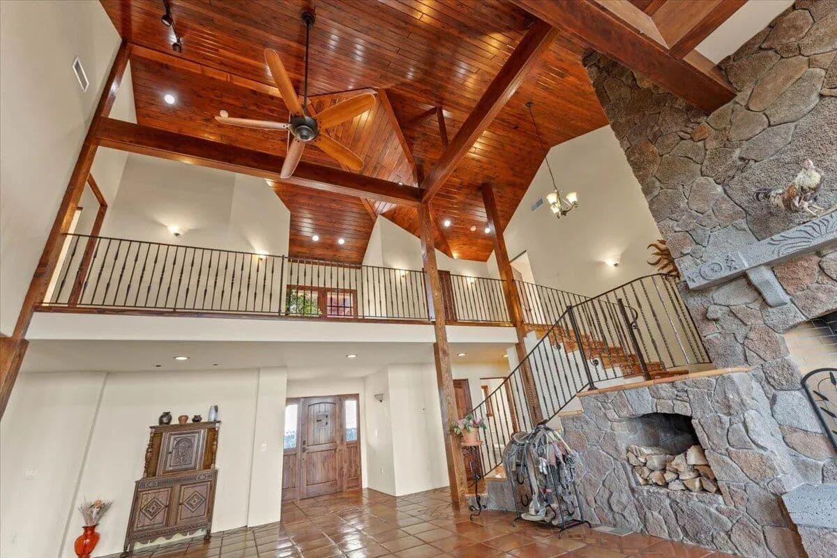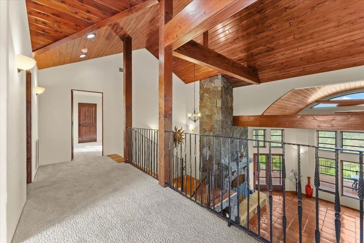 Passing through a custom lava rock gated entry to the impressive improvements. Here is an example of exquisite design and excellent craftmanship achieving the perfect blend, creating a masterpiece. This 5,230-sf, 4 bedroom, 4.5 bath luxury home is a one-of-a-kind Spanish Mission discovery and a delight to see. Encompassing 67 acres of untouched land, the home sits on a majestic lava rock bluff, capturing the sunrise and panoramic views of beautiful Fall River Valley and manicured greens of a nearby golf course. Entering the home and stepping into the great room will take your breath away, not only is the space itself spectacular, but the wall of windows capturing the views puts it on a new level. A custom lava rock fireplace encompasses one wall. The imported handmade Mexican tile floors flow throughout the home. Two glass doors open to the expansive back deck with 2nd custom lava rock fireplace and BBQ area. What a wonderful space to relax and enjoy the view. The great room opens to a dream kitchen, charming breakfast nook and butler pantry. Also, on the main floor you will find two additional bedrooms with ensuite baths. An office/den and large laundry. Ascending to the second level on an open stairway brings you to a balcony overlooking great room. This level features a well-appointed guest suite along with the owner’s suite. The detached 3 car finished garage has a wonderful guest apartment above. Unique lava rock pump house and storage room is the final building on the property, which is mainly level, other than the fantastic rock bluff. This is an amazing opportunity to own this spectacular home and be the first to warm it with family and friends.