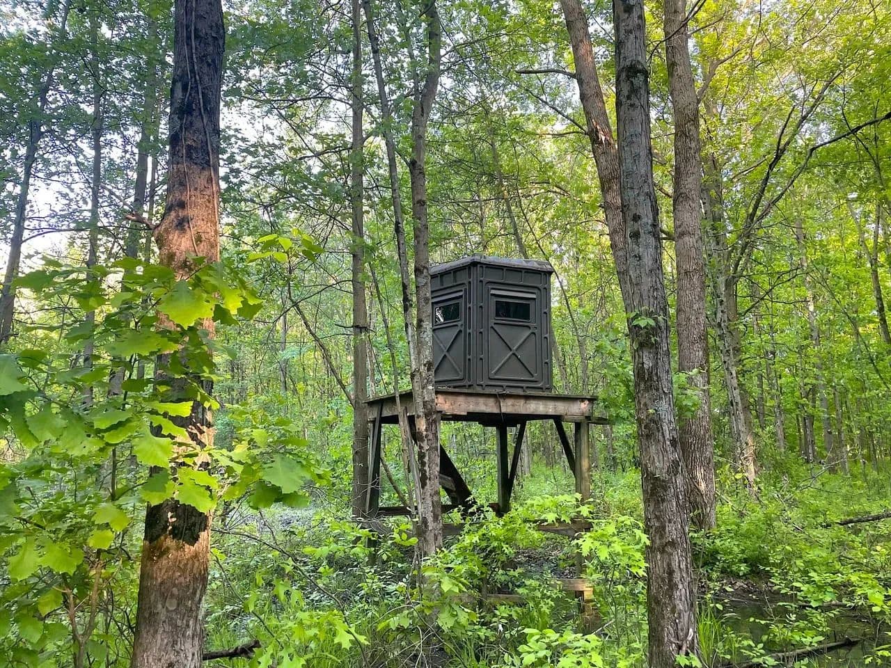 Hunting Setups: Multiple elevated blinds and ladder stands in place