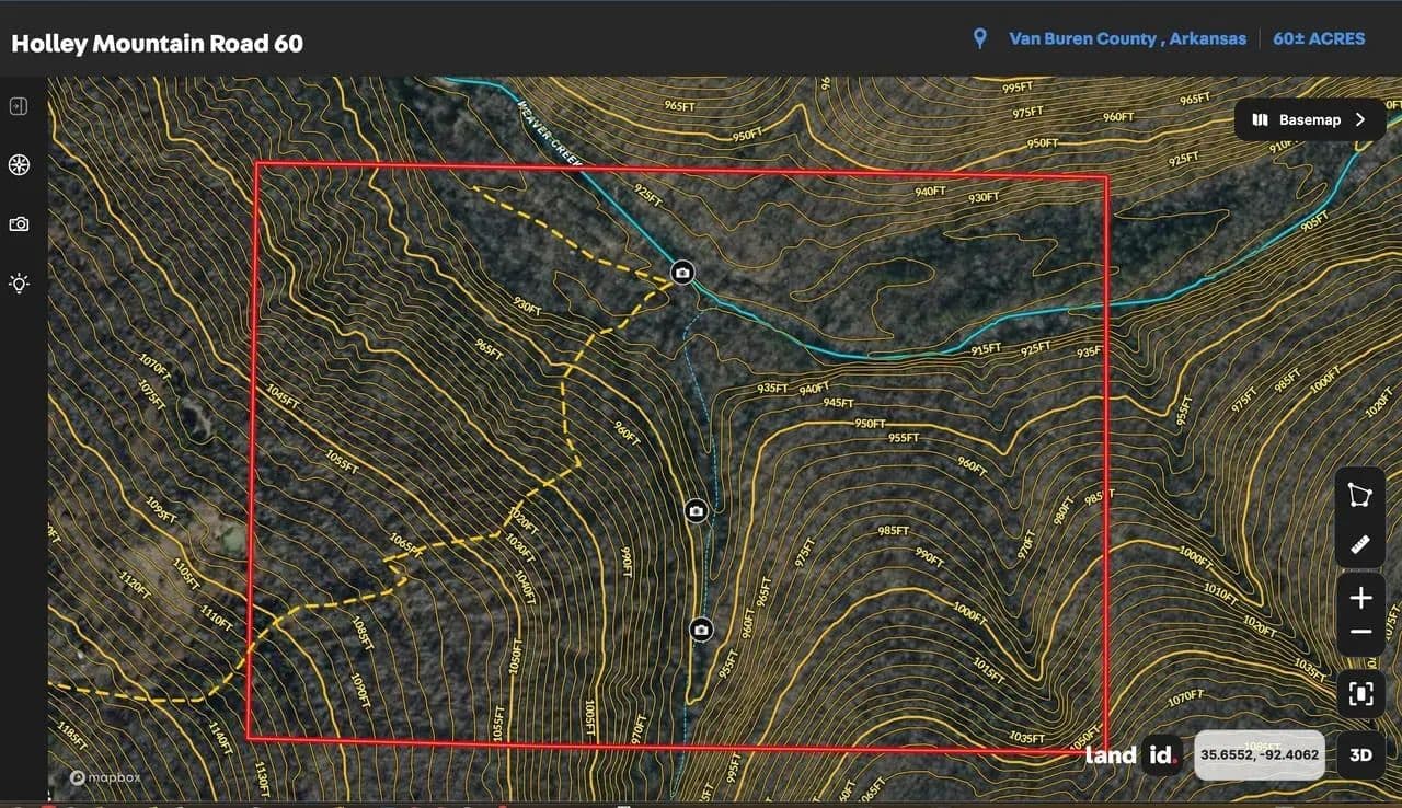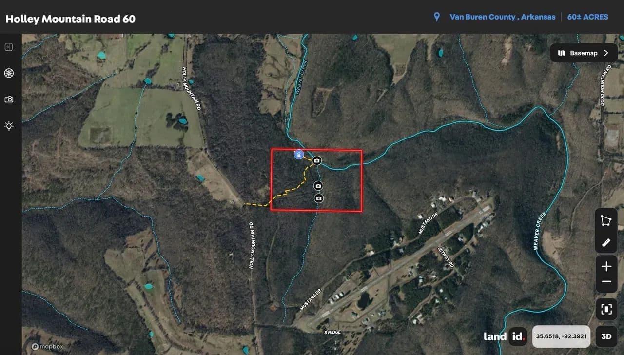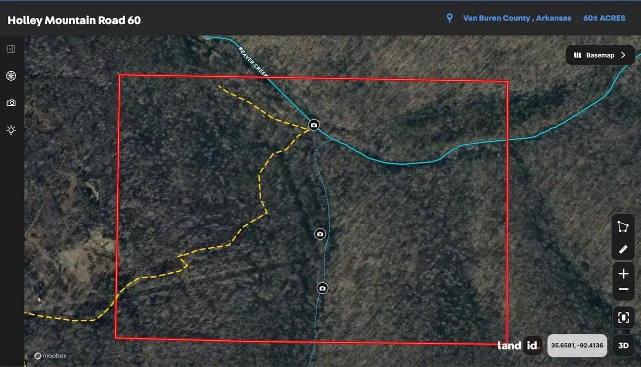 Discover the natural beauty and recreational potential of this 60-acre timber tract located just 5.3 miles northeast of Clinton, Arkansas. Comprised of two scenic hardwood ridges and split by a wet-weather creek that feeds directly into Weaver Creek, this property offers a rare combination of seclusion, water access, and wildlife habitat.