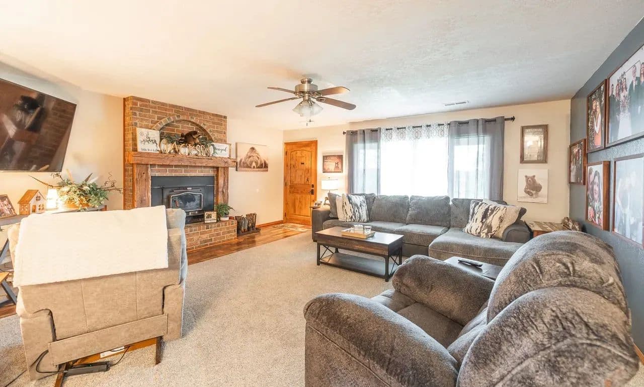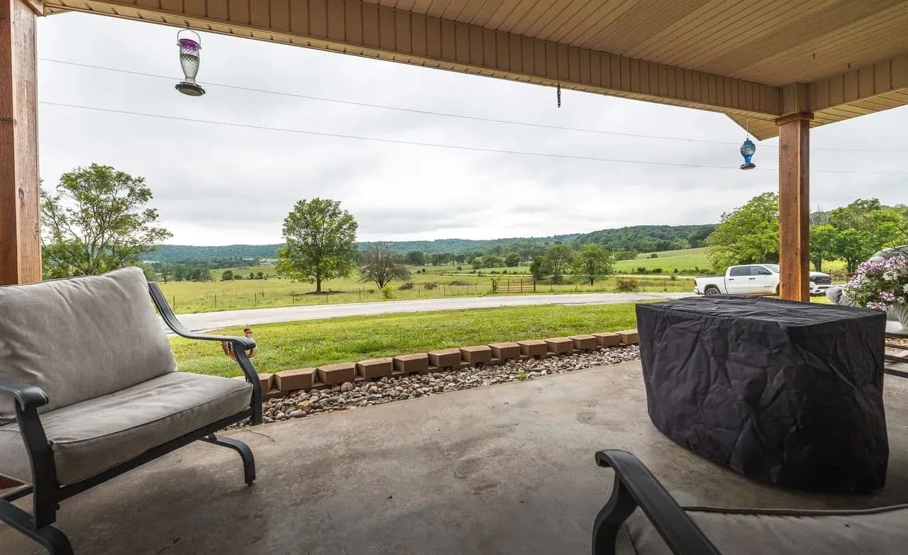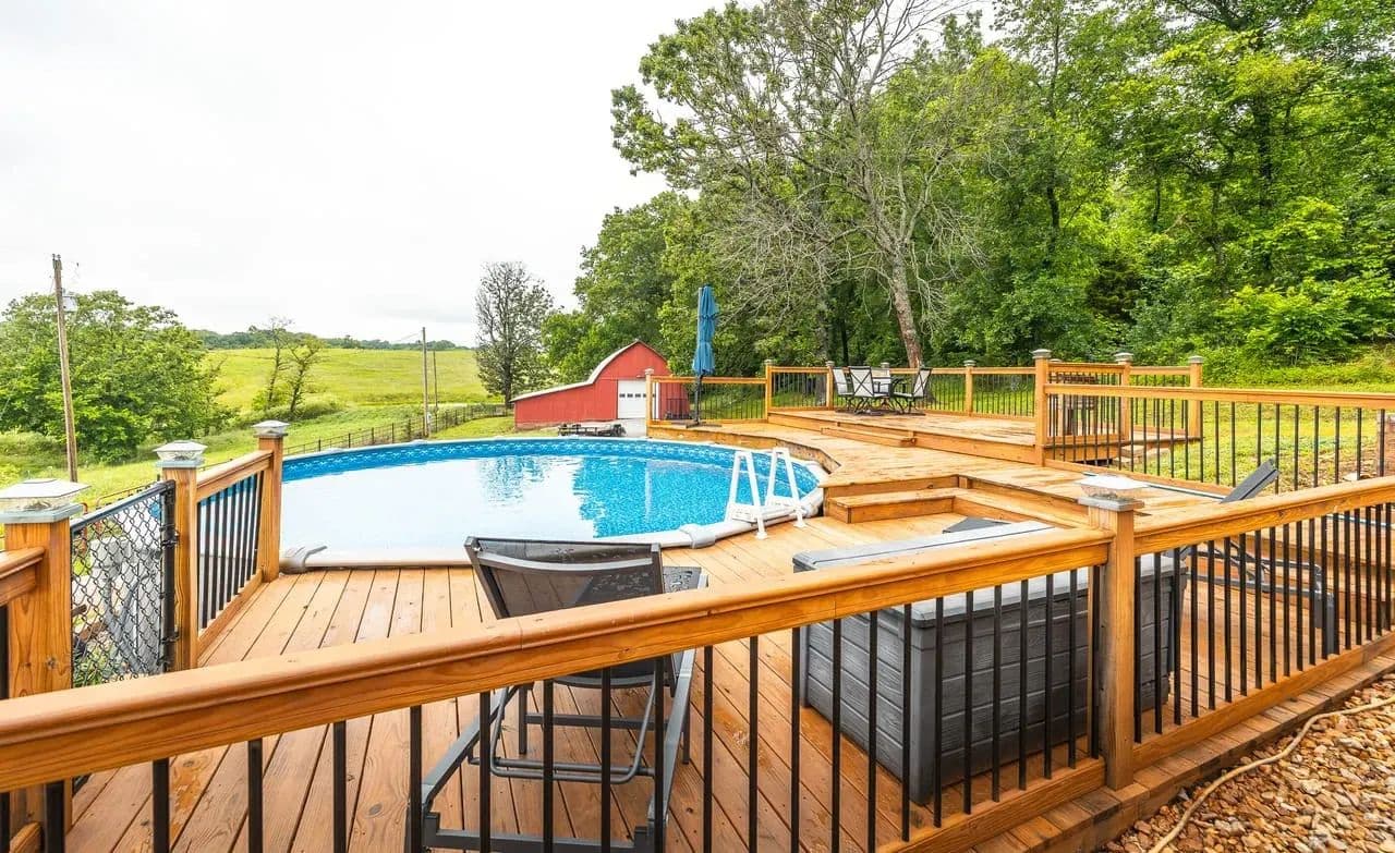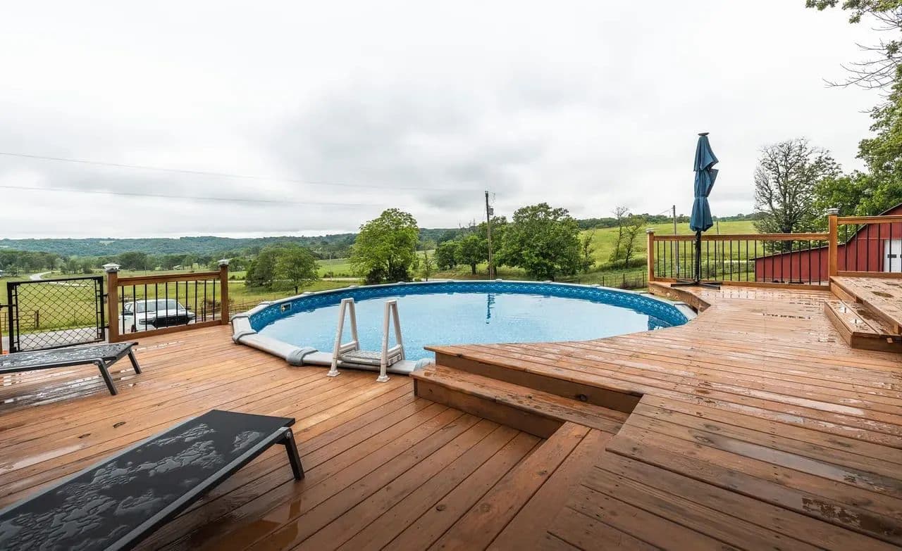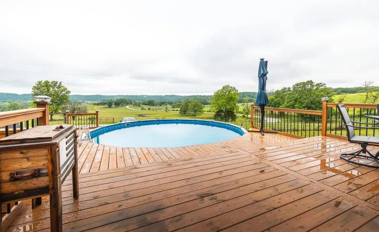 Charming 2BR/2BA Berm-Style Brick Home on 8+ Wooded Acres with Pool and Barn Don't miss this beautifully remodeled 2-bedroom, 2-bath berm-style brick home situated on approximately 8 mostly wooded acres, offering privacy, comfort, and space to entertain. This home features over 2,100 sq ft of living space, including a spacious primary suite with a fully updated bath showcasing dual vanities, large soaking tub and a large walk-in shower. The open-concept layout connects the living, dining, and kitchen areas for easy flow. The kitchen is equipped with modern finishes and automatic under-cabinet lighting, adding both function and ambiance. Enjoy panoramic views from the large covered front patio, or entertain guests on the multi-level deck that surrounds a 24x54 round above-ground pool. The attached 2-car garage adds convenience, while a large barn with lean-to offers ample storage for equipment, tools, or recreational toys. Property Features: 2 Bedrooms / 2 Bathrooms Approx. 2,100+ Sq Ft Remodeled interior with modern updates Primary bath with dual vanities & large walk-in shower Kitchen with automatic under-cabinet lighting Covered front patio with scenic views Multi-level deck surrounding 24x54 pool 2-car attached garage Large barn with lean-to for additional storage Approx. 8 mostly wooded acres Move-in ready and perfect for those seeking space, comfort, and outdoor enjoyment.