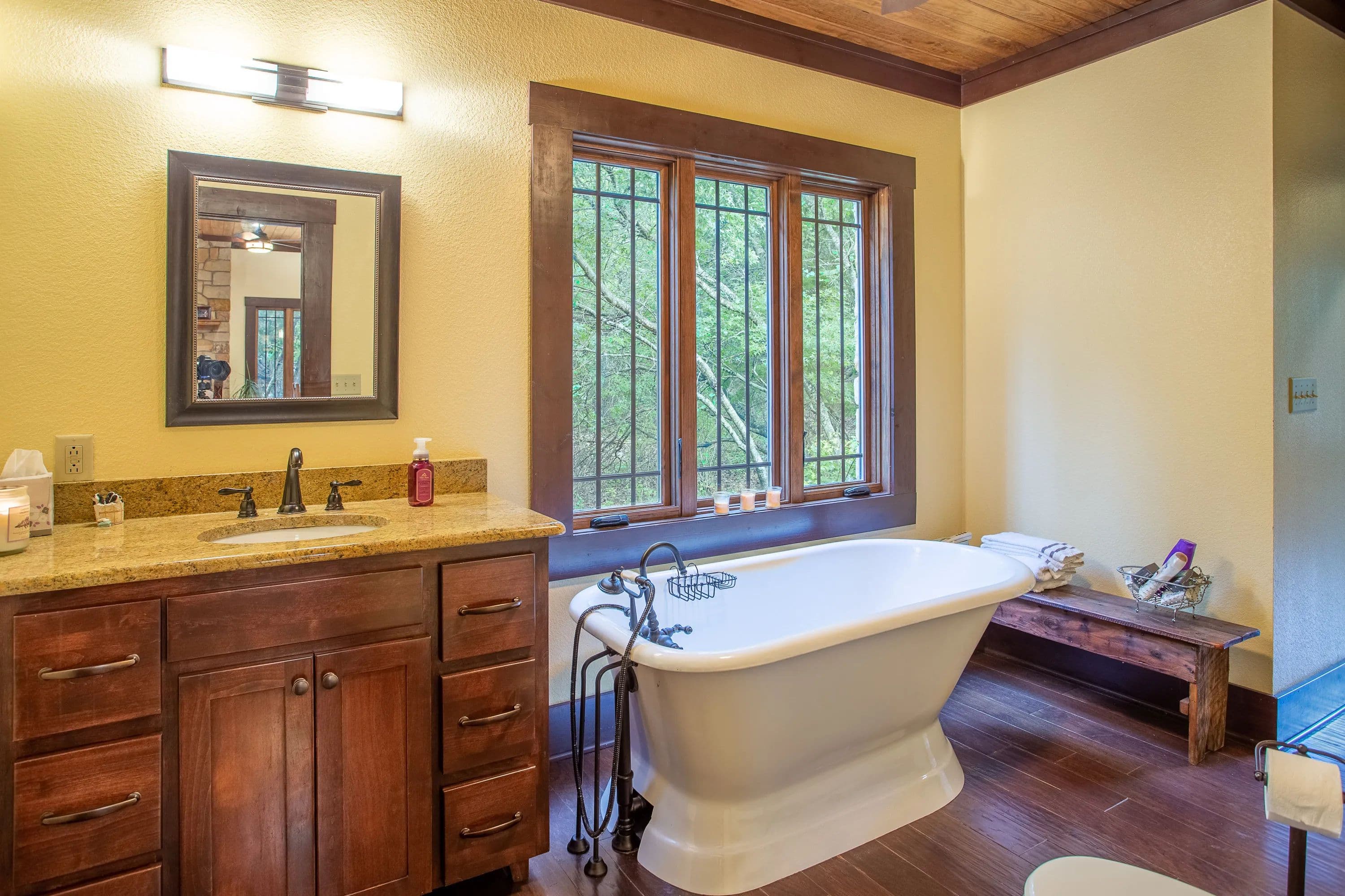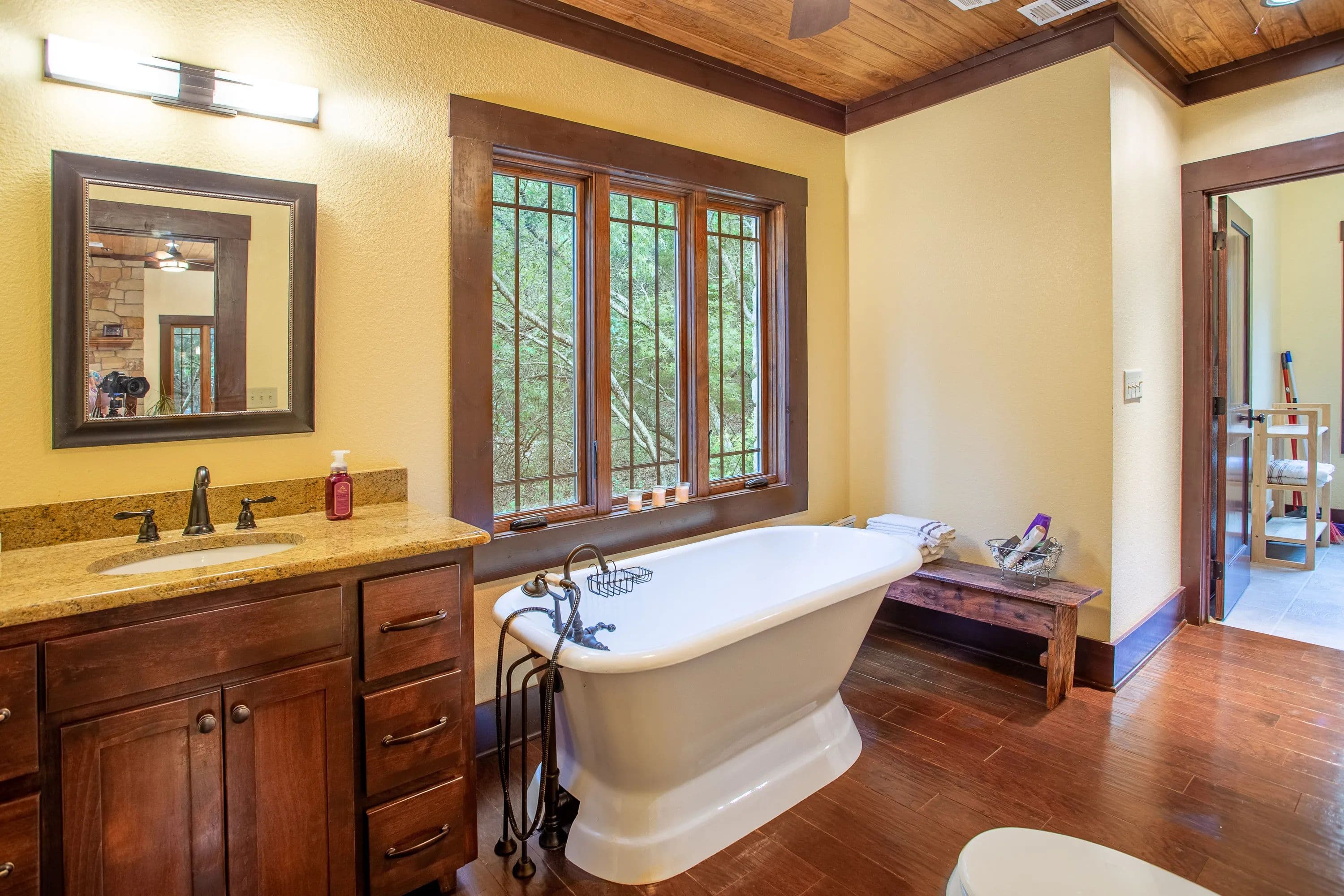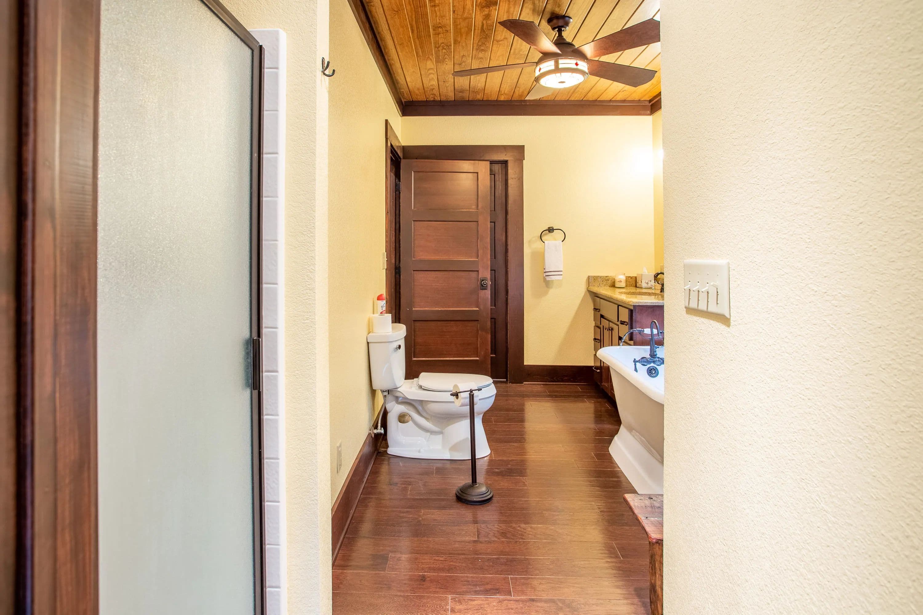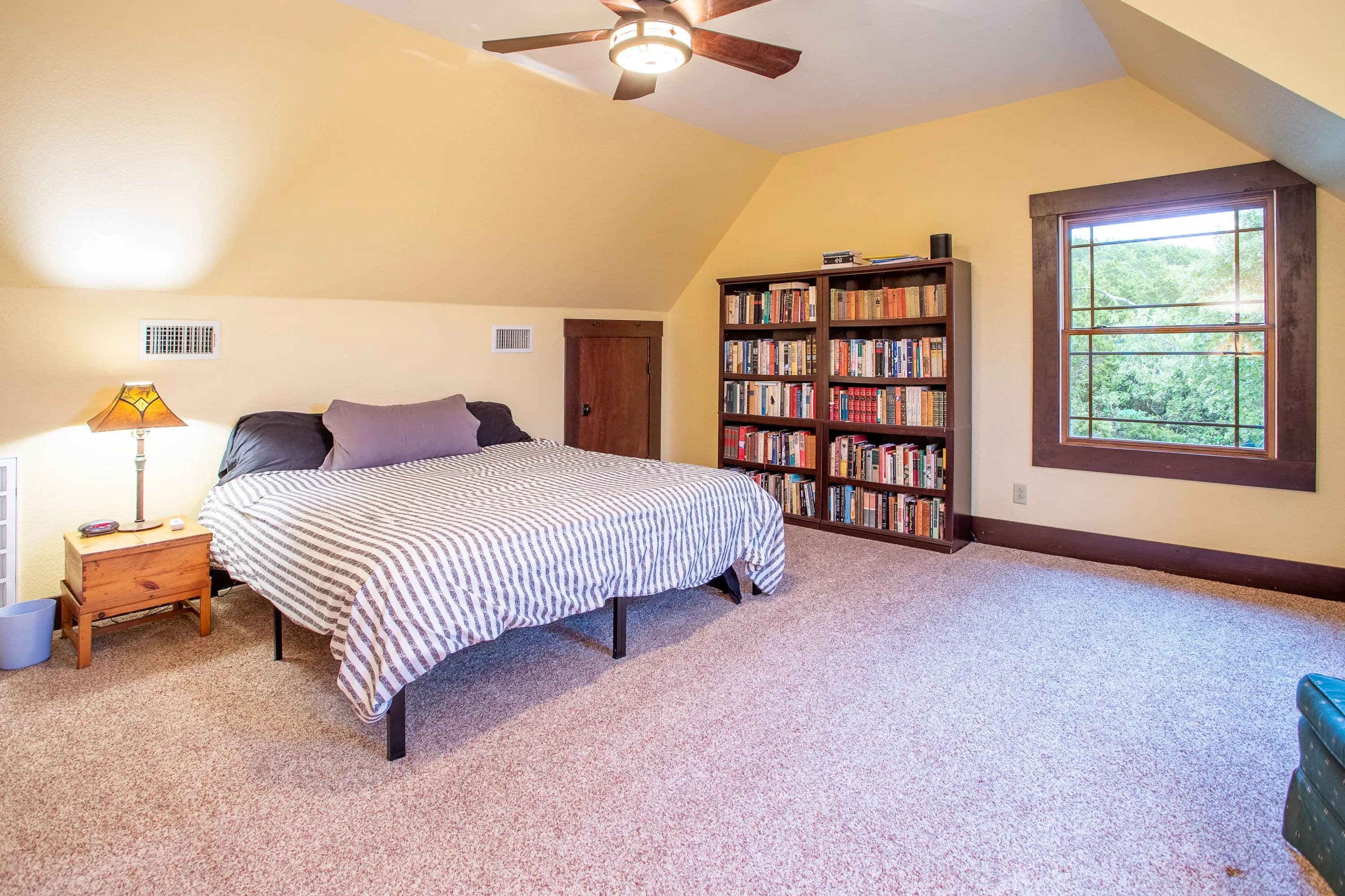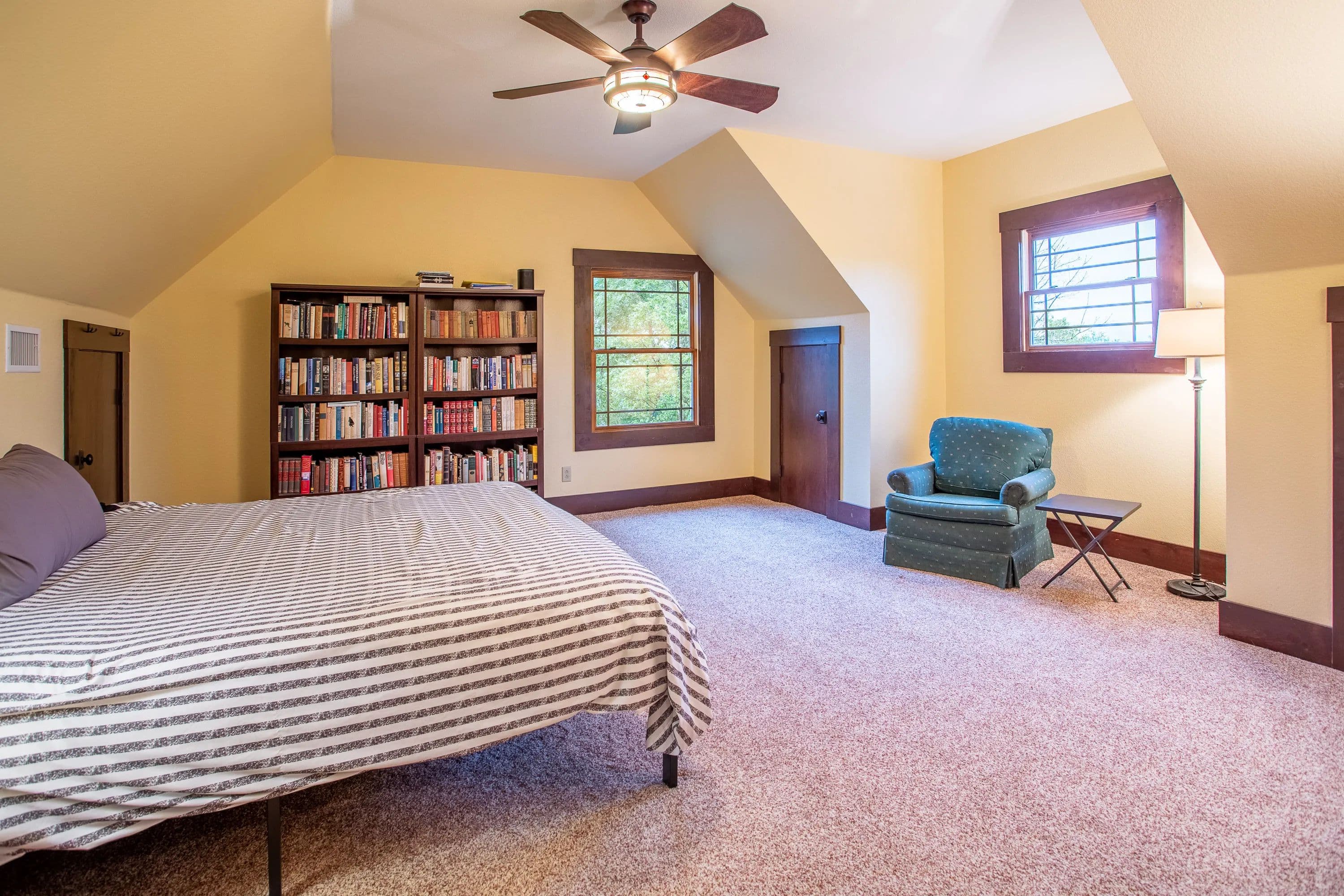 The master suite, along with a full bath and laundry, is conveniently located on the main floor. Upstairs, you'll find a guest bedroom, a second bath, and the loft. Step outside to a covered front porch with ceiling fans--a peaceful retreat for soaking in the scenic surroundings.
