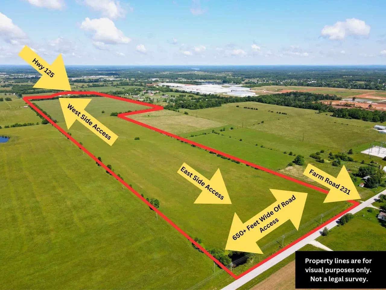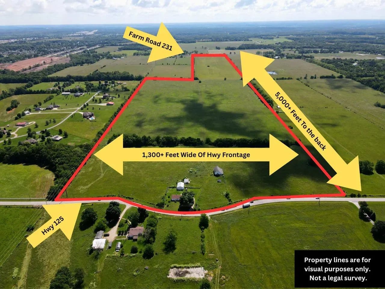 Prime location with unparalleled accessibility, this expansive 120-acre property offers vast opportunities for large-scale developments. With entrances conveniently situated on two different roads, the land is designed to accommodate diverse projects. This property has over 1,300' of Highway 125 frontage enhancing visibility and convenience. Situated close to Interstate 44 ensures easy connectivity to a major interstate. This property stands out as a versatile canvas for visionary developers and offers an exceptional opportunity for developers seeking prime land with outstanding accessibility and versatility.