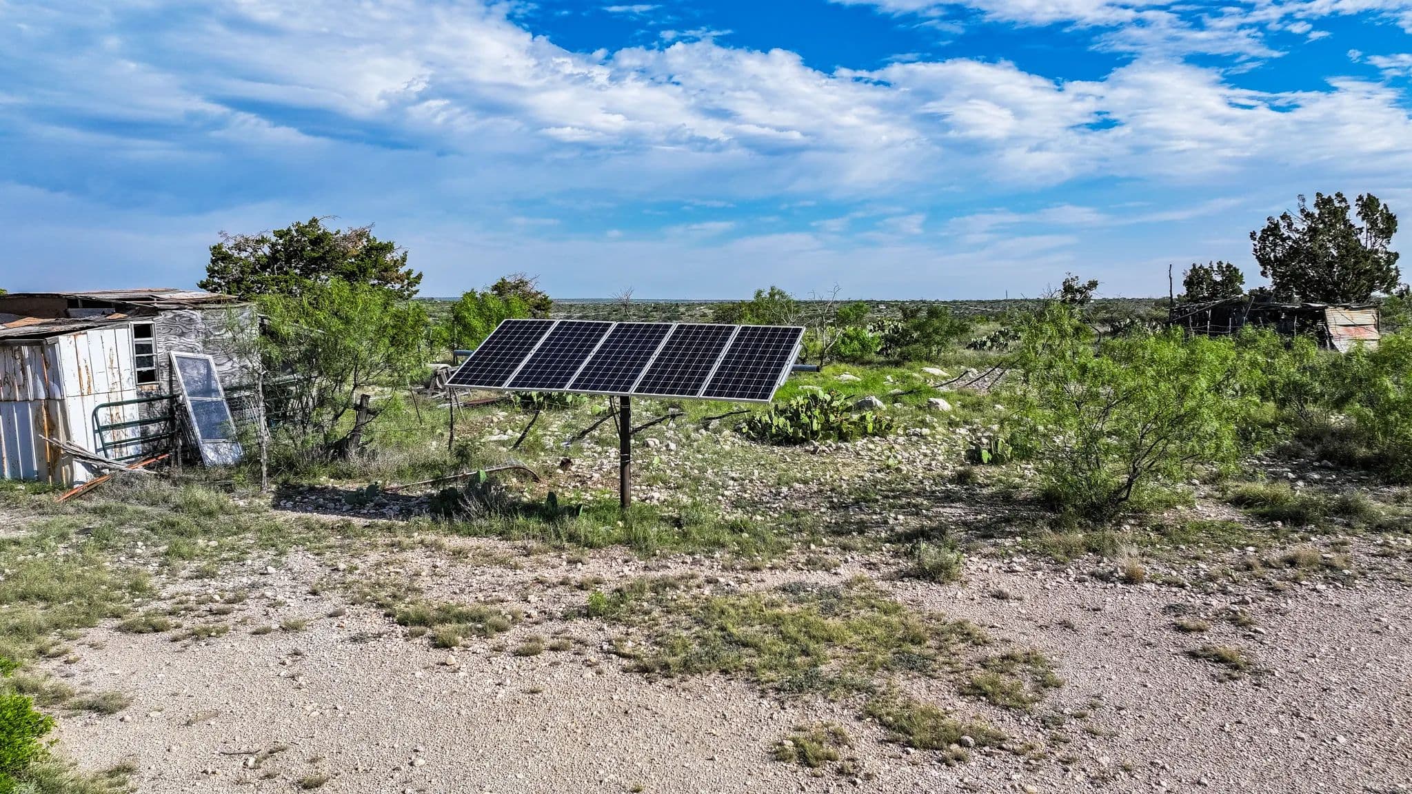 This 100-acre property in Crockett County, Texas offers an off-grid setting with key improvements already in place. A solar-powered water well provides a water source, and a converted shipping container has been set up as a cabin, offering a place to stay. Also on the property is a travel trailer that will convey. The cabin and travel trailer are powered by a generator, making it a functional base camp for weekend getaways or extended stays. The land features typical West Texas terrain with native brush and rolling hills, ideal for recreation or hunting. Game animals known to be in the area include whitetail deer, feral hogs, aoudad, and occasional exotic species such as axis deer and fallow deer, providing excellent hunting opportunities.