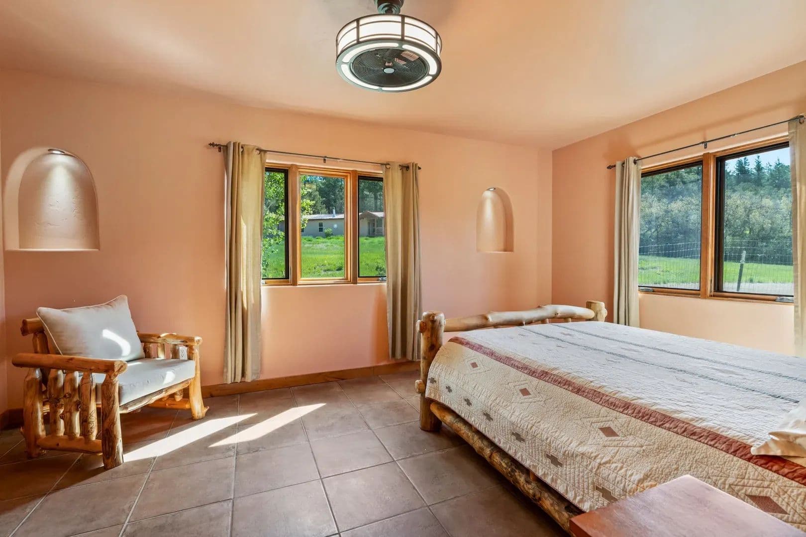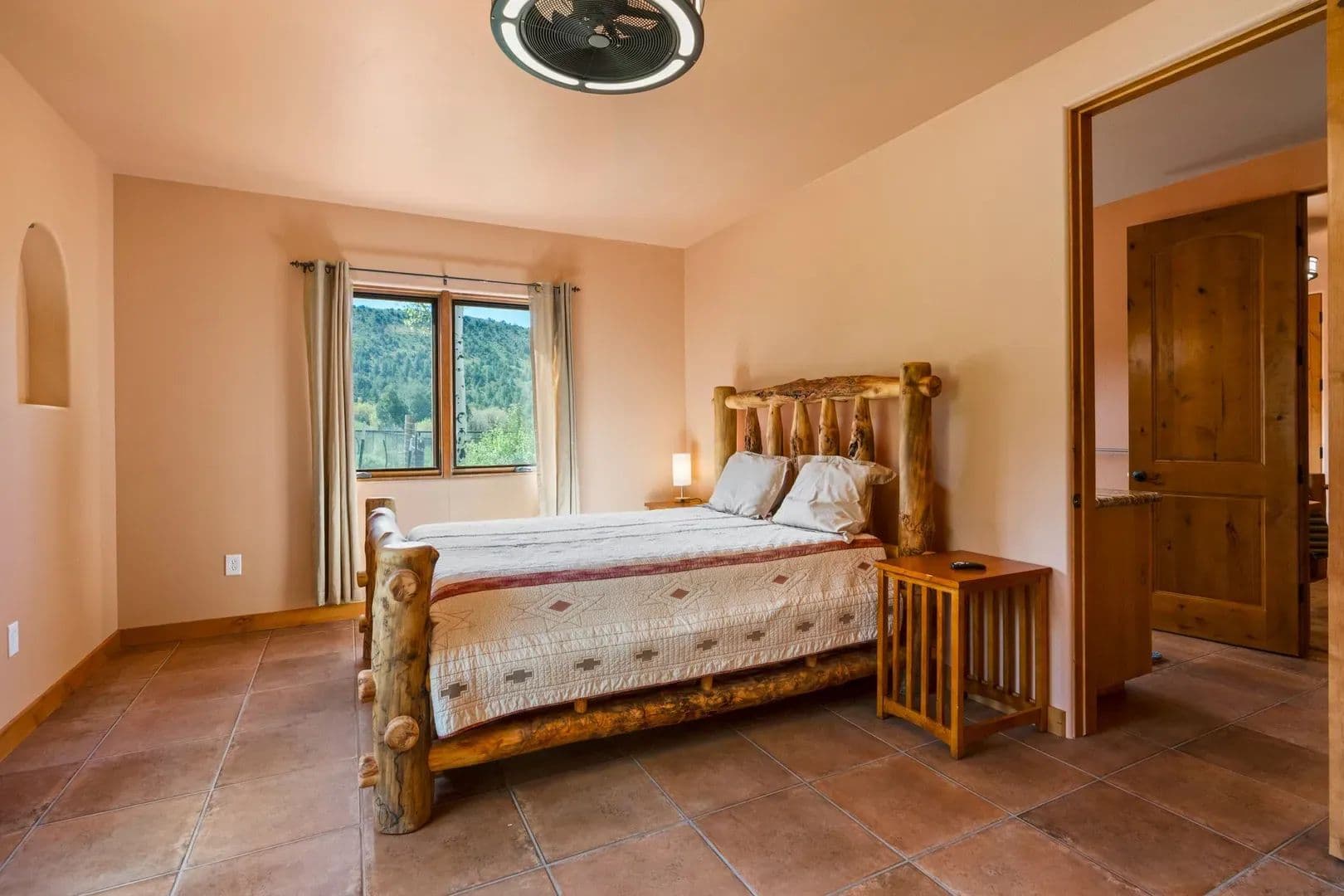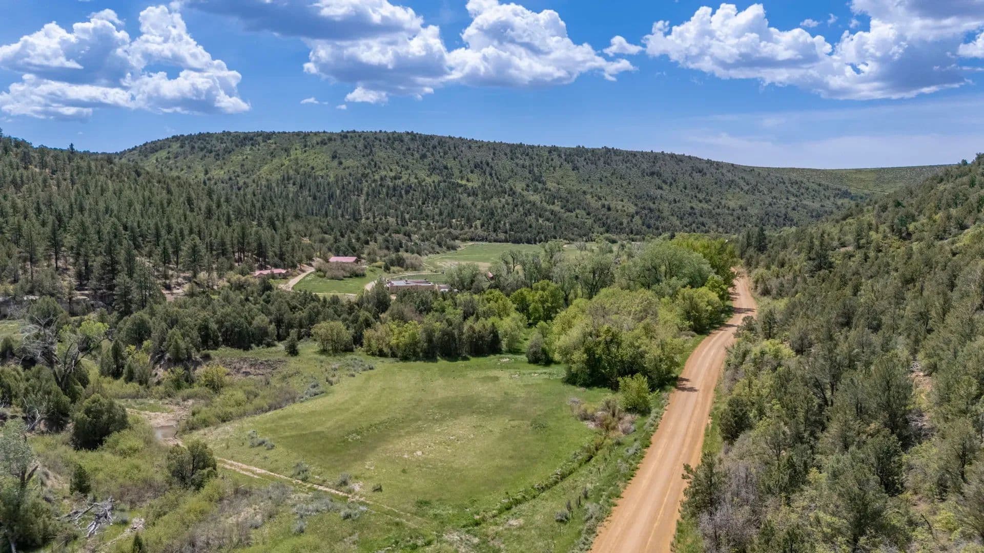 Interest rate buydown being offered! Cherry Creek Valley Farm is truly a special property that you have to visit to fully appreciate the peace and serenity that it offers. The 43 ac parcel has a 2,808 SF SW style main home with 3BR, 3 BA and a 2-car garage, plus a cute well maintained 2BR, 2 BA guest home with 1 car garage. The ranch has a horse barn with stalls and artist studio workshop, 2 paddocks and a horse barn with equipment storage. Land The property is 43 acres and consists of river valley bottom with a mix of lush grassy meadows surrounded by tall cottonwood trees and extends up on Pinon, Cedar and Gambel Oak covered ridges on each side of the valley. The property borders 201 acres of BLM land, expanding opportunities for hiking and horse riding. There is a total of approximately 4 acres of irrigable land that is primarily watered with a pump and irrigation sprinkler pods.