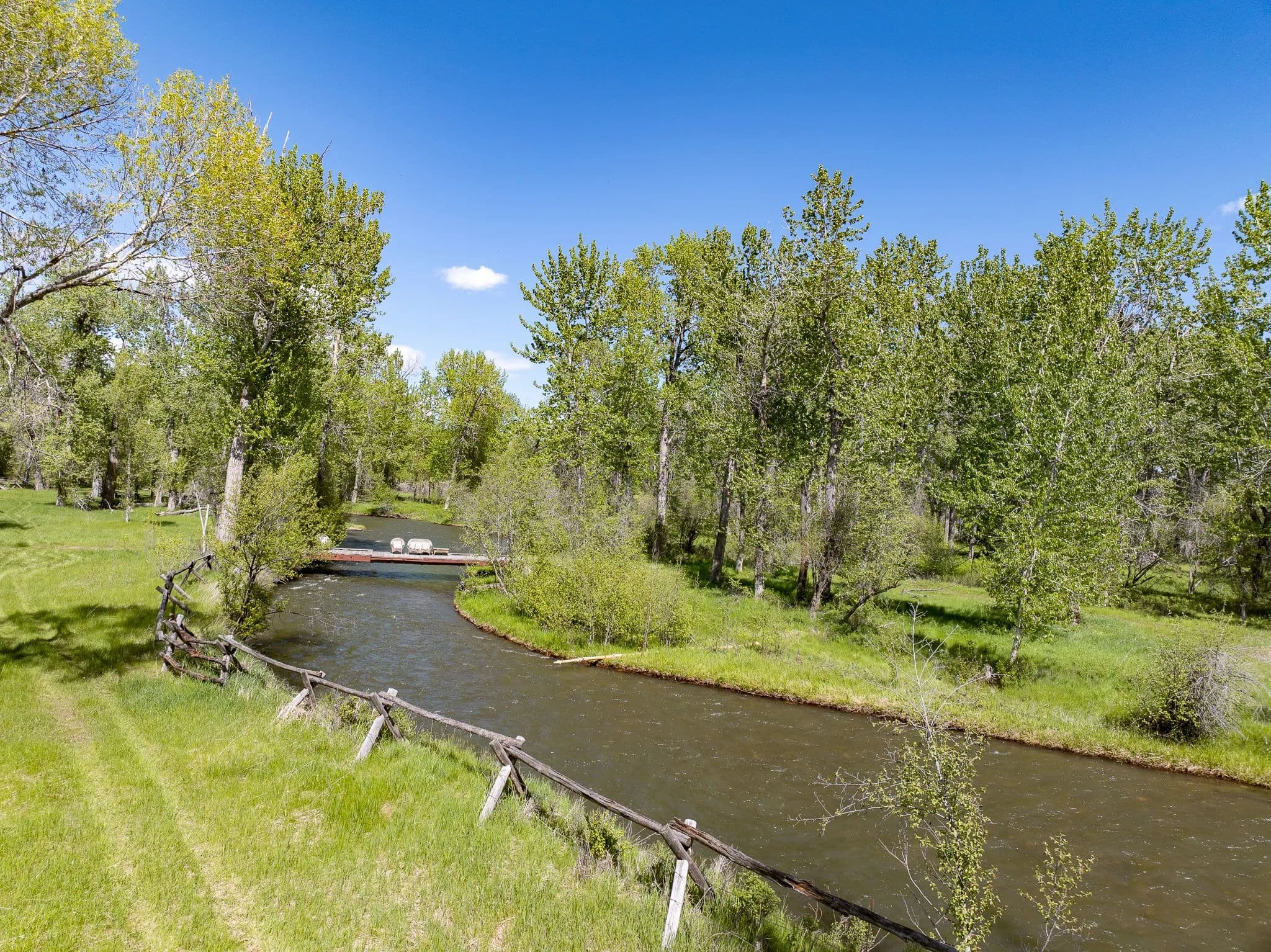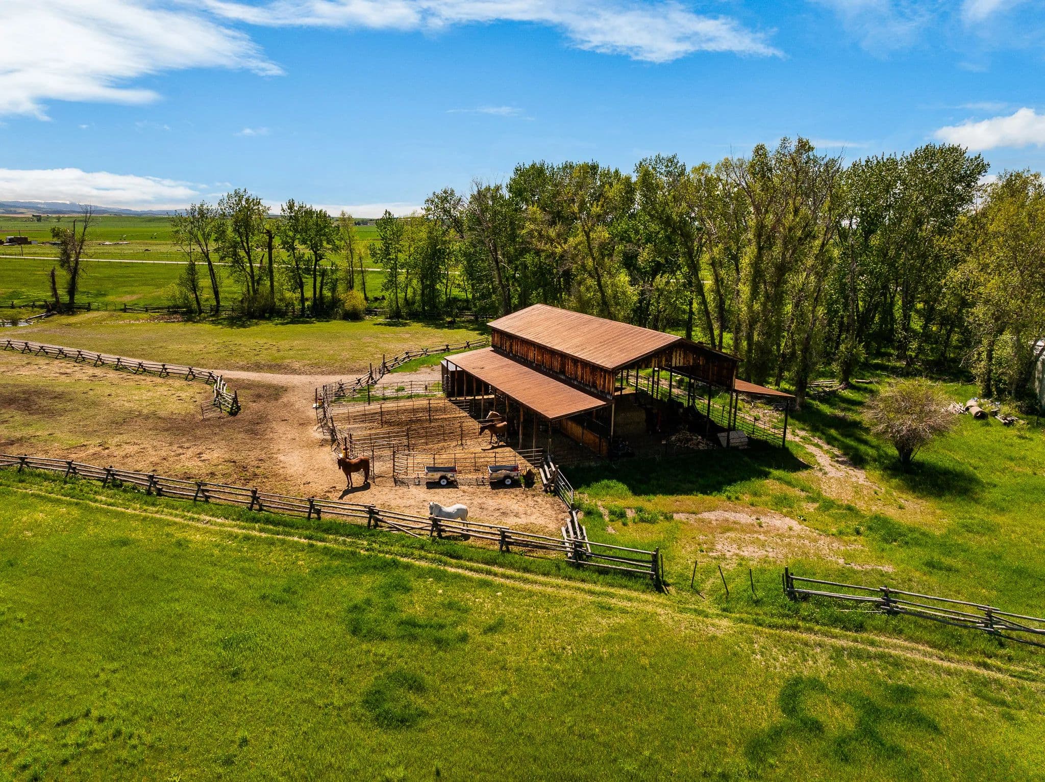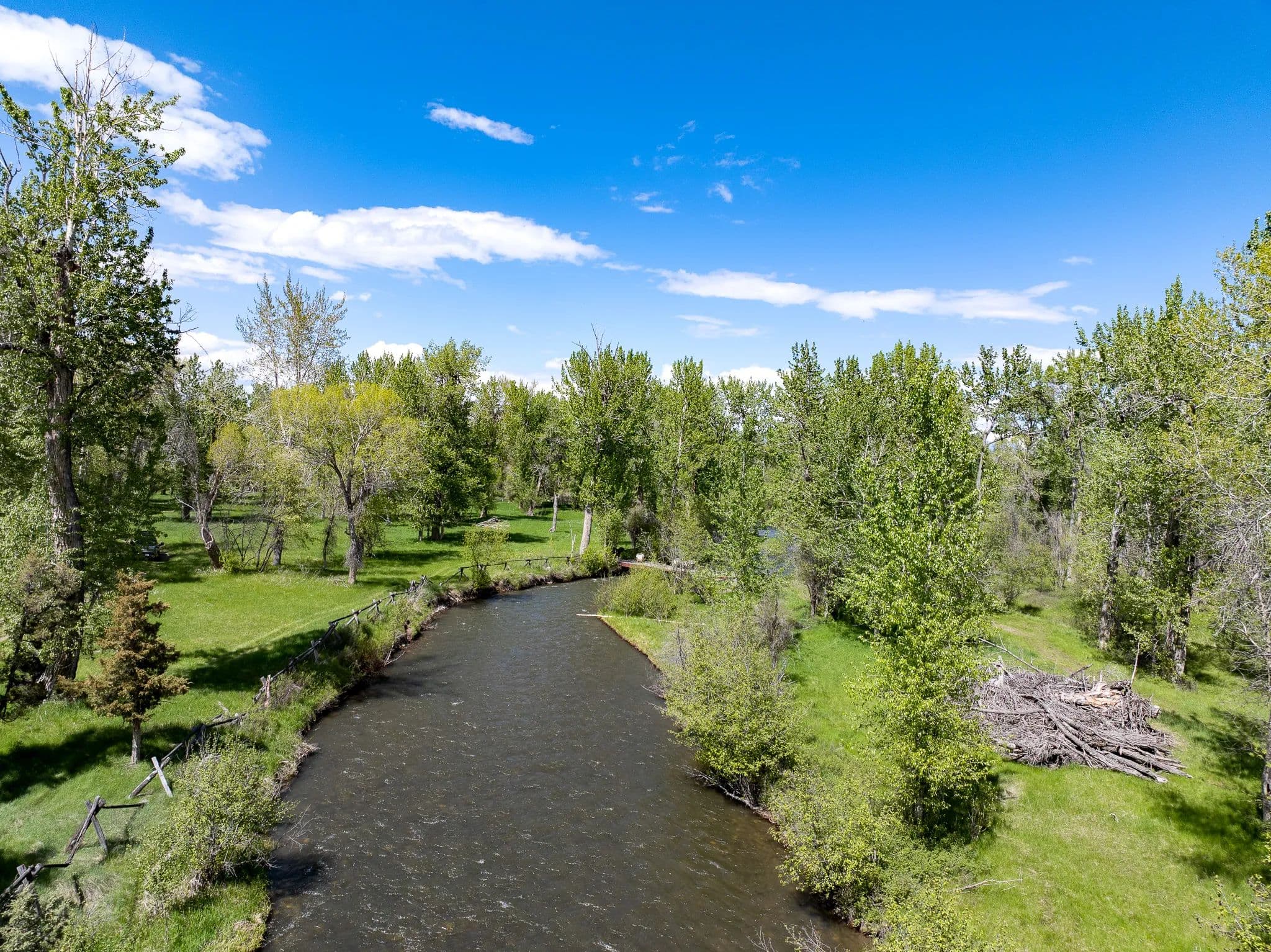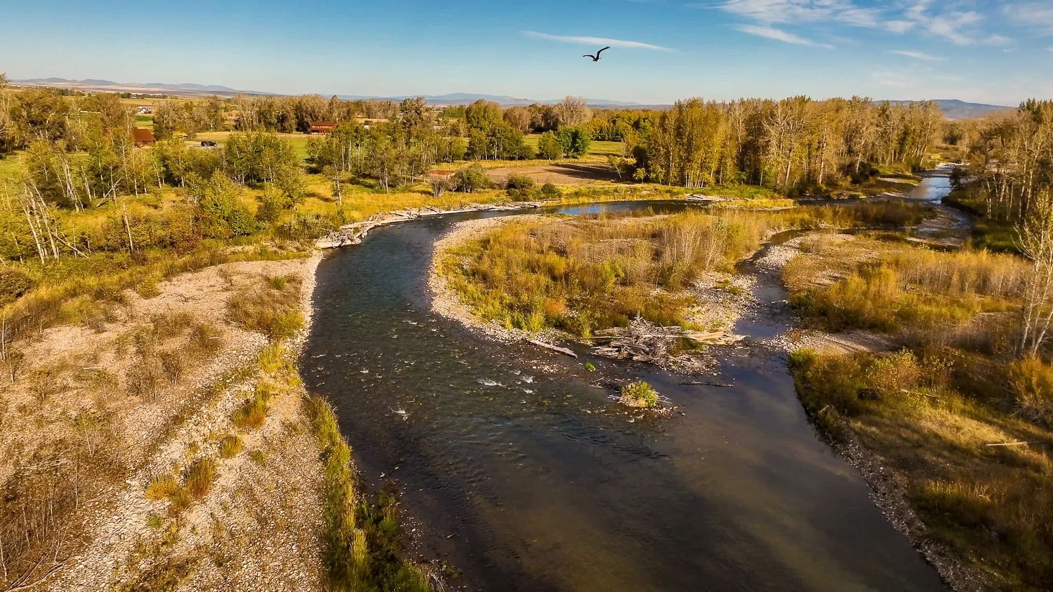 Step outside to the Gallatin River’s live waters, where world-class trout fishing awaits right at your doorstep. The property’s irrigated hay fields, mature trees, and serene riverfront foster a haven for wildlife, equestrian pursuits, and boundless recreation.