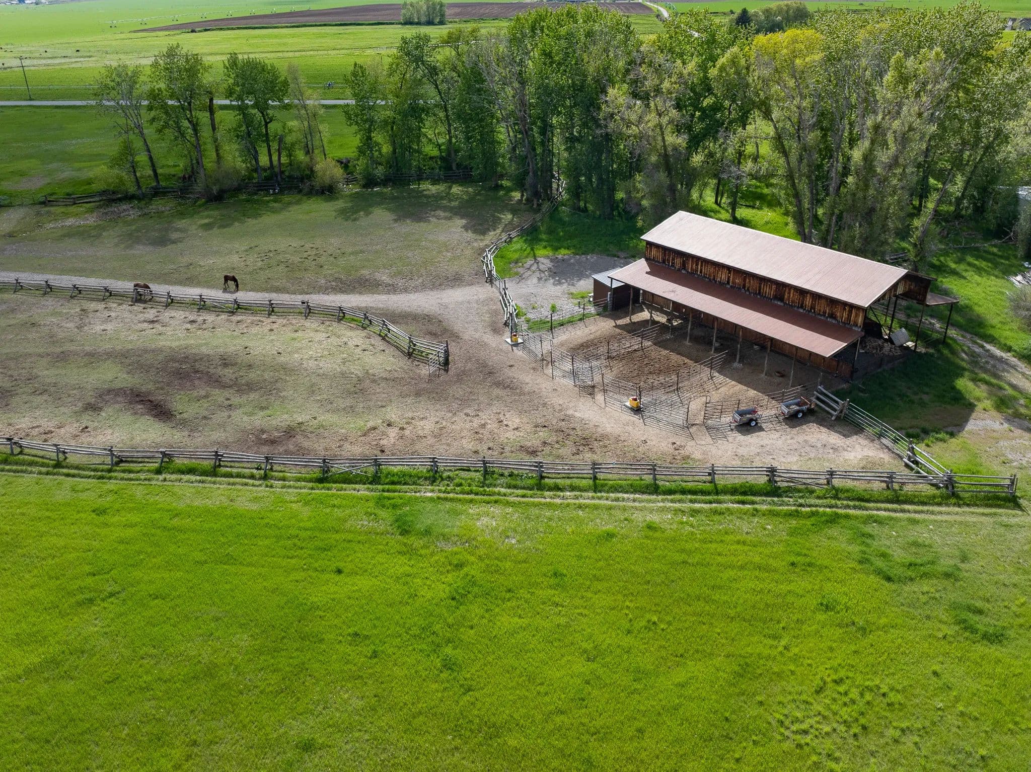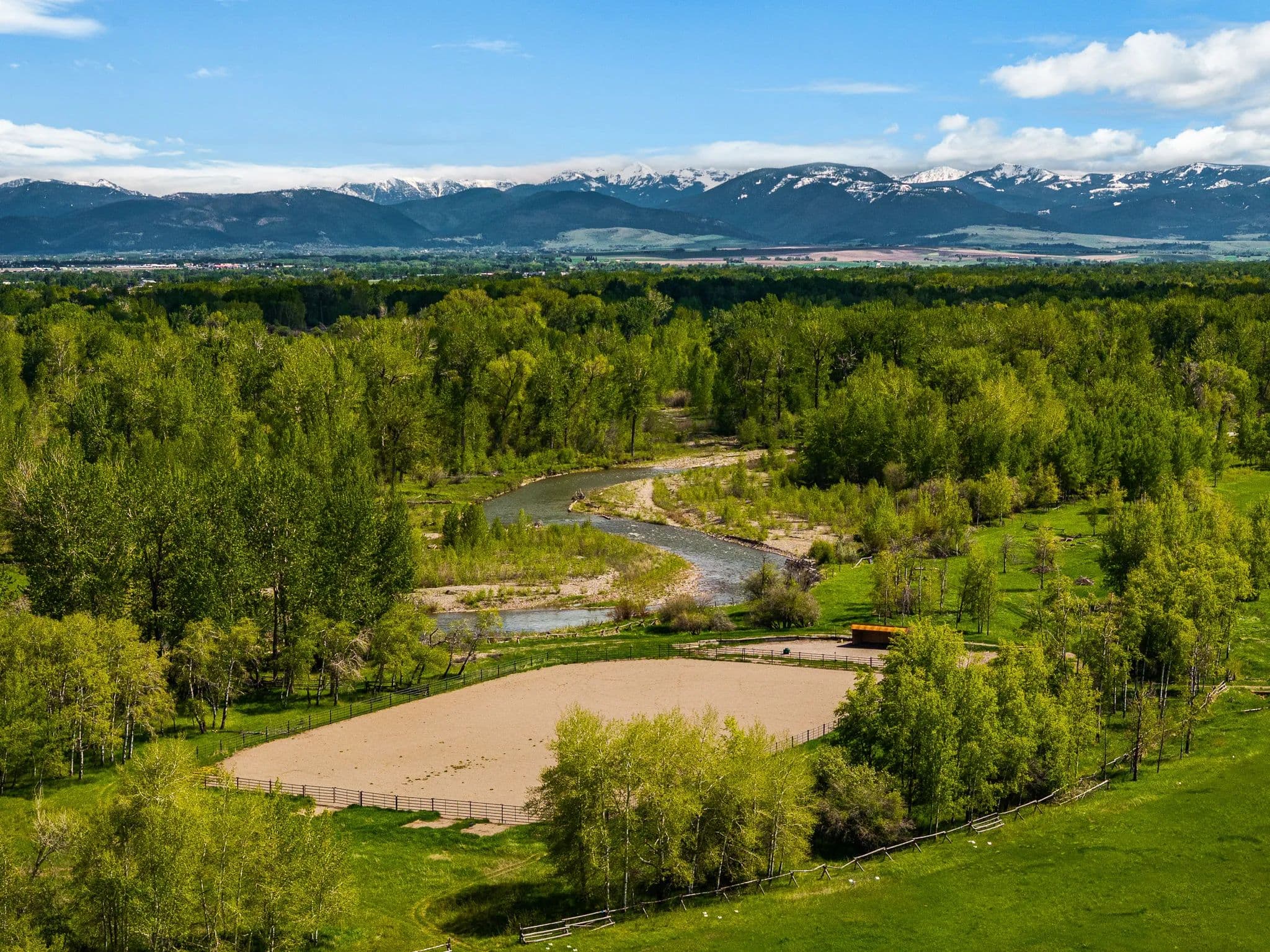 Thoughtful improvements in addition to the home include an insulated shop, a pole barn for hay and equipment, a tack room, a shed, and an outdoor riding arena framed by the river’s gentle flow. This rare estate balances productive agriculture, refined living, and outdoor adventure, all within easy reach of Bozeman’s cultural and culinary delights. River Road Ranch is more than a home—it’s a legacy, offering a life of timeless beauty and limitless possibility.