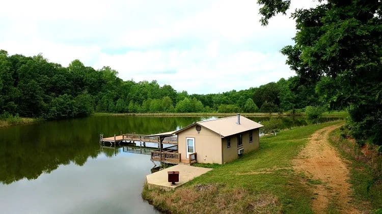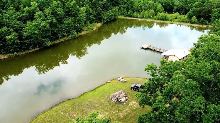 3 homes: 4 bedroom, 2 bath main house,1 bedroom 1 bath guest home, a lakefront cabin with kitchen and bath. 5-acre private lake stocked with ample fish, a large dock that goes out into lake for a relaxing spot. 75 acres of mixed terrain with trails & abundant wildlife and bordered by national forest for endless exploration. Live, play, and relax in complete peace—schedule your private tour today!