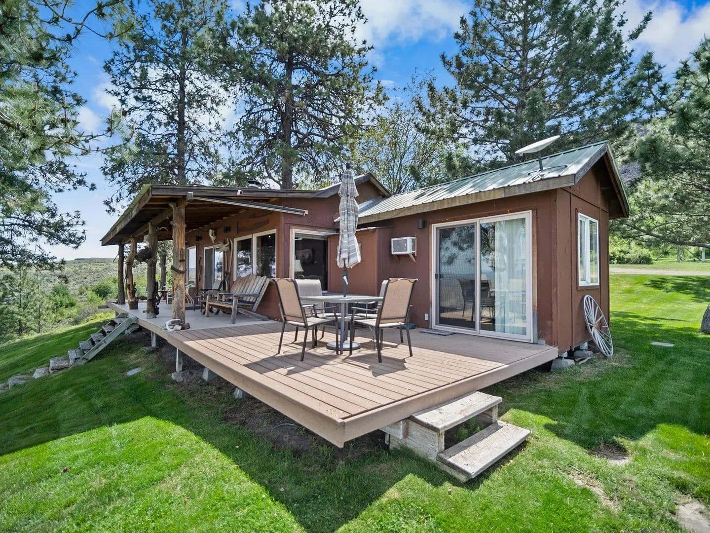 Tucked behind a gated entrance, the property features four well-appointed cabins on two separate sites, “Whiskey Ridge” and “Rilette Springs,” with a combined four bedrooms, four bathrooms, two kitchens, and fully independent utilities, including two wells, two septic systems, and dual power hookups—perfect for family retreats, outfitting, or shared ownership. Each cabin area is equipped with inground sprinklers for low maintenance and a beautiful green lawn. The Rilette Springs cabin has a Mammotion robotic lawnmower to ensure the lawn gets mowed even when you are not on site.