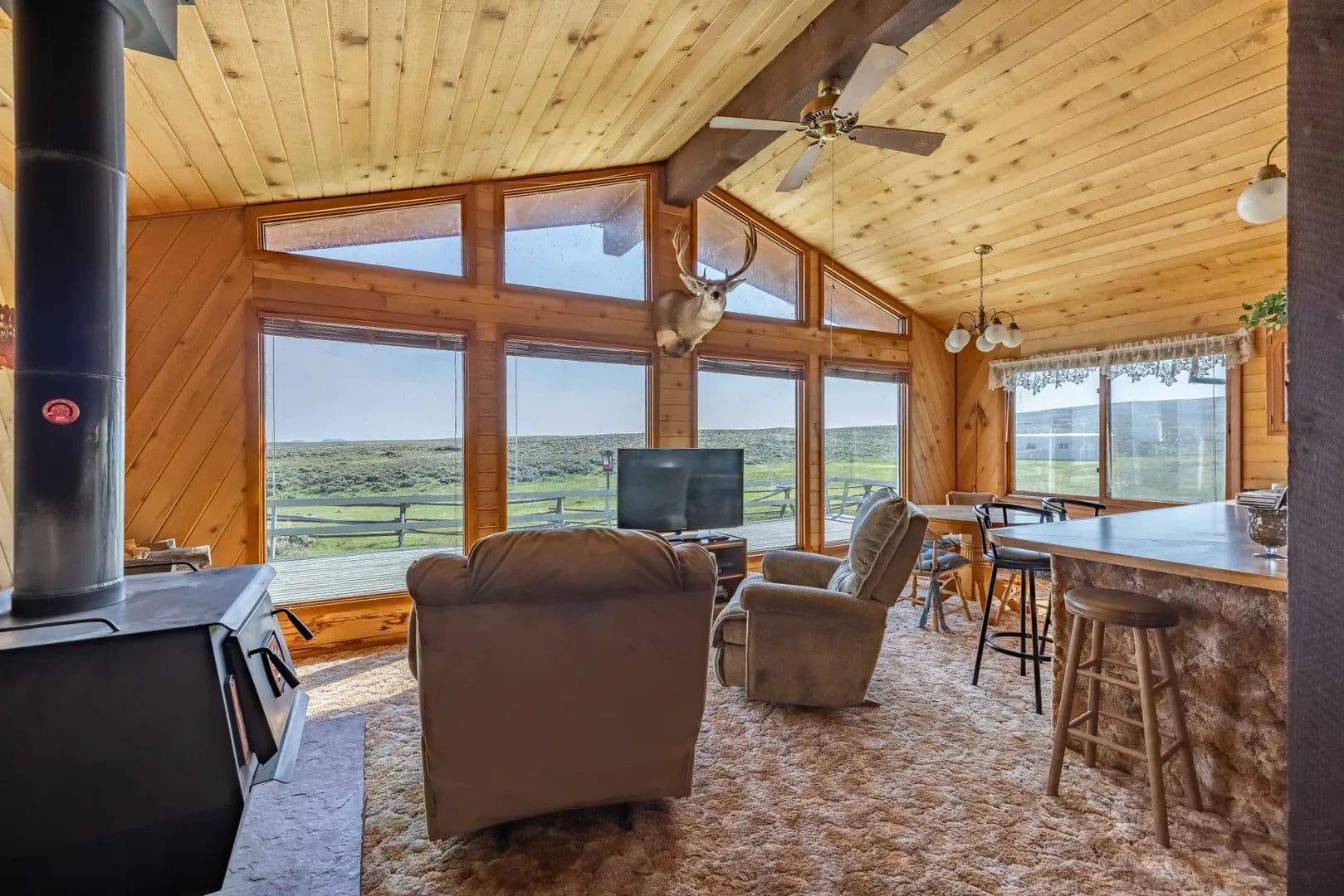 Escape to wide-open Wyoming with this 2 bed, 1 bath off-grid cabin on 40 acres. Features include solar power, wood stove, propane heat, private well, and a spacious wrap-around deck with sweeping views of the Oregon Buttes. A 30x40 shop, perimeter fencing, and direct access to thousands of acres of BLM land make this a dream for hunters, outdoor lovers, and anyone craving true freedom. No covenants—just peace, privacy, and endless adventure.