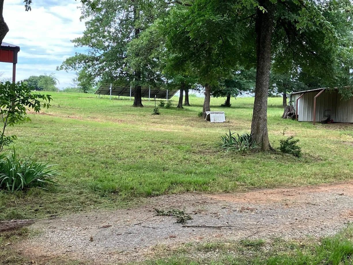 Unlock the potential of this 3-bedroom, 2-bathroom home on a 11.26-acre in the country. This property offers a foundation for creating your own homestead, requiring some TLC to truly shine. Imagine relaxing on the covered front porch, perhaps modified and restained, soaking in the peaceful surroundings and observing the abundant wildlife. For the equestrian enthusiast, a 36x40 horse barn is the gem of this property, with these included features; horse stalls with concrete aisle way, Heavy-duty mats, Sliding "jailhouse" windows on east side of the stalls, Frost-free water faucets for year-round convenience, RAM Prefiert stall fronts with custom dividers and a durable double oak wall, Dairy ceiling fans for optimal airflow, Energy-efficient LED lighting throughout. Erosion grid placed on the north side barn. A tack room/feed room w/ walk-through doors and rotating wall for effortless saddling/unsaddling. Spray foam insulation and skylight panels above each stall. An additional 24x24 barn perfect for show animals, a 24x36 metal insulated shop with plumbing and septic system, and a 12x20 storage building. Inside the home, you'll find an open-concept living room and kitchen, perfect for gathering and entertaining. A cozy wood-burning stove adds warmth and ambiance on cooler evenings. With 3 bedrooms and 2 bathrooms, there's ample space for family and guests. Embrace sustainable living with the included solar panels from Enphase Solar Power of Oklahoma, offering the potential to live off the grid and enjoy energy independence. This presents a rare opportunity to acquire a home and acreage with well-established equestrian facilities and a home ready for revitalization. If you envision a peaceful country life and are prepared to roll up your sleeves to bring out its full potential, this property could be your perfect project. Embrace the chance to craft your dream homestead in this exceptional setting.