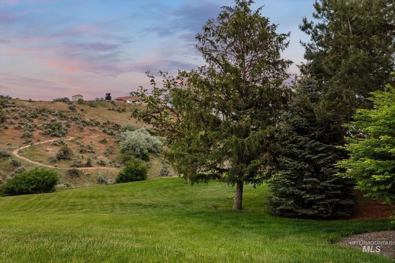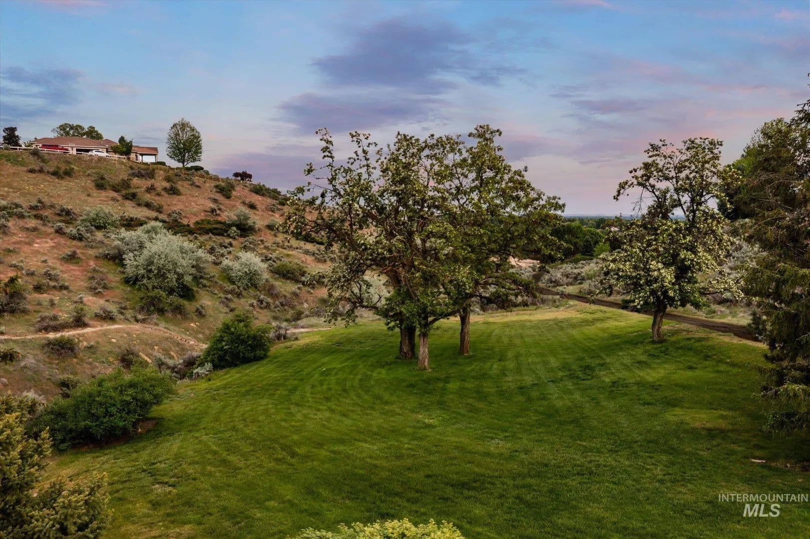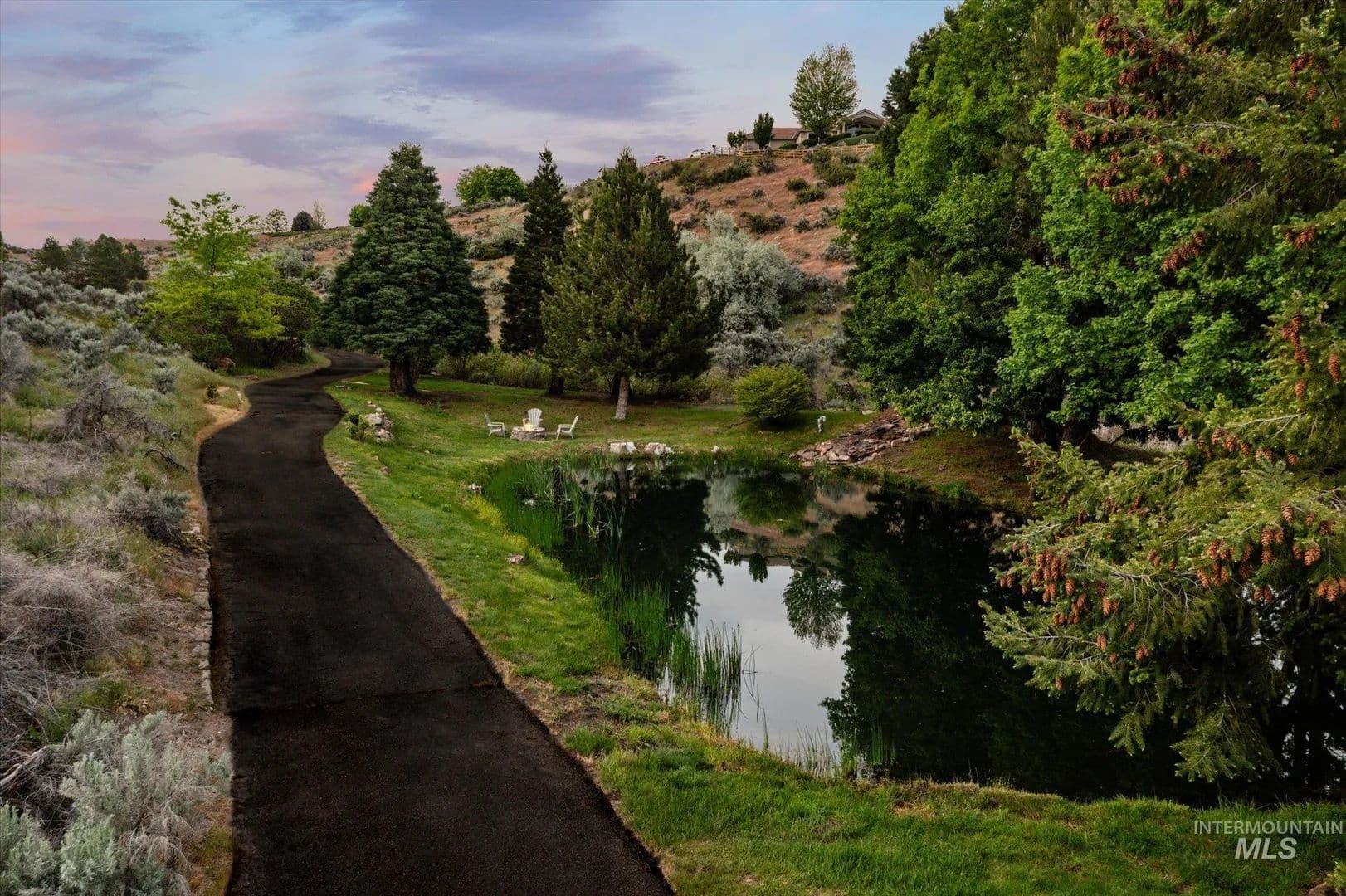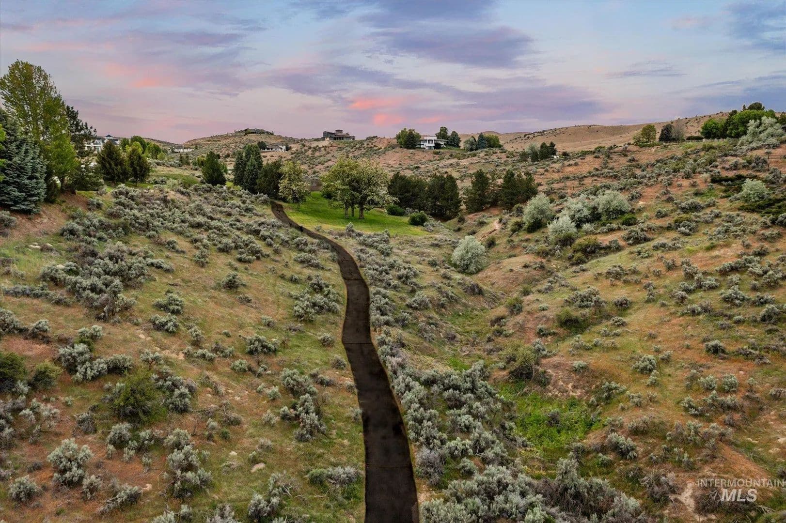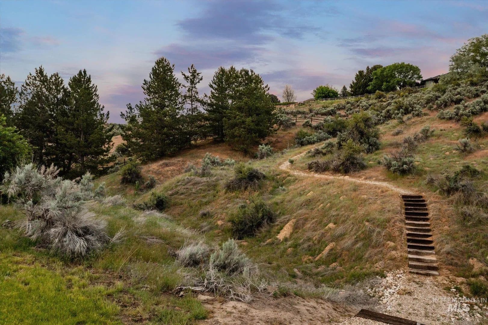 Incredible opportunity to own the last estate lot in Triple Ridge Estates overlooking Eagle and the beautiful Treasure Valley! Surrounded by other multi-million dollar estate properties, this 5.44 acre lot has a hillside building permit in place and just needs your vision to create a masterpiece! The property features a gated entry, beautifully manicured front lawn with mature landscaping and a "park" at the south end of the property with a private pond and water feature. Natural gas, power and internet is all available at the lot line. Pressurized irrigation is installed and irrigation water is included as part of the $1k/yr HOA dues. Triple Ridge is plowed and maintained by Ada County. Enjoy all that a view lot has to offer including magical sunsets, watching the valley change colors throughout the seasons and so much more. You'll experience excitement each time you return home to this beautiful setting! If walking the lot, you MUST climb the path to the building site to appreciate how special the lot is!