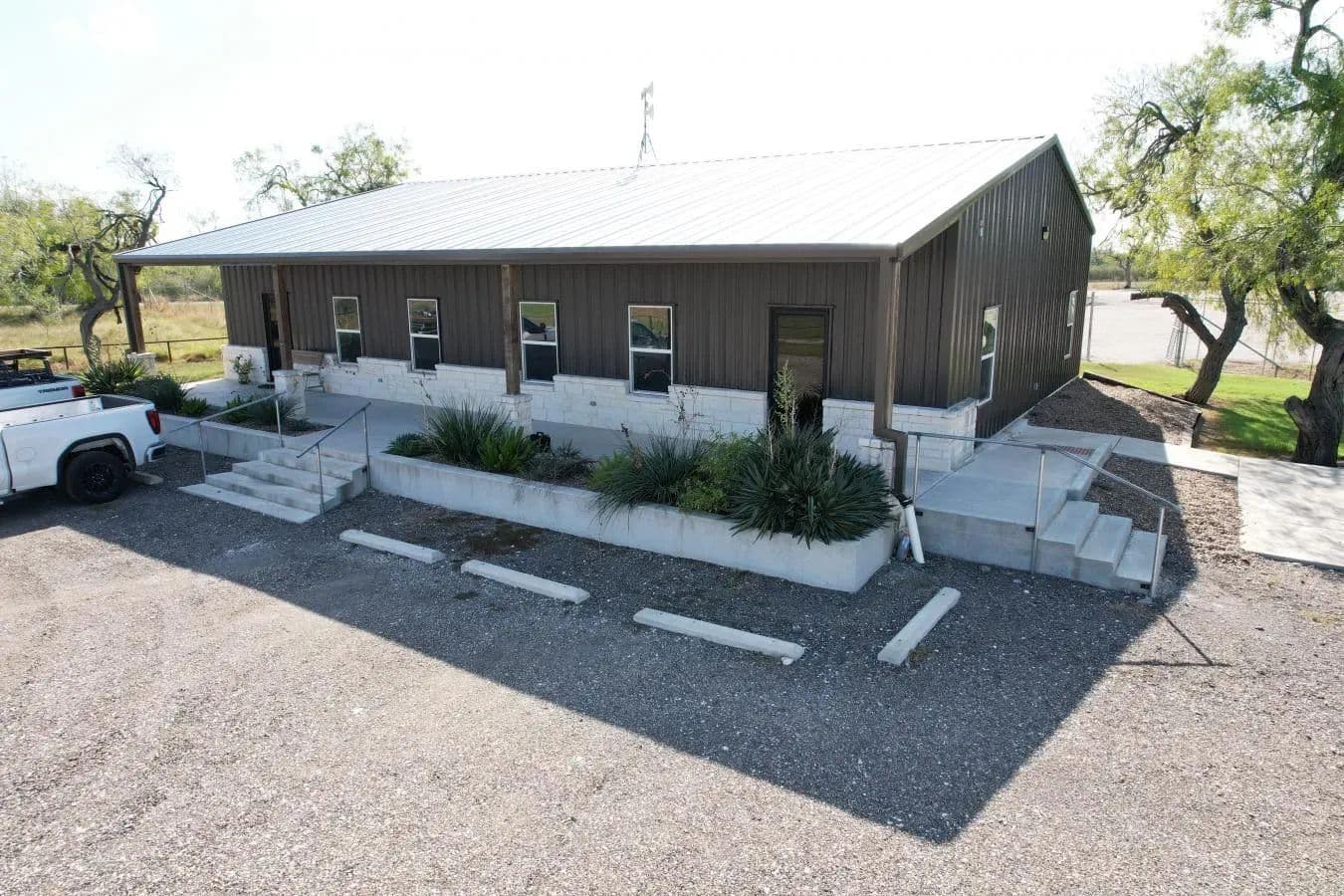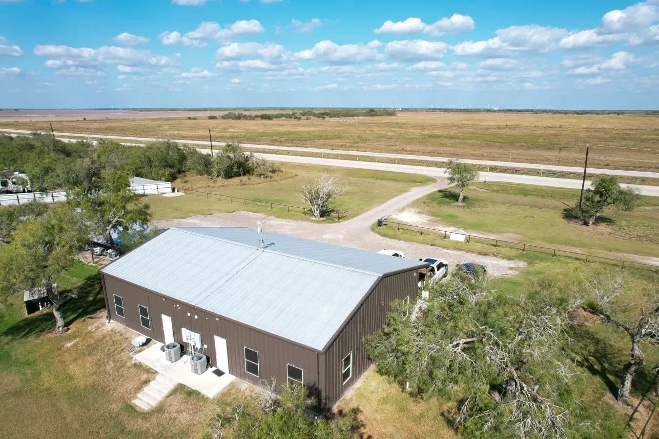 Discover the perfect commercial property strategically located on a major highway with high traffic counts near Sinton, Texas. This versatile 2,400 sq ft office building is divided into two mirror-image suites, each featuring 3 spacious rooms, male and female restrooms, breakroom areas, individual meters, and separate A/C units-ideal for multiple tenants or business operations. Situated on over 5 acres, this property also boasts a massive shop/warehouse with an expansive awning, perfect for industrial, storage, or logistics use. The high-fenced yard offers abundant parking and security, accommodating various business needs. Located near rapidly growing industries, this property combines unbeatable location, space, and functionality to elevate your business. Act now-opportunities like this in such a booming area are rare!