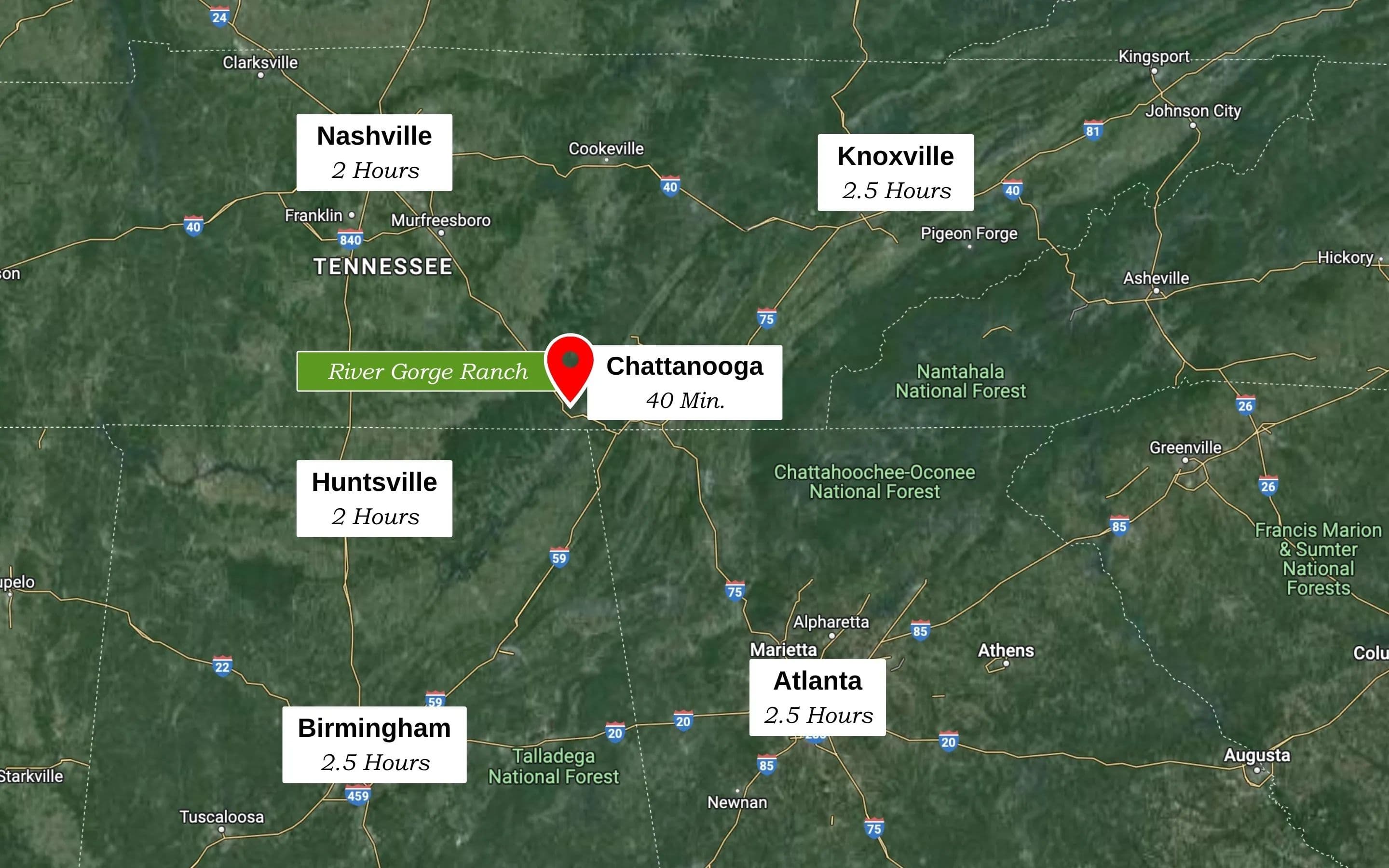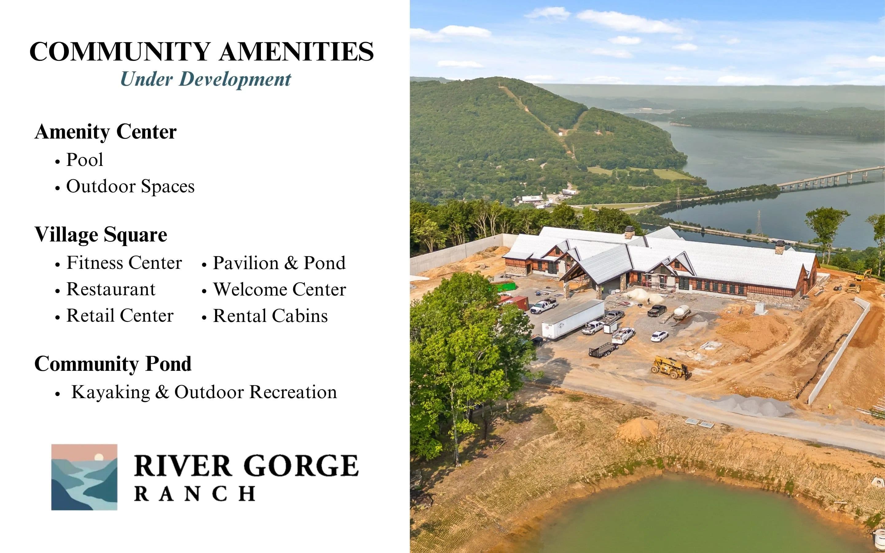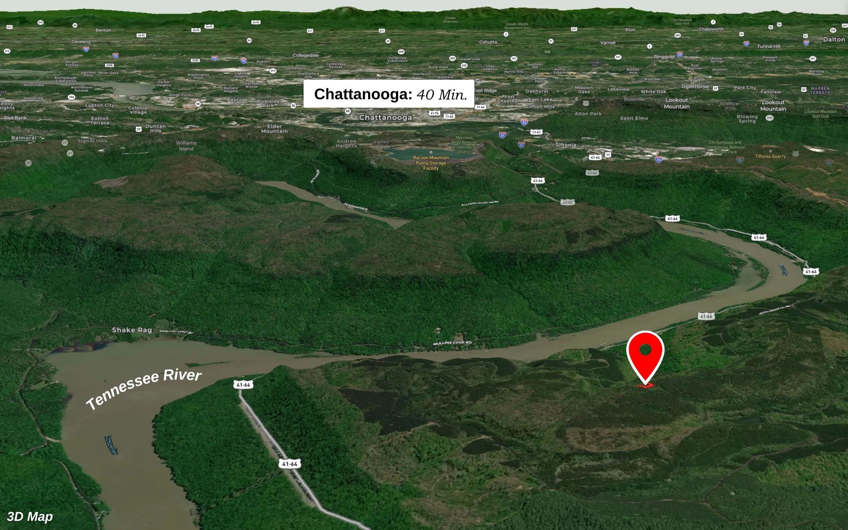 Future community AMENITIES include a 27-Acre Village Square with dining, retail, a fitness center, luxury pavilion, rental cabins, pool, pond, and outdoor recreation spaces. Located just 30 minutes from Jasper, Kimball, and South Pittsburg, and only 25 minutes to Downtown Chattanooga, you'll find the perfect balance of tranquility and accessibility.